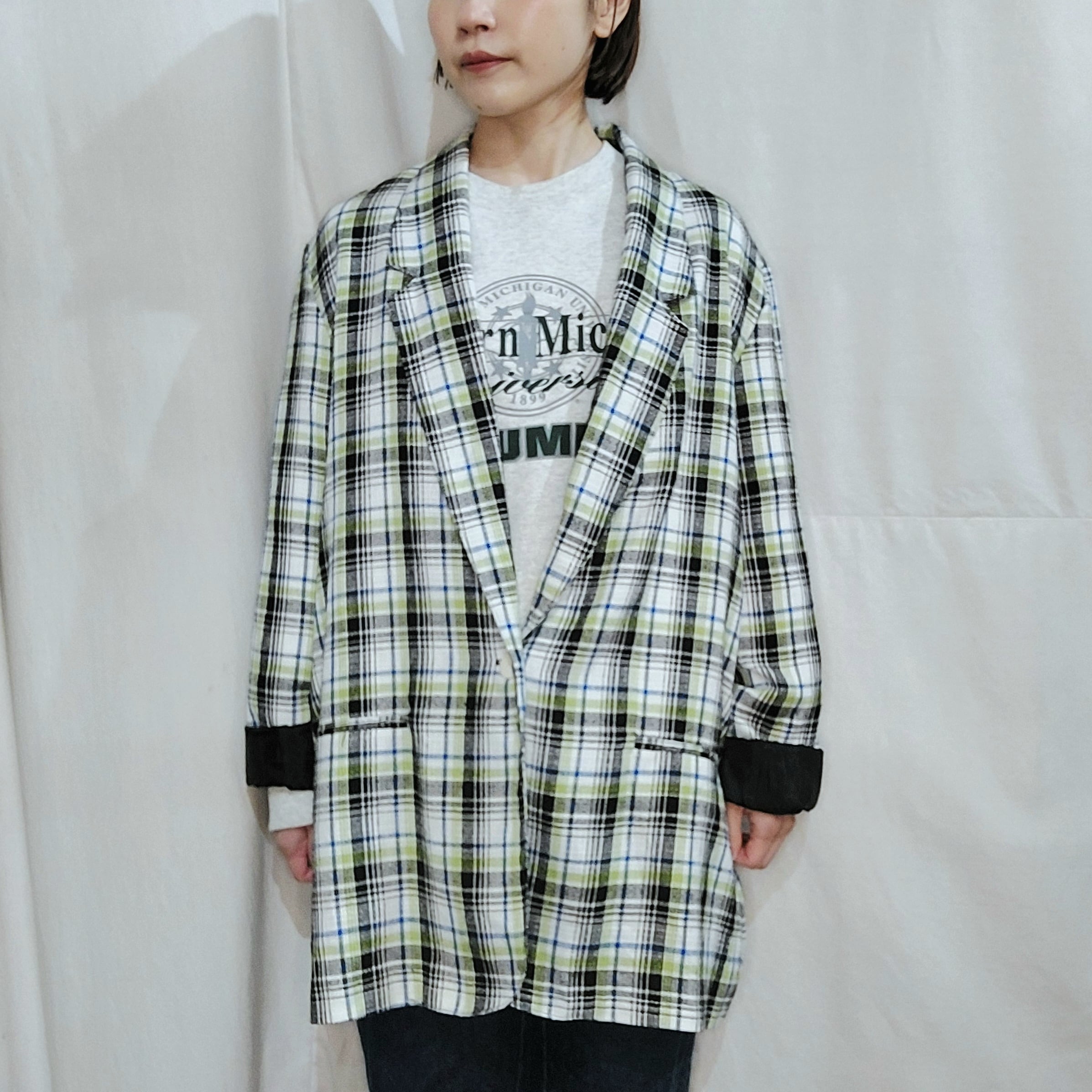 マルチカラーチェックが可愛らしいイージージャケットです。