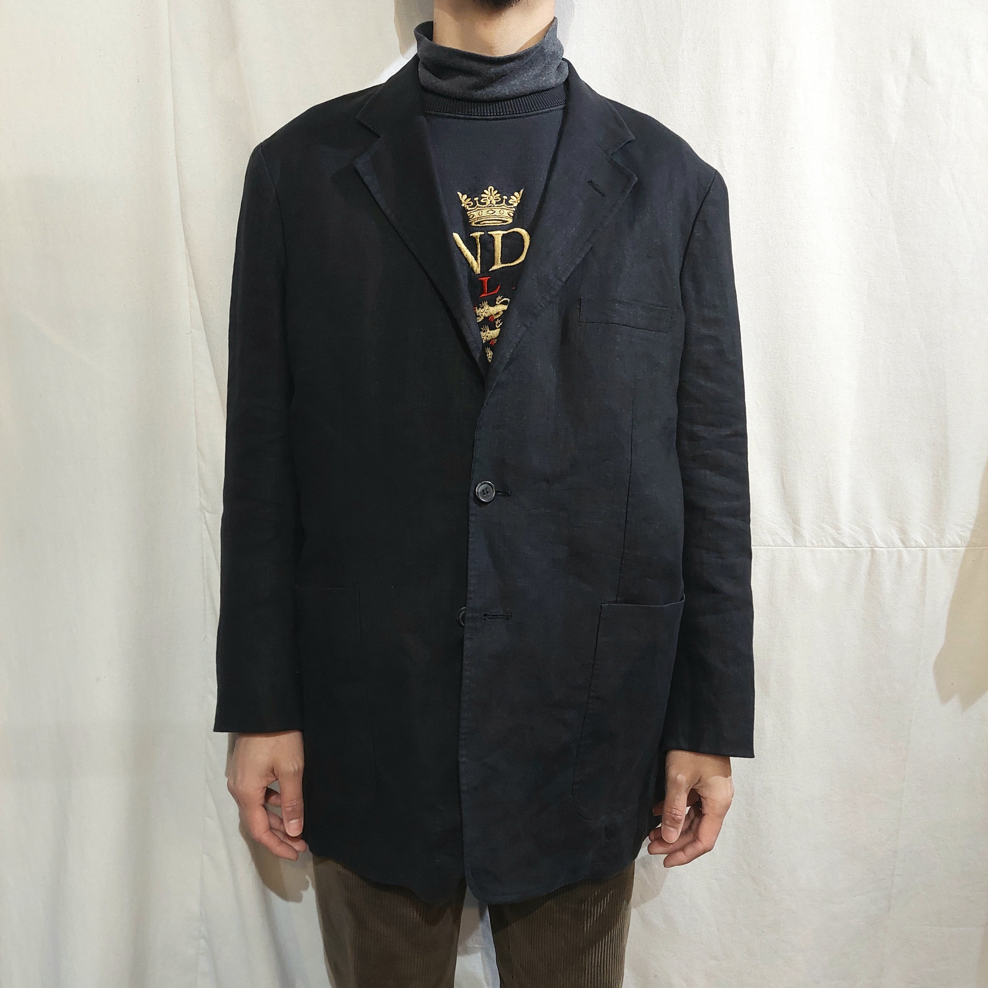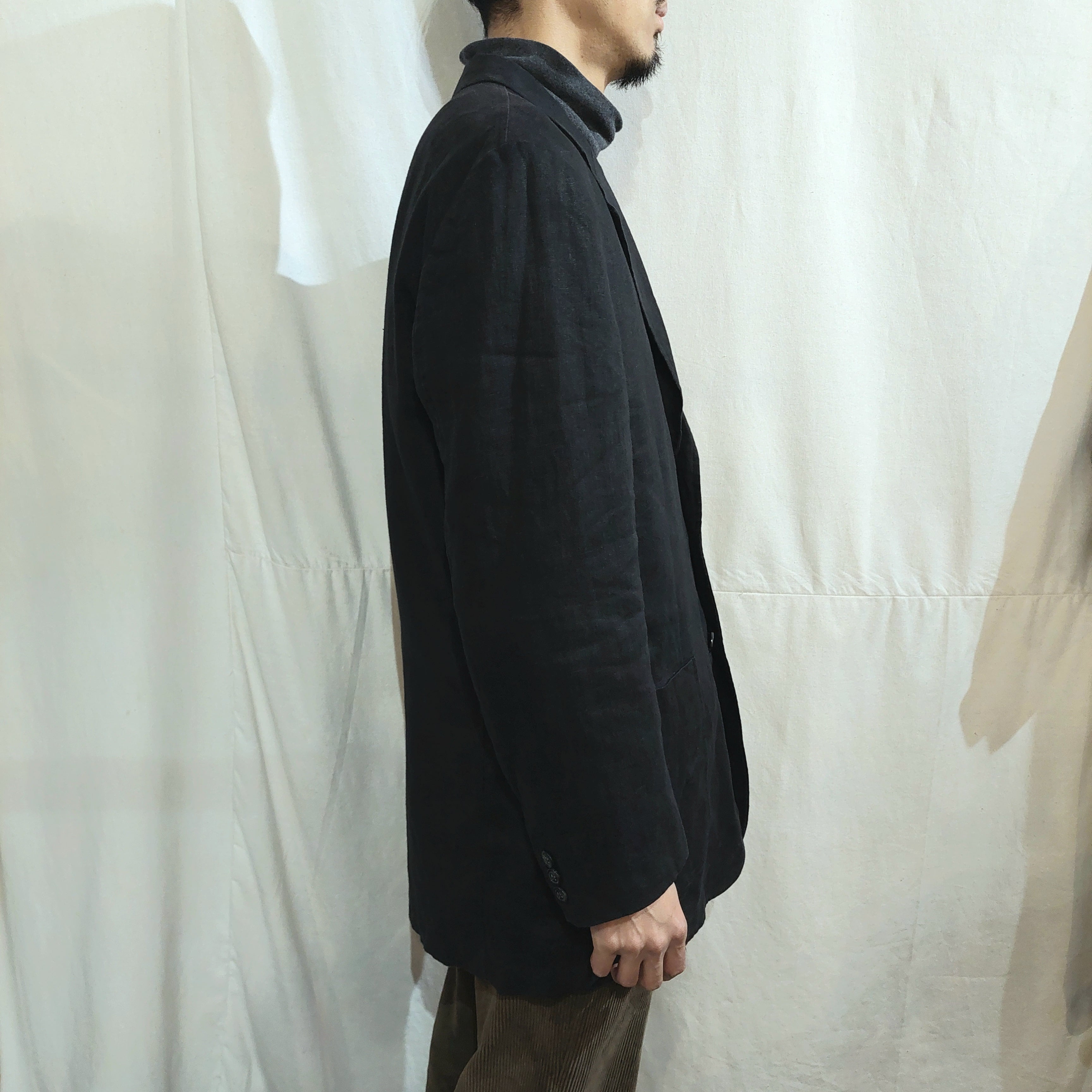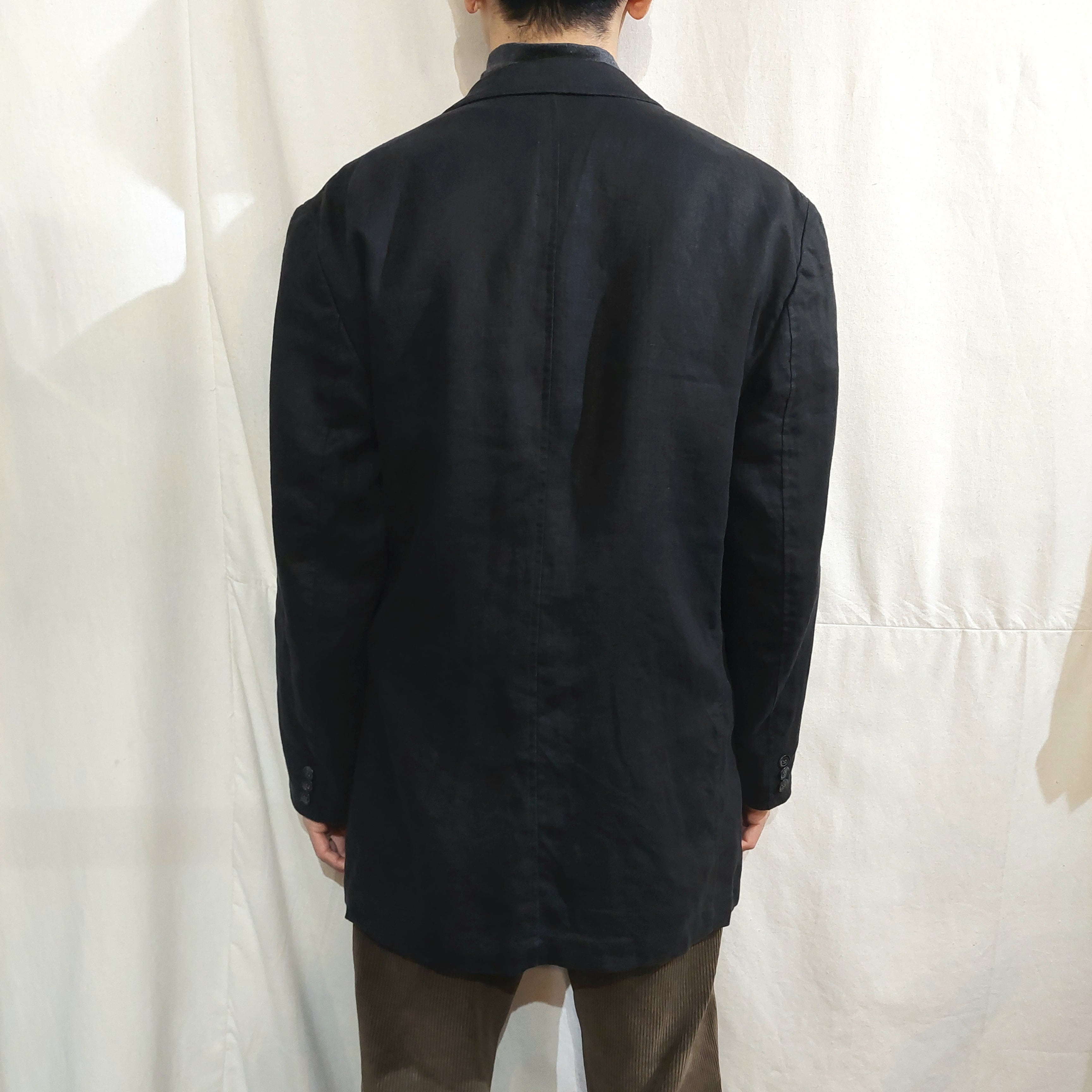 Black linen tailored jacket [ff-11000]ブラックリネンテーラードジャケット