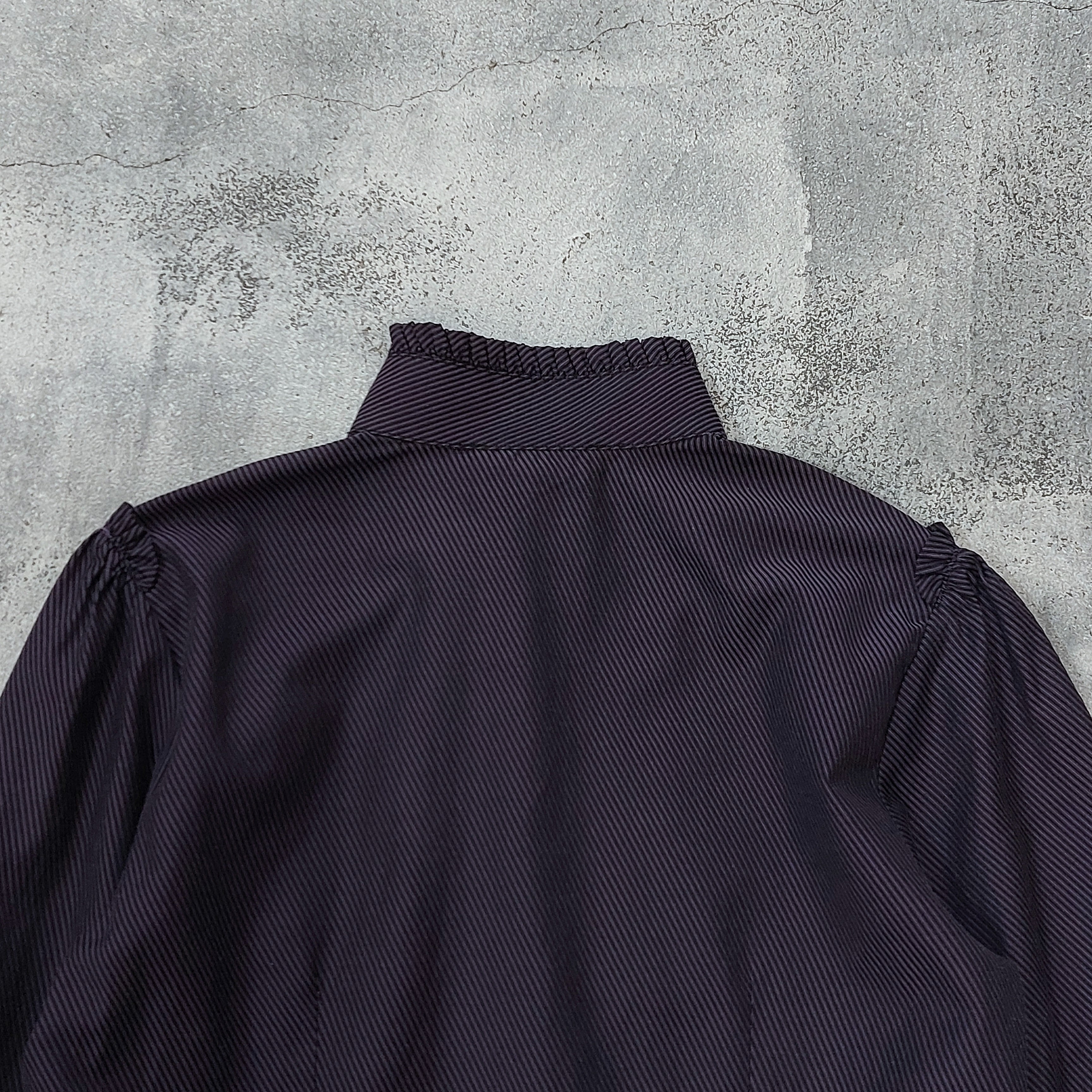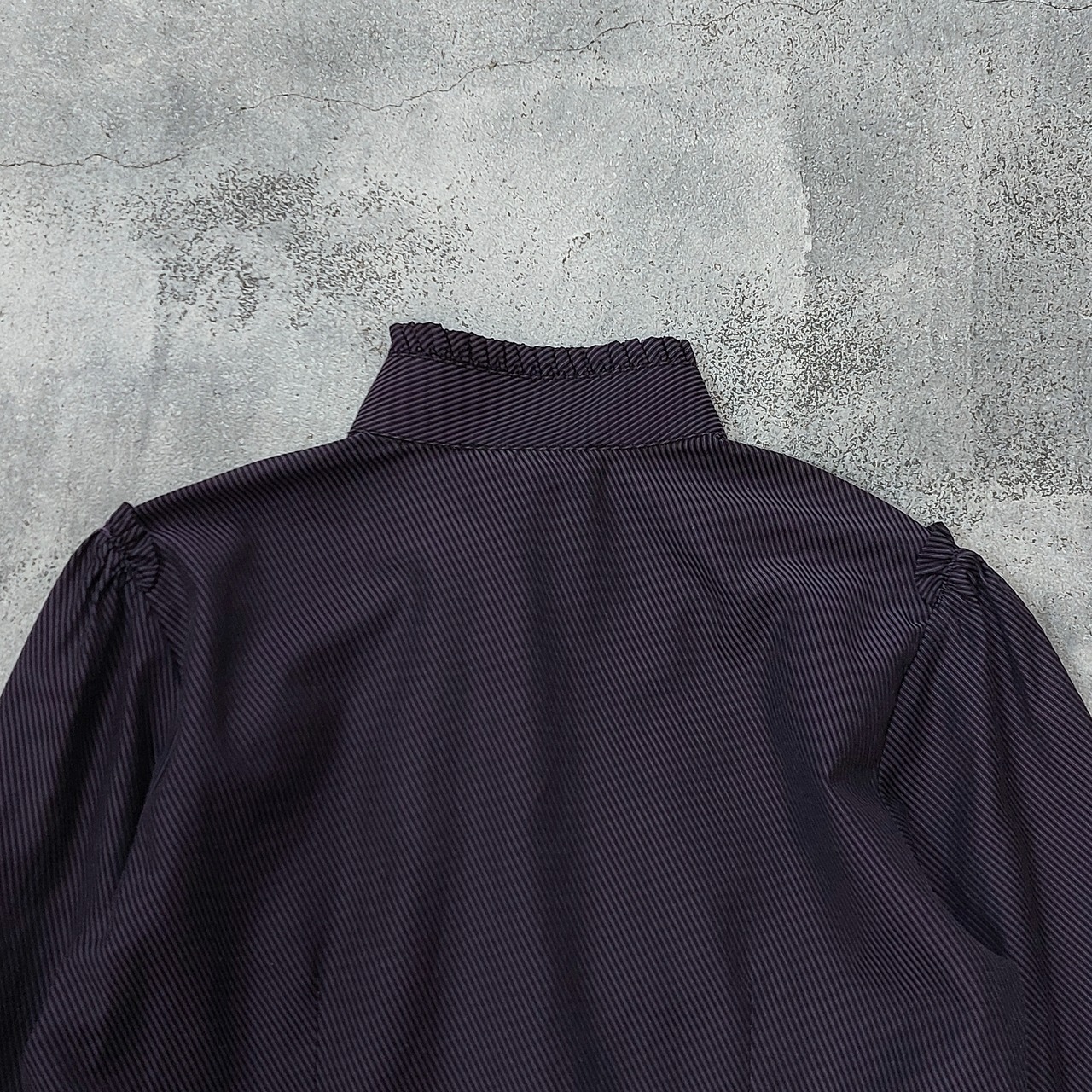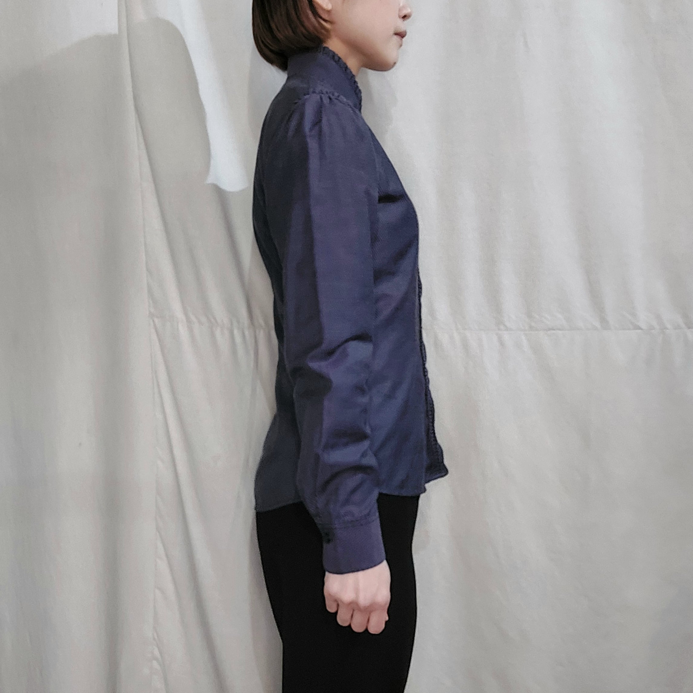 ルーマニア製NARACAMICIEのピンストライプフリルスタンドカラーブラウスです。