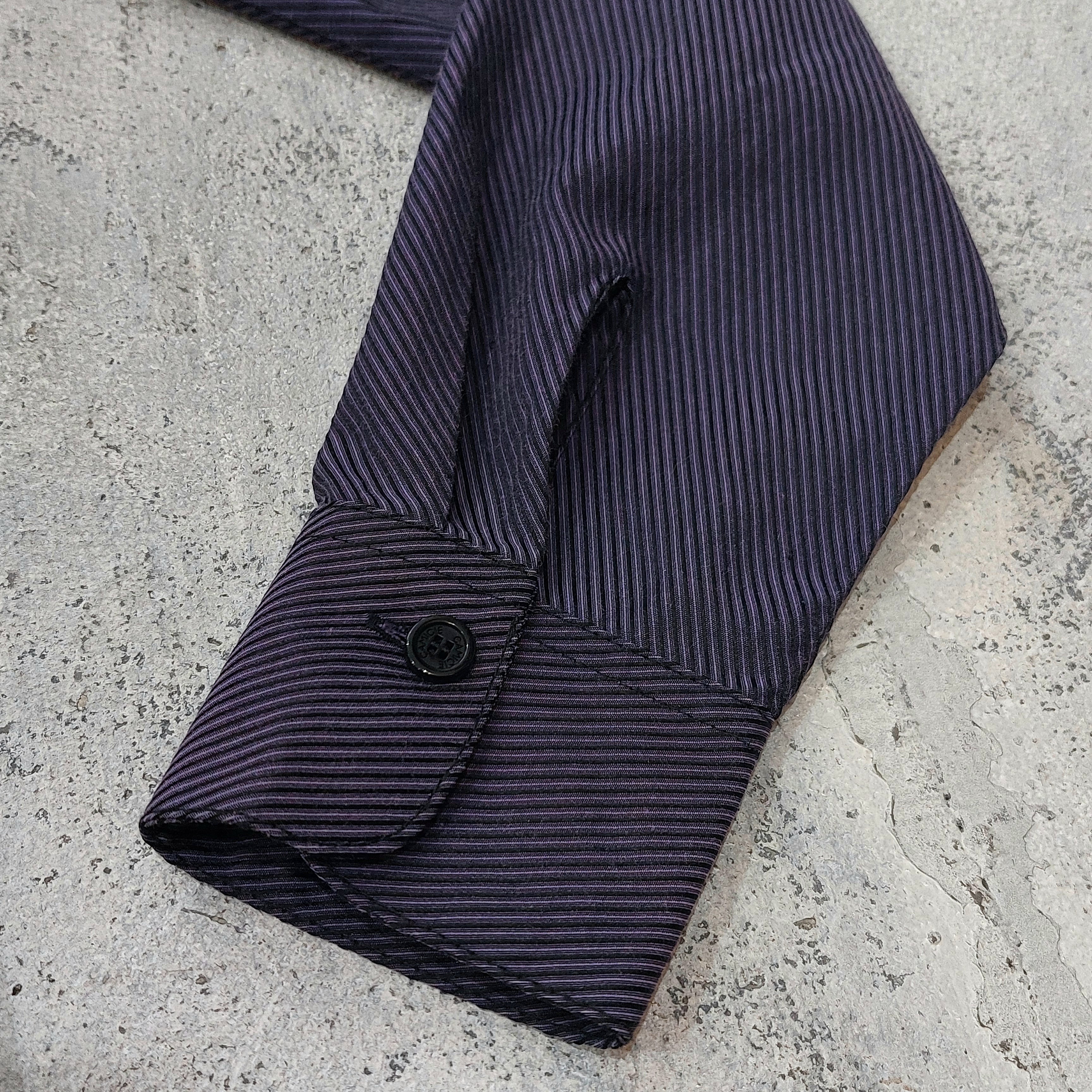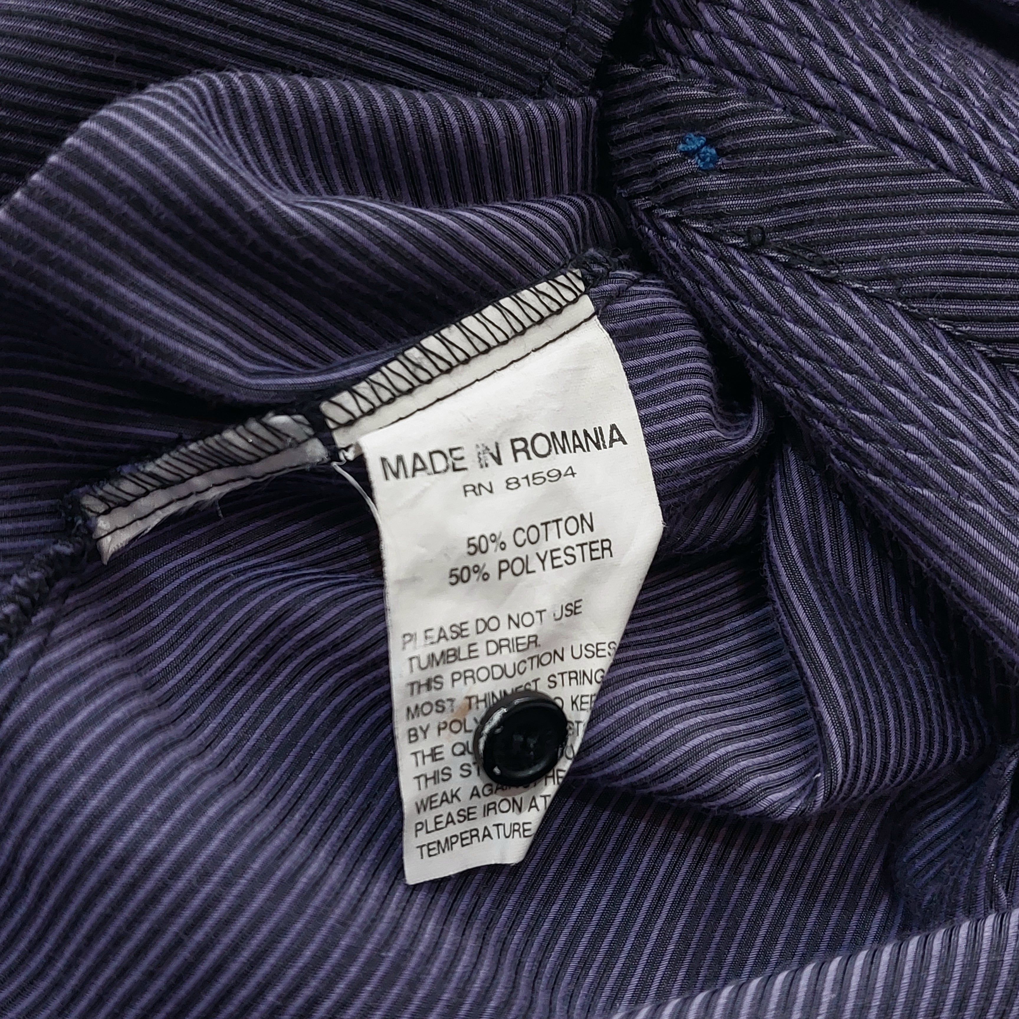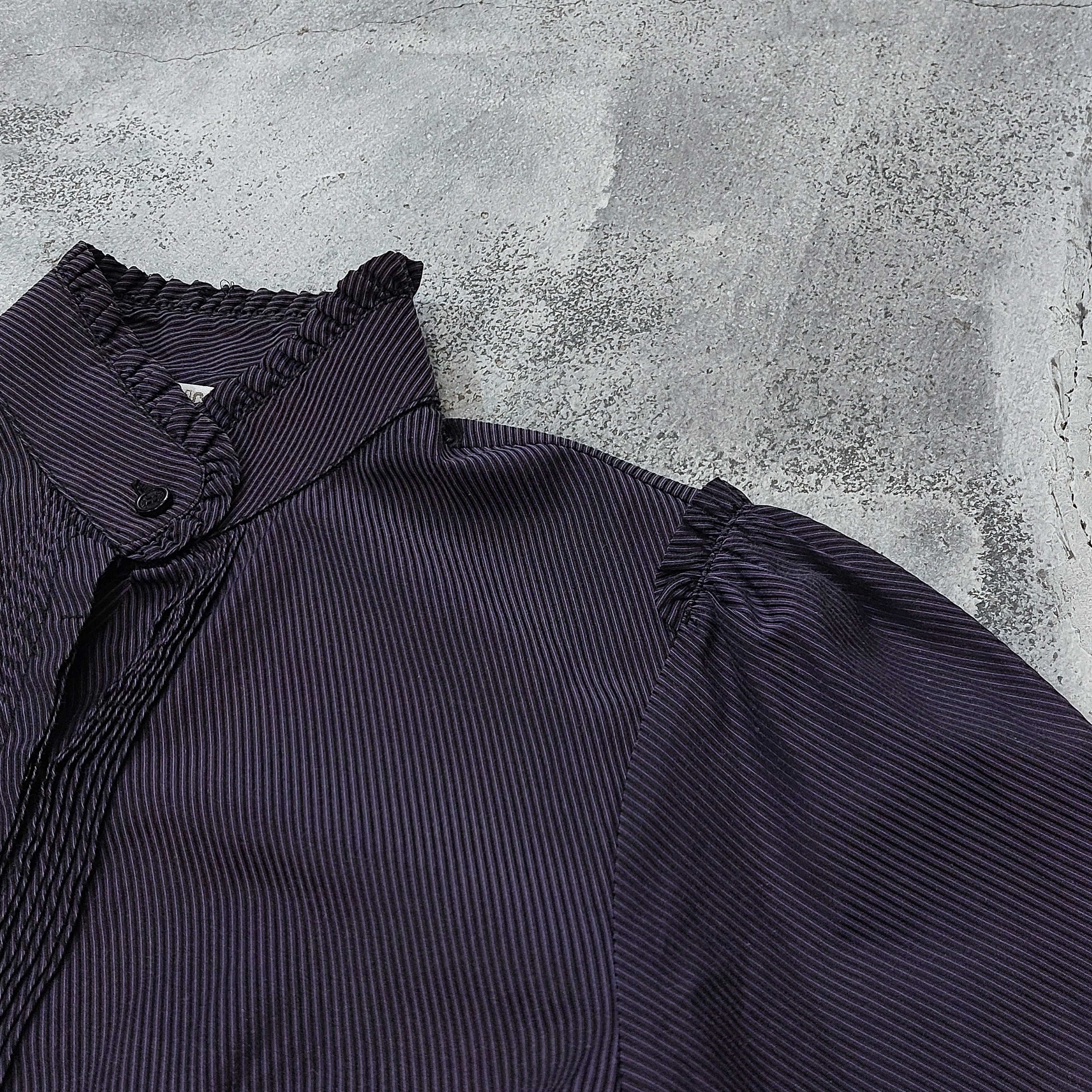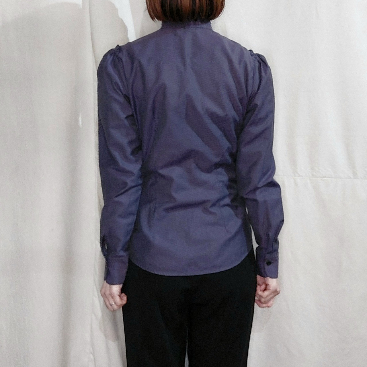 ルーマニア製NARACAMICIEのピンストライプフリルスタンドカラーブラウスです。