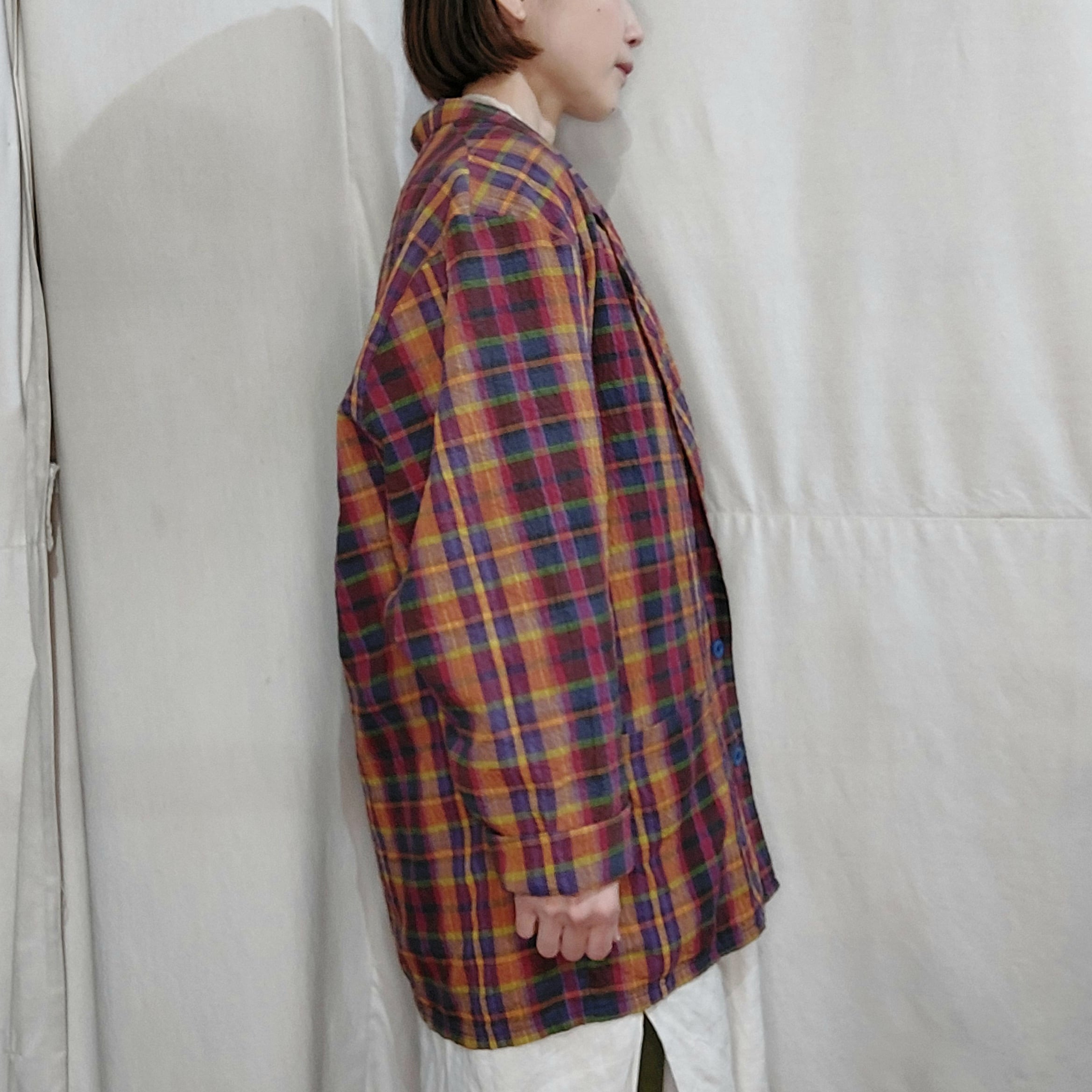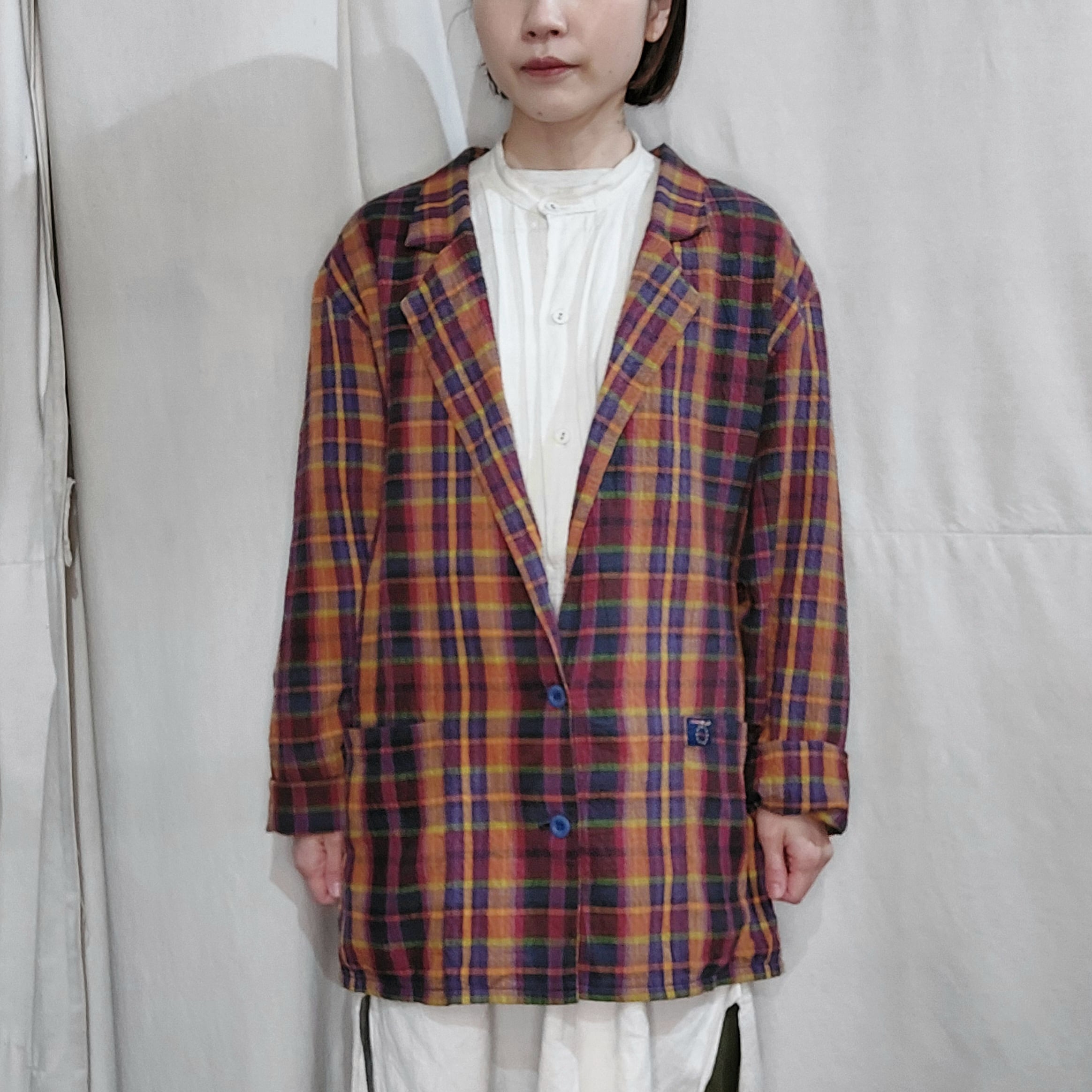 Check pattern easy jacket / Made in France[fa-844]フランス製チェック柄イージージャケット