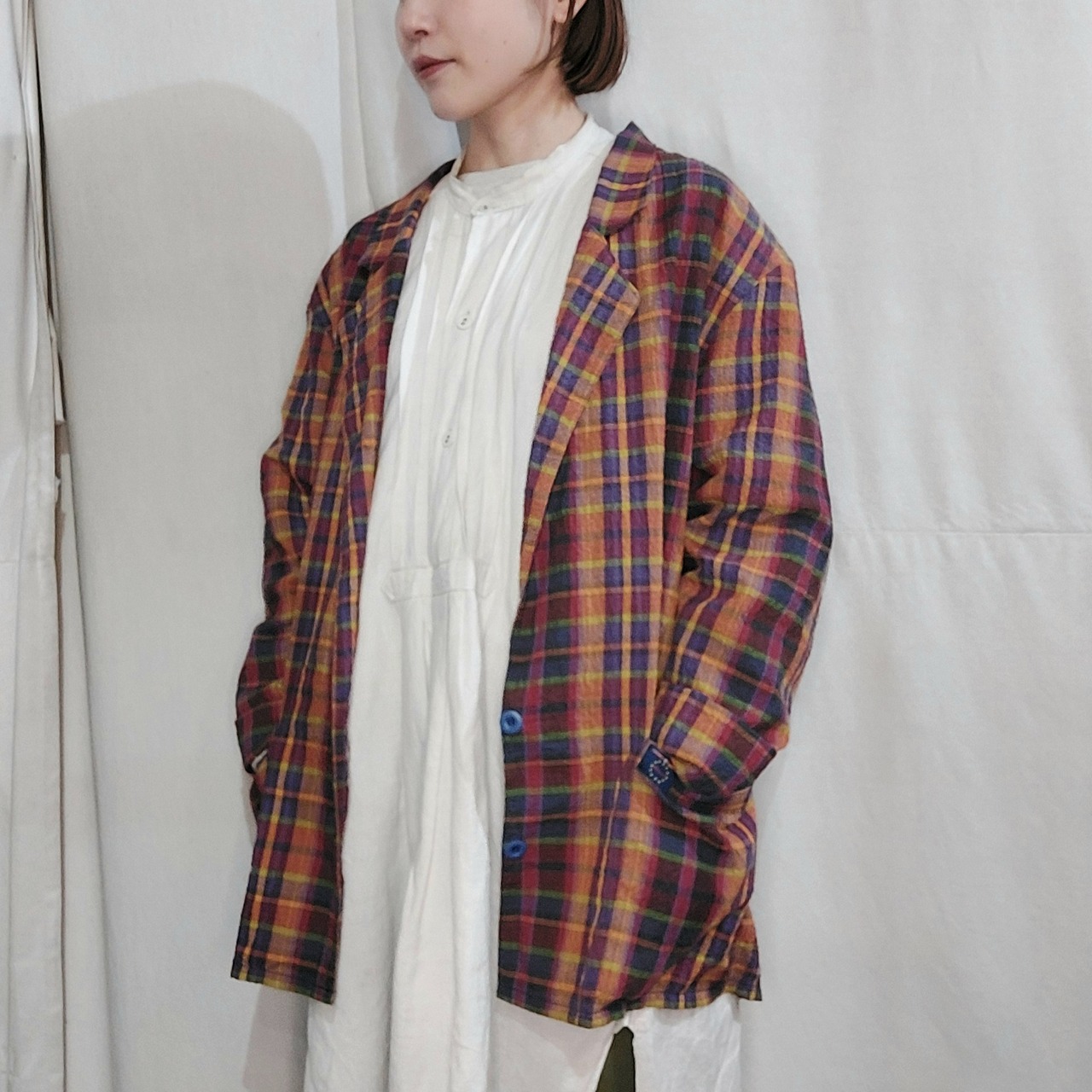 フランス製のチェック柄イージージャケットです。