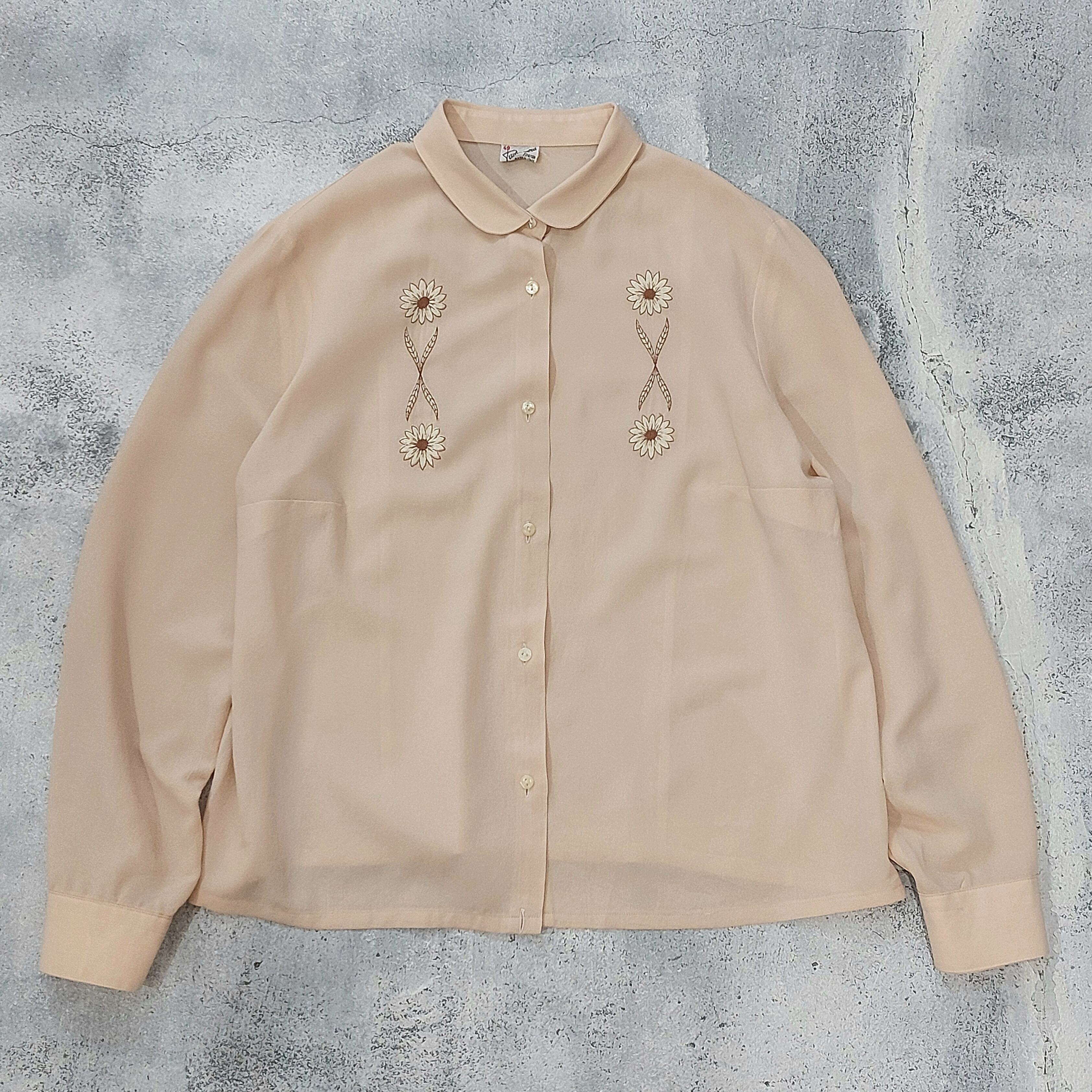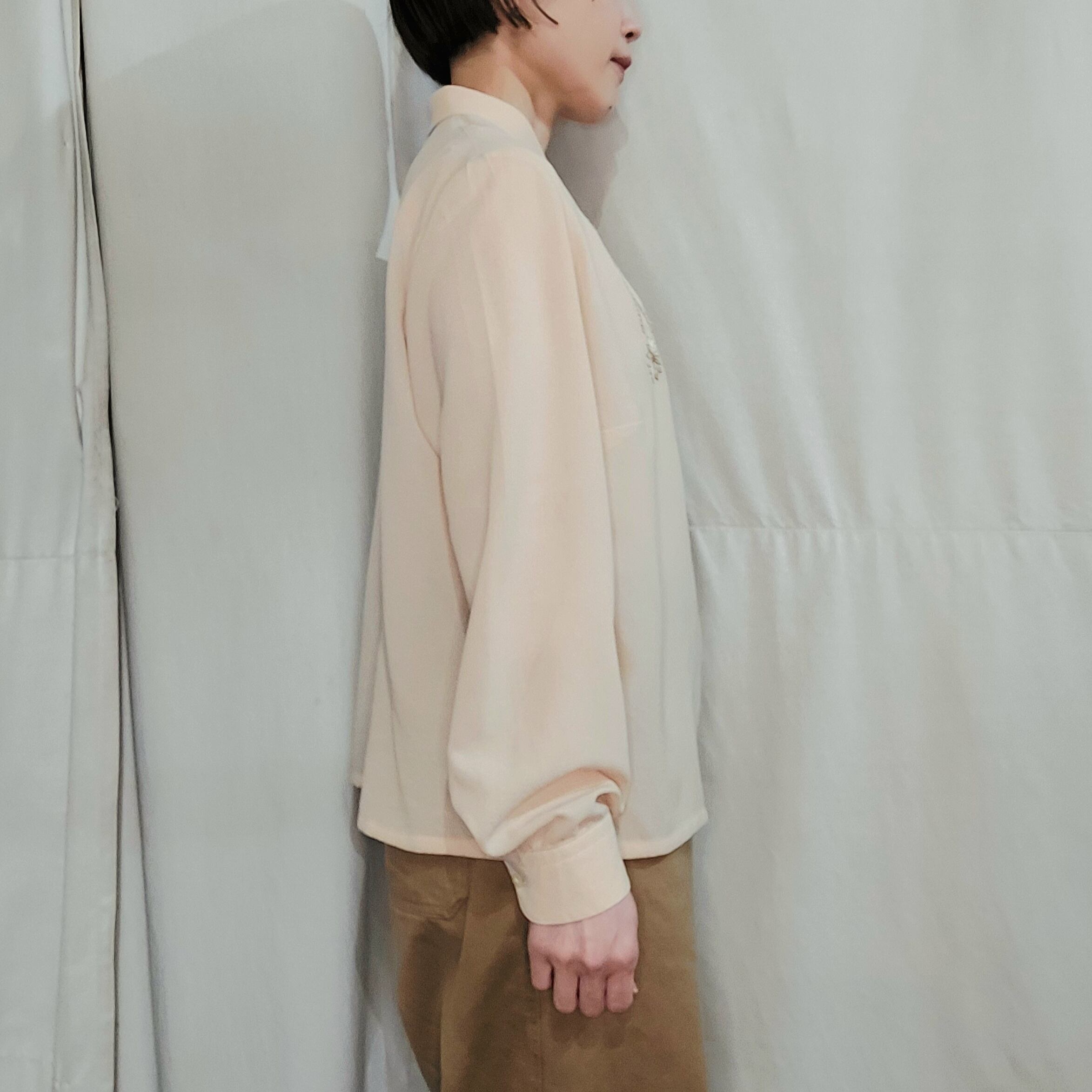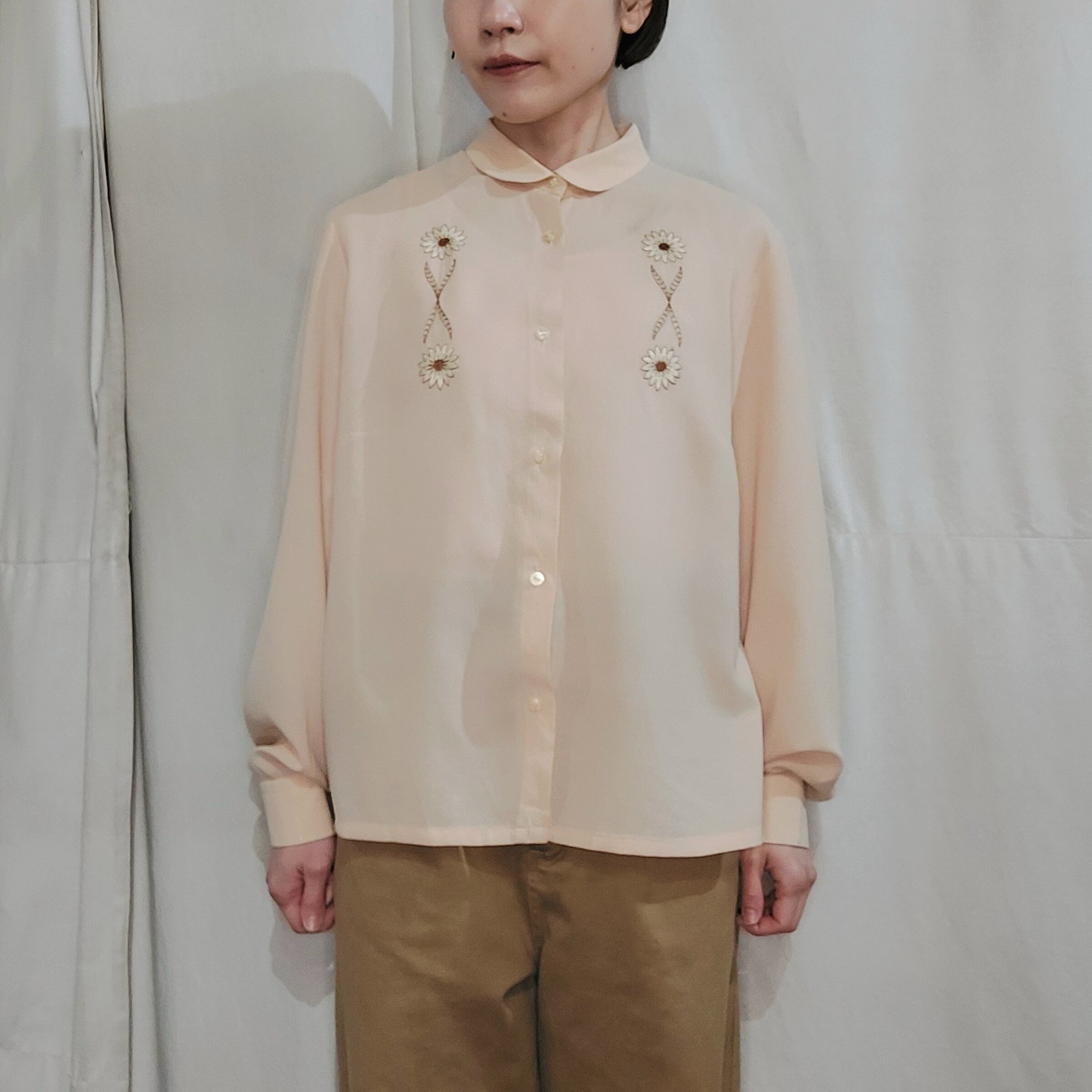 花刺繍が可愛らしいイタリア製の丸襟ブラウスです。