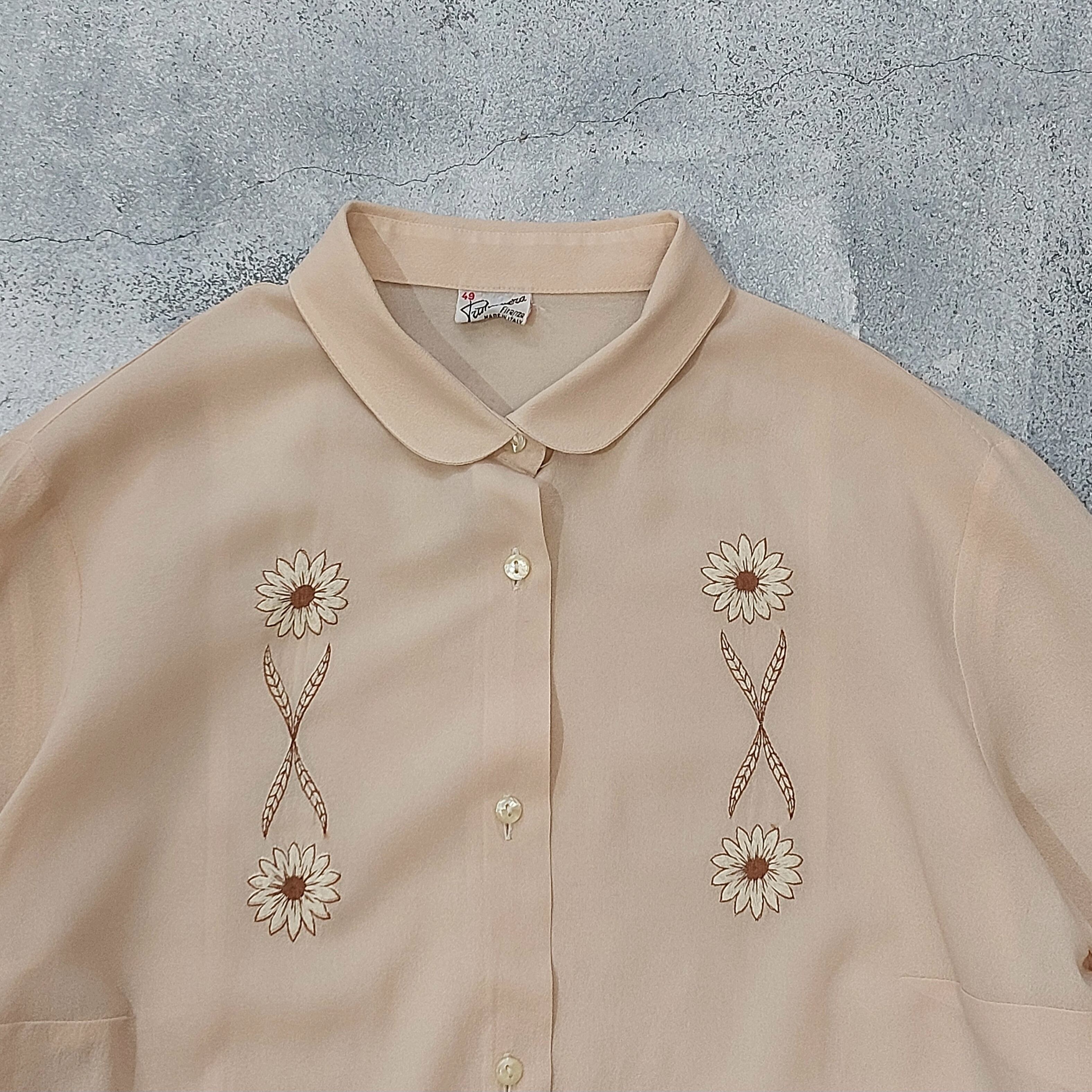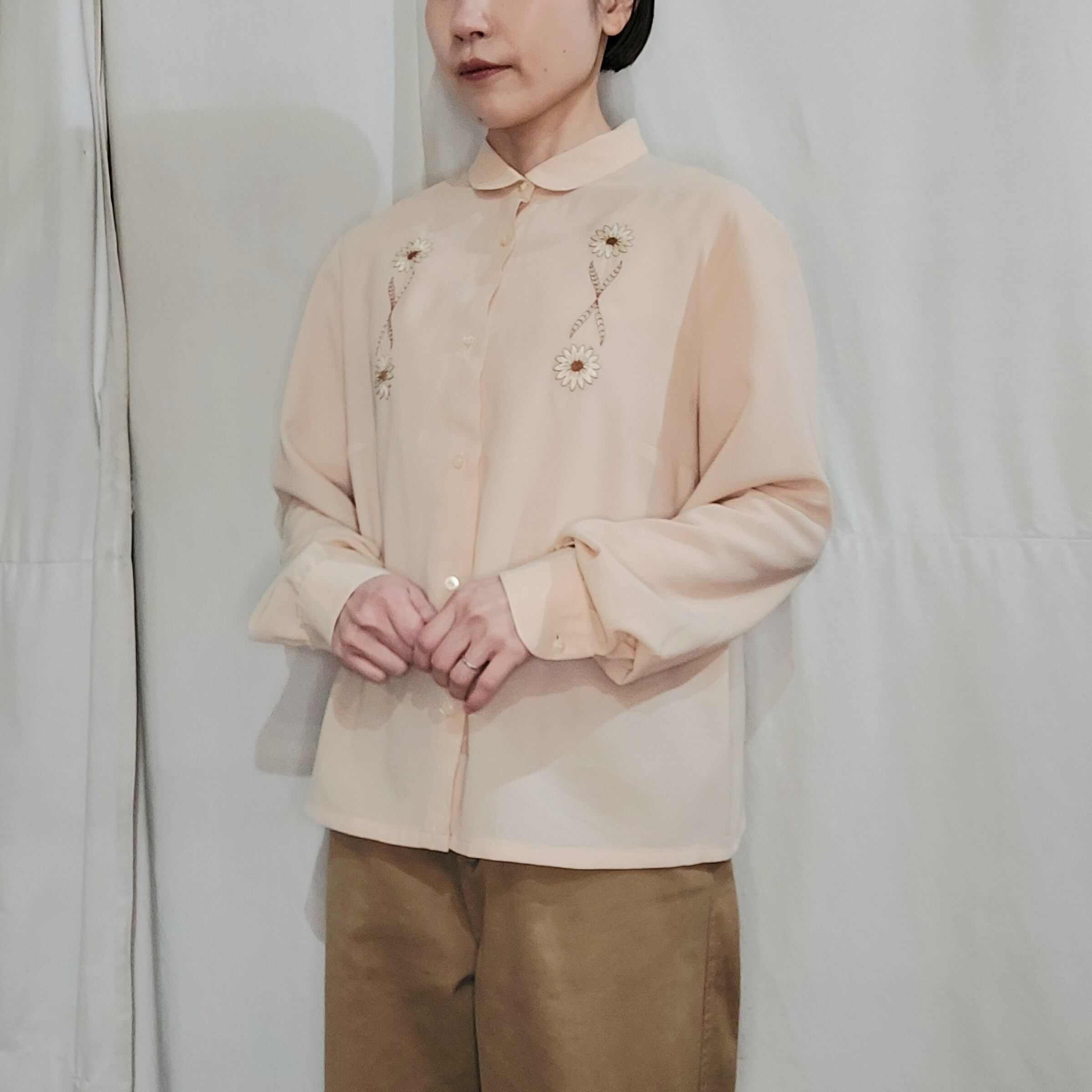 Flower embroidery round collar blouse / Made in Italy[m-1444]イタリア製 花刺繍丸襟ブラウス