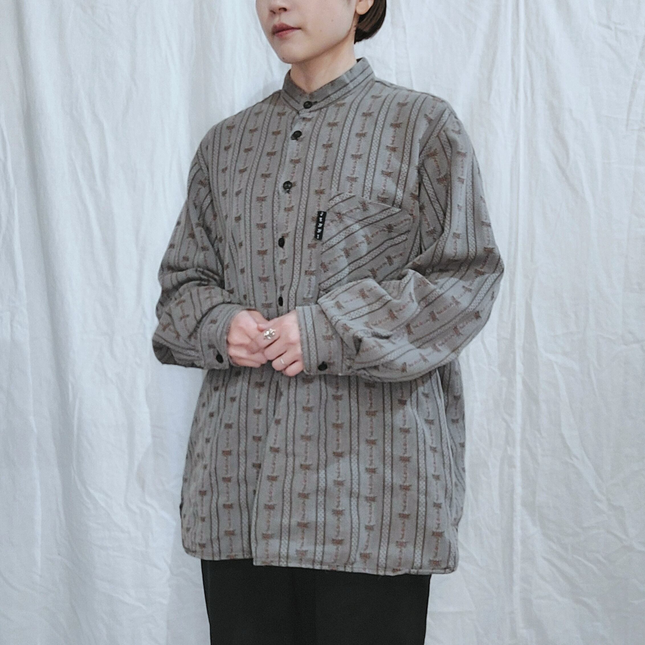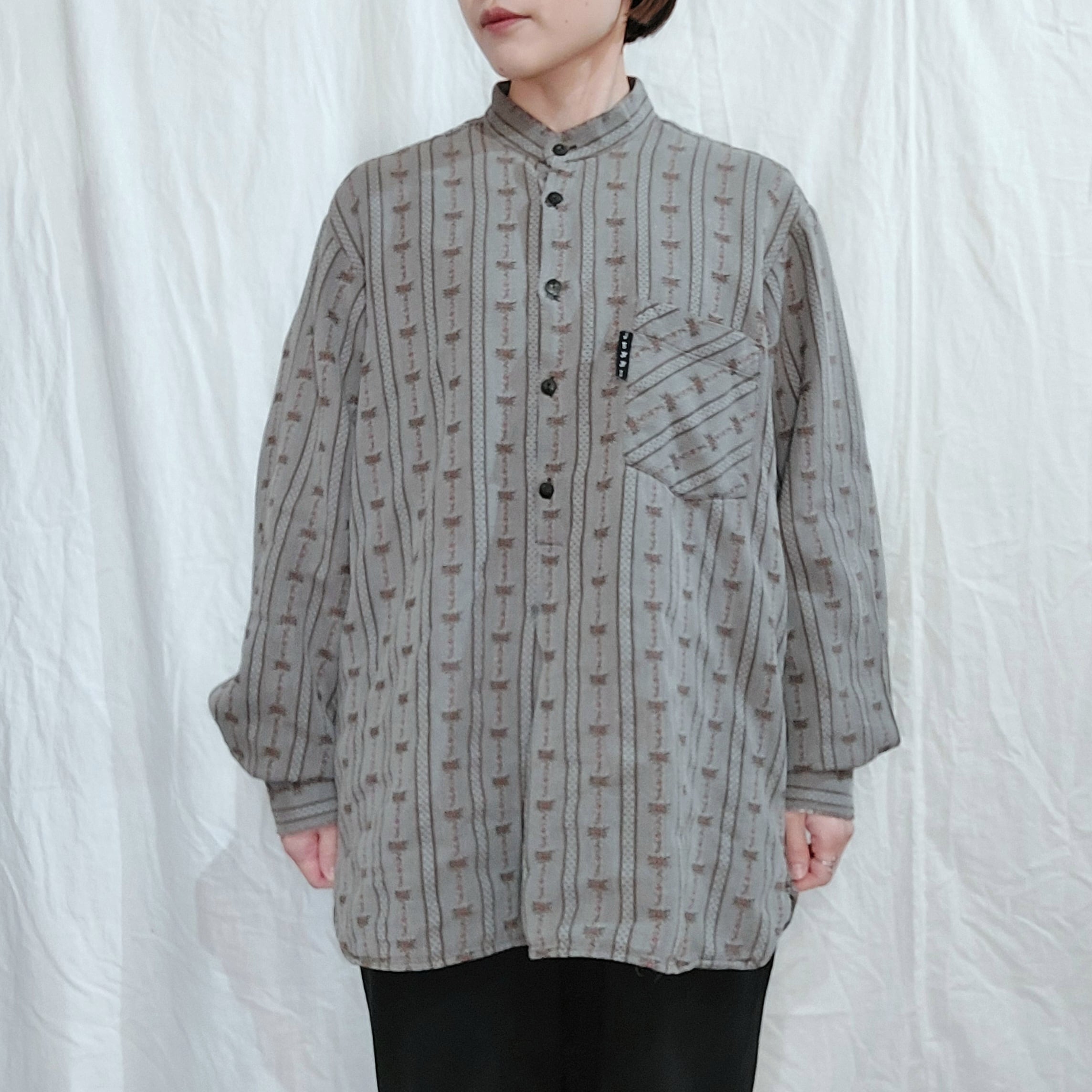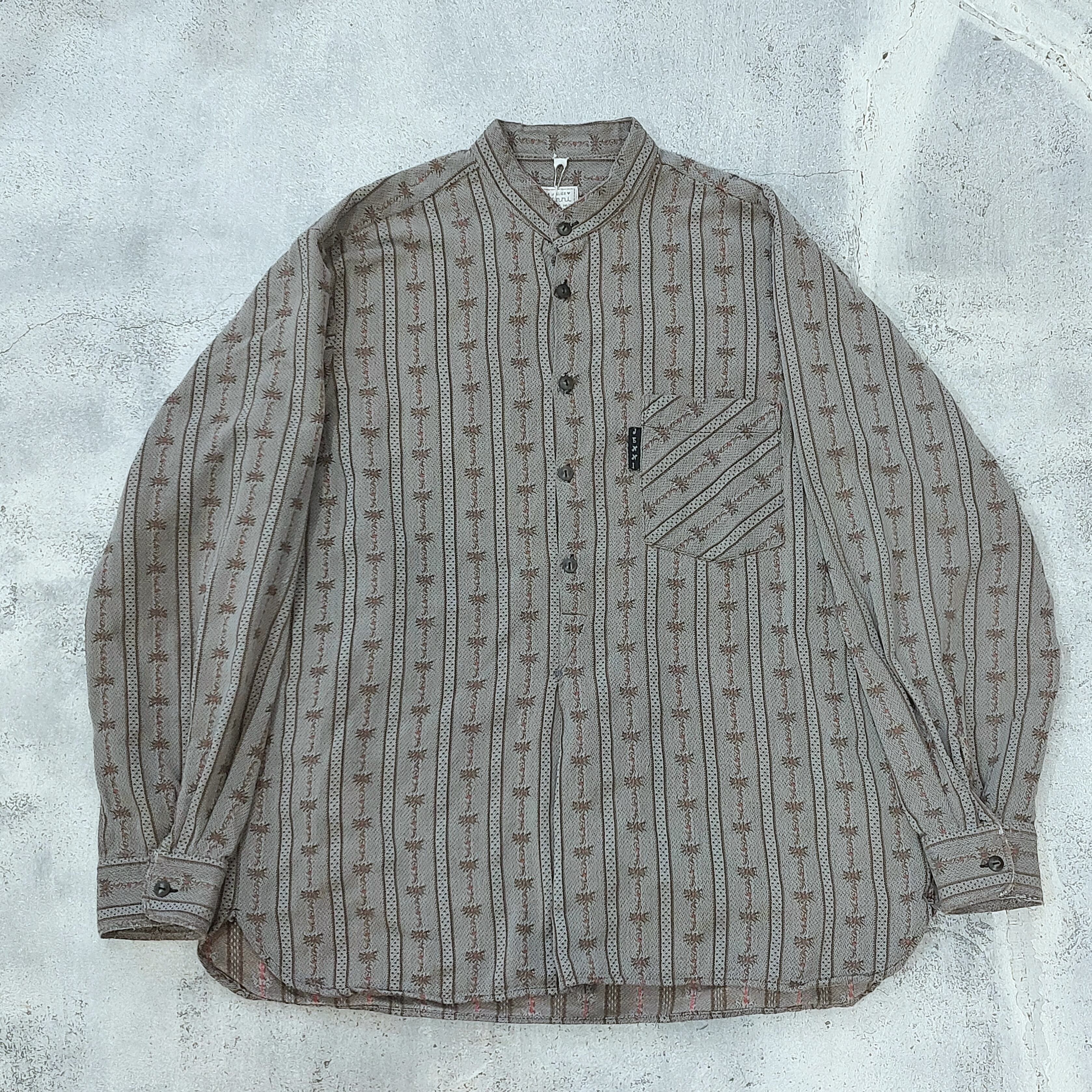 Woven pattern stand collar pullover shirt / Made in Switzerland[fa-896]スイス製織り柄スタンドカラープルオーバーシャツ