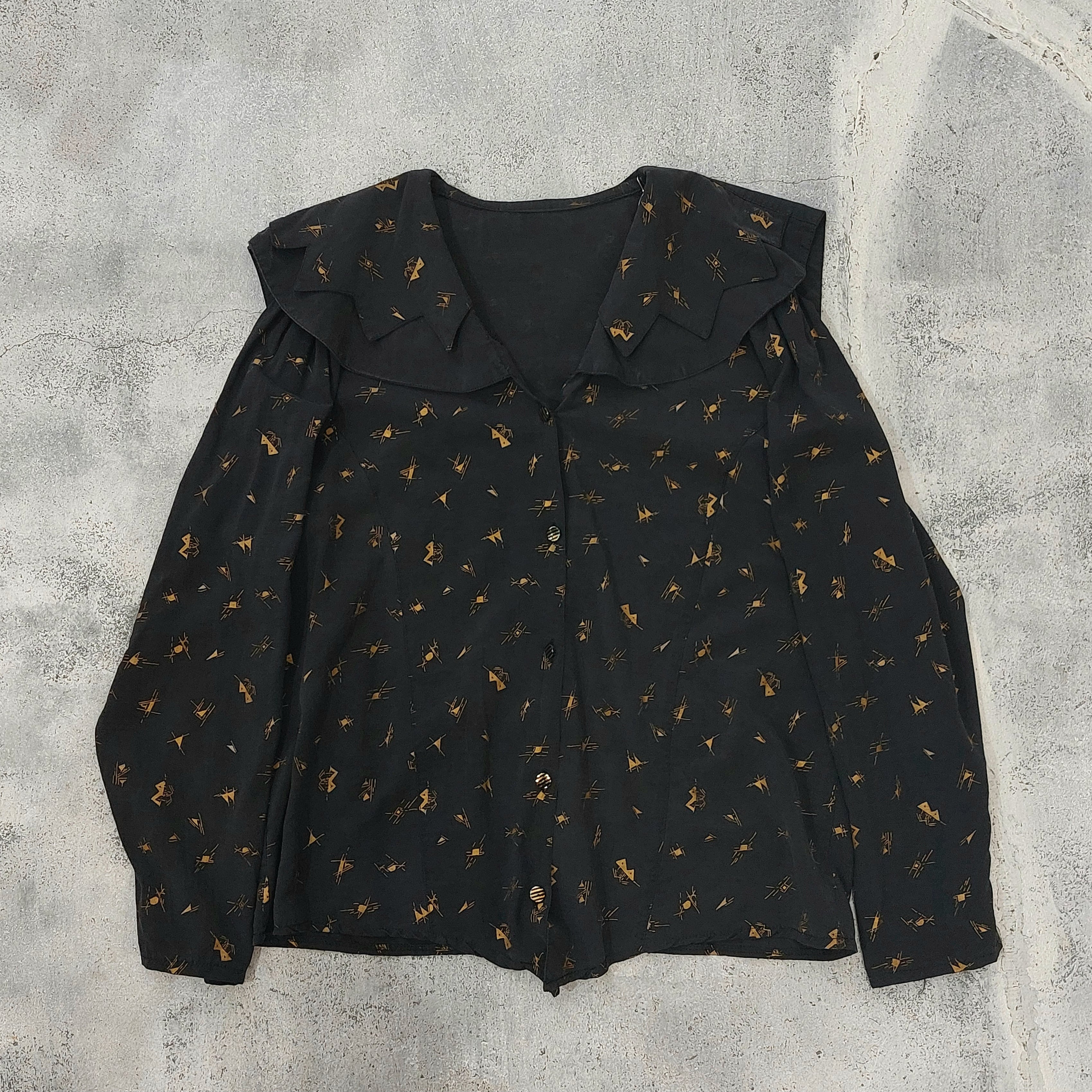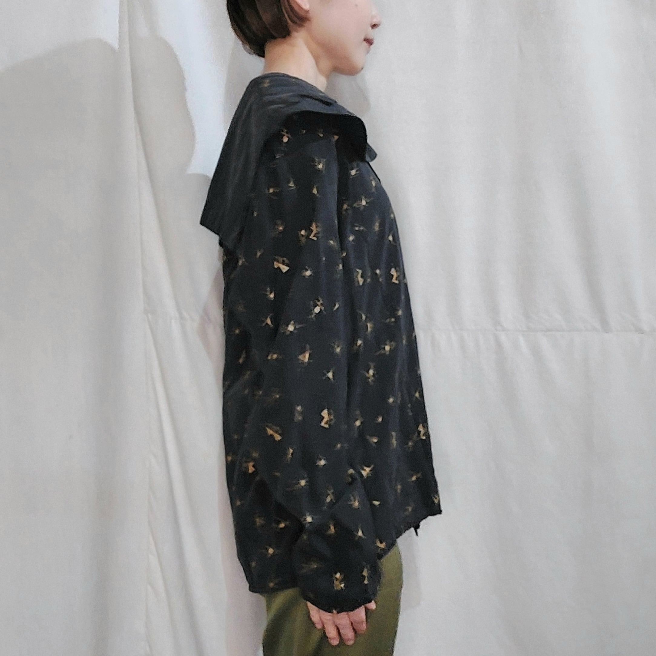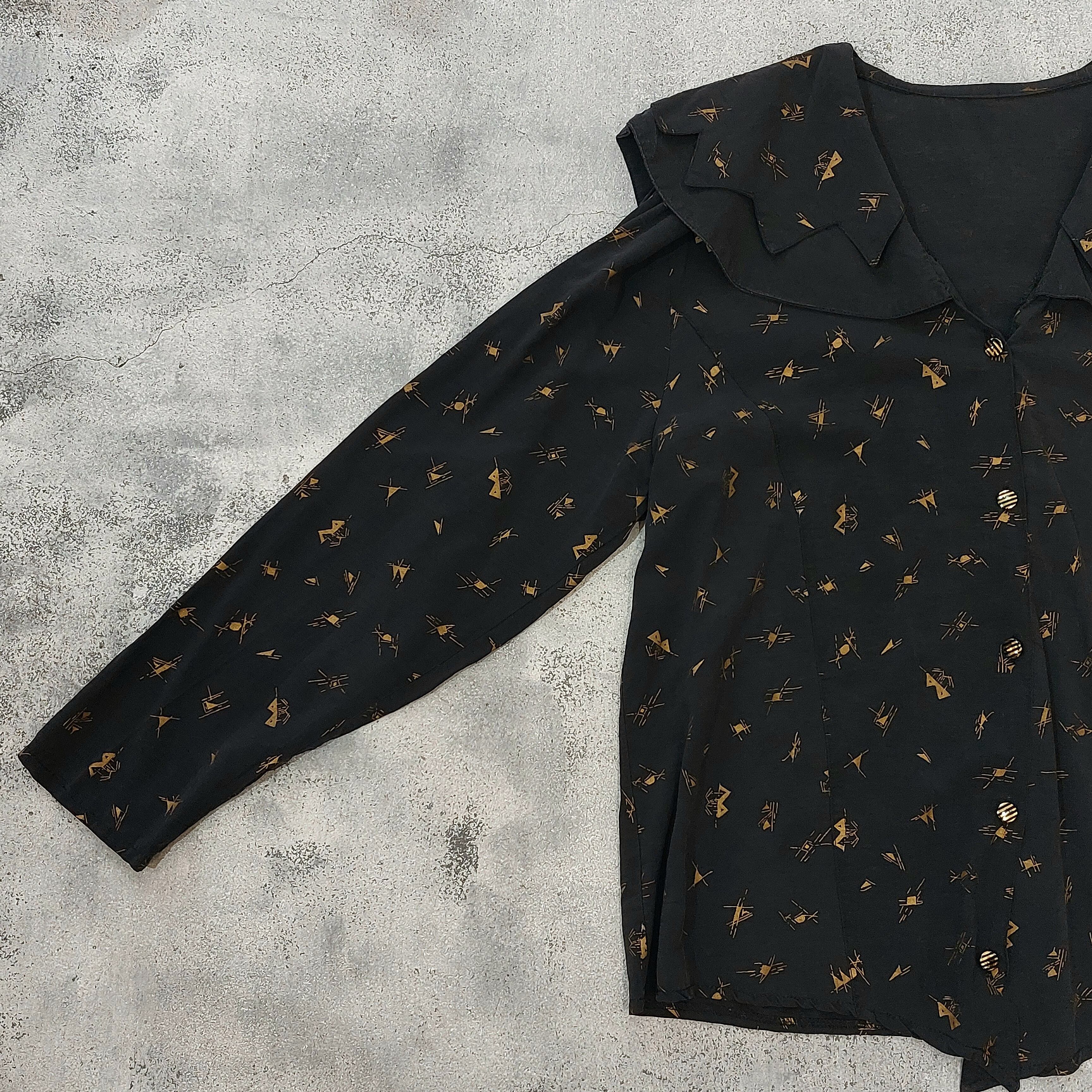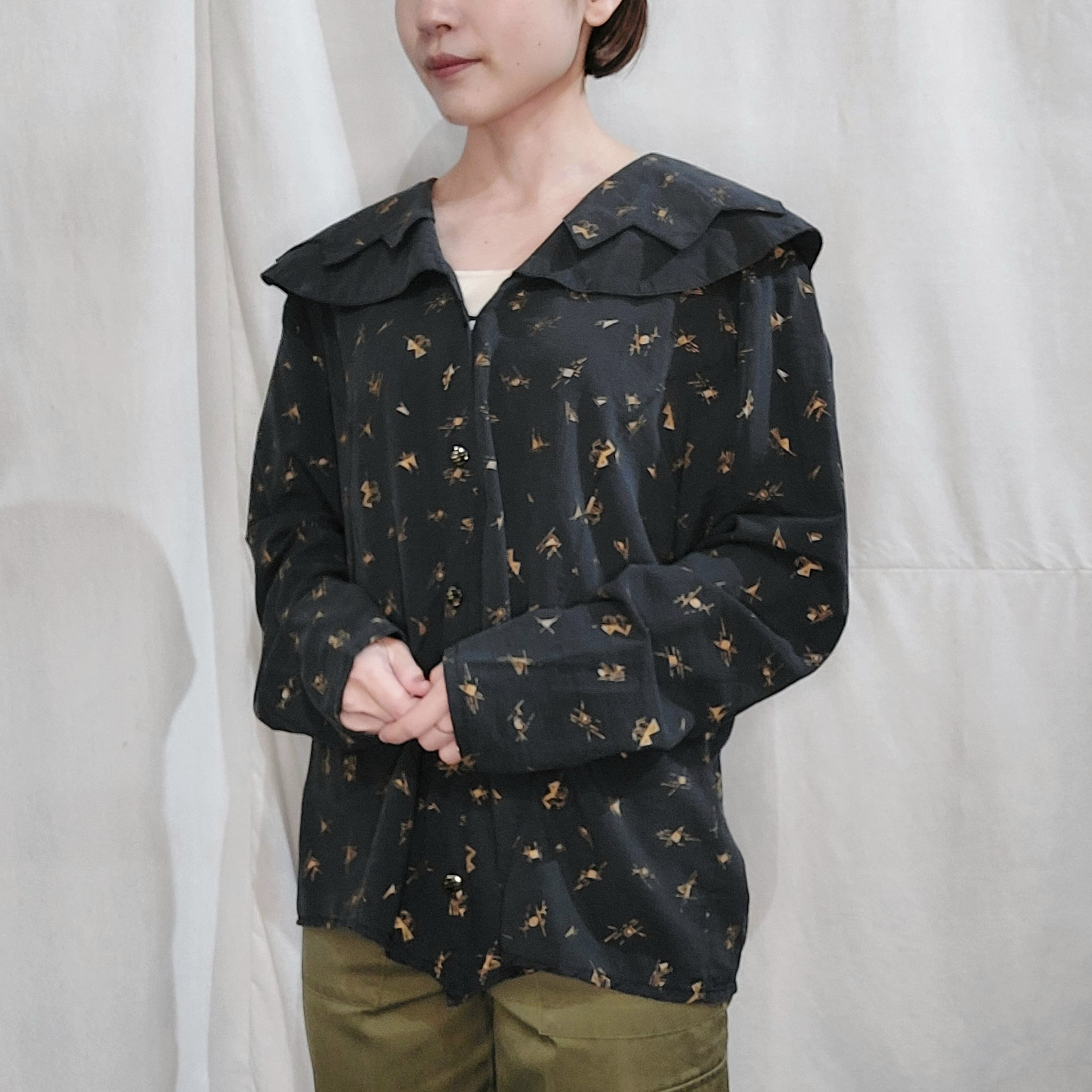 All over pattern design collar blouse / Made in Benelux[m-1480]ベネルクス製 総柄デザインカラーブラウス