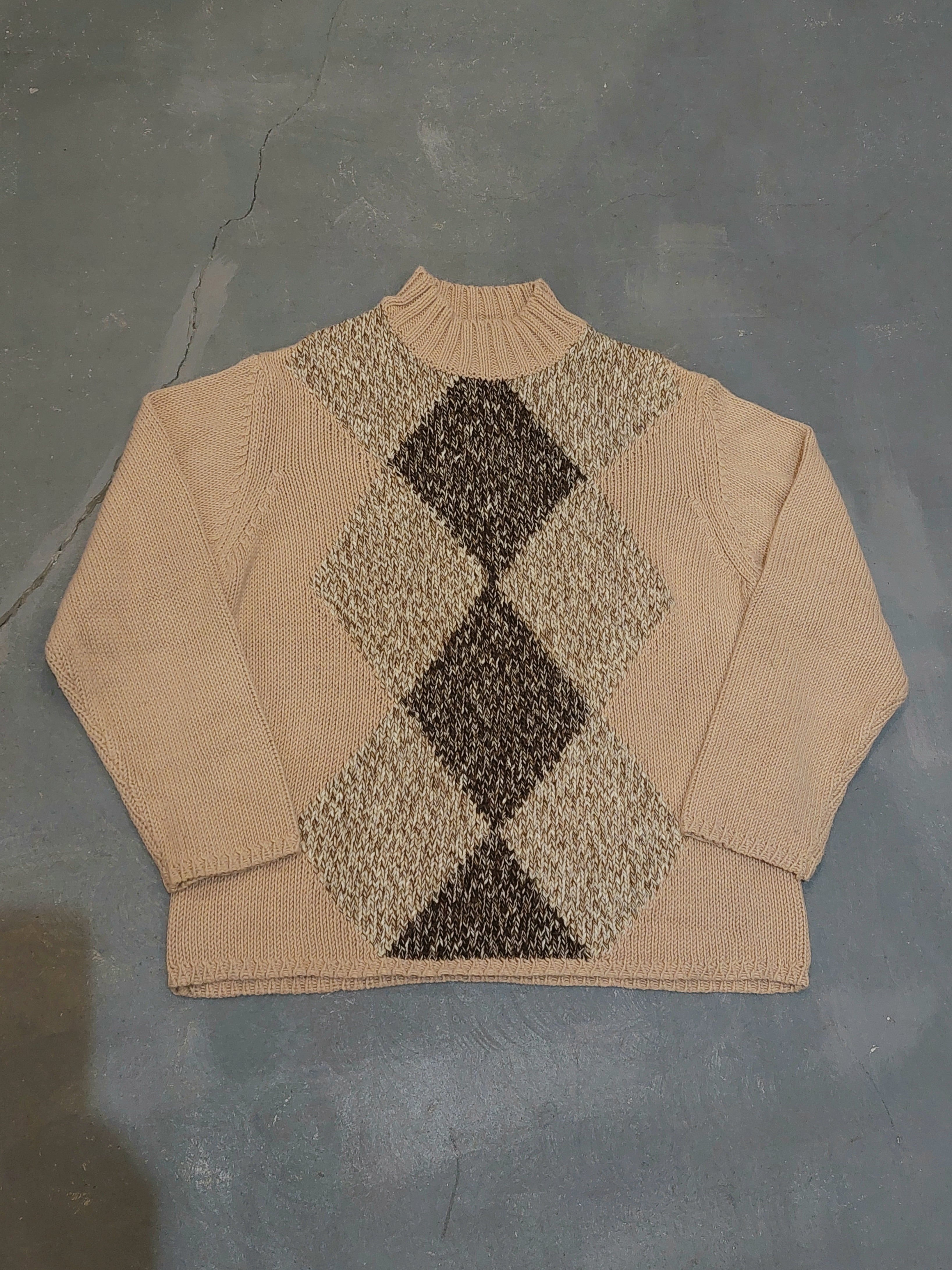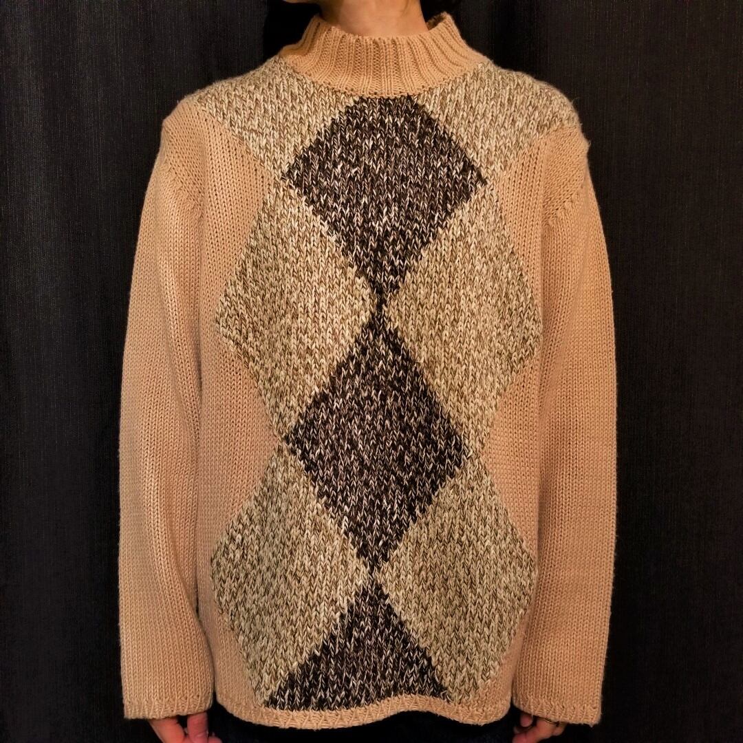 Diamond pattern high neck sweater /Made In Italy [G-1009]菱形柄ハイネックセーター