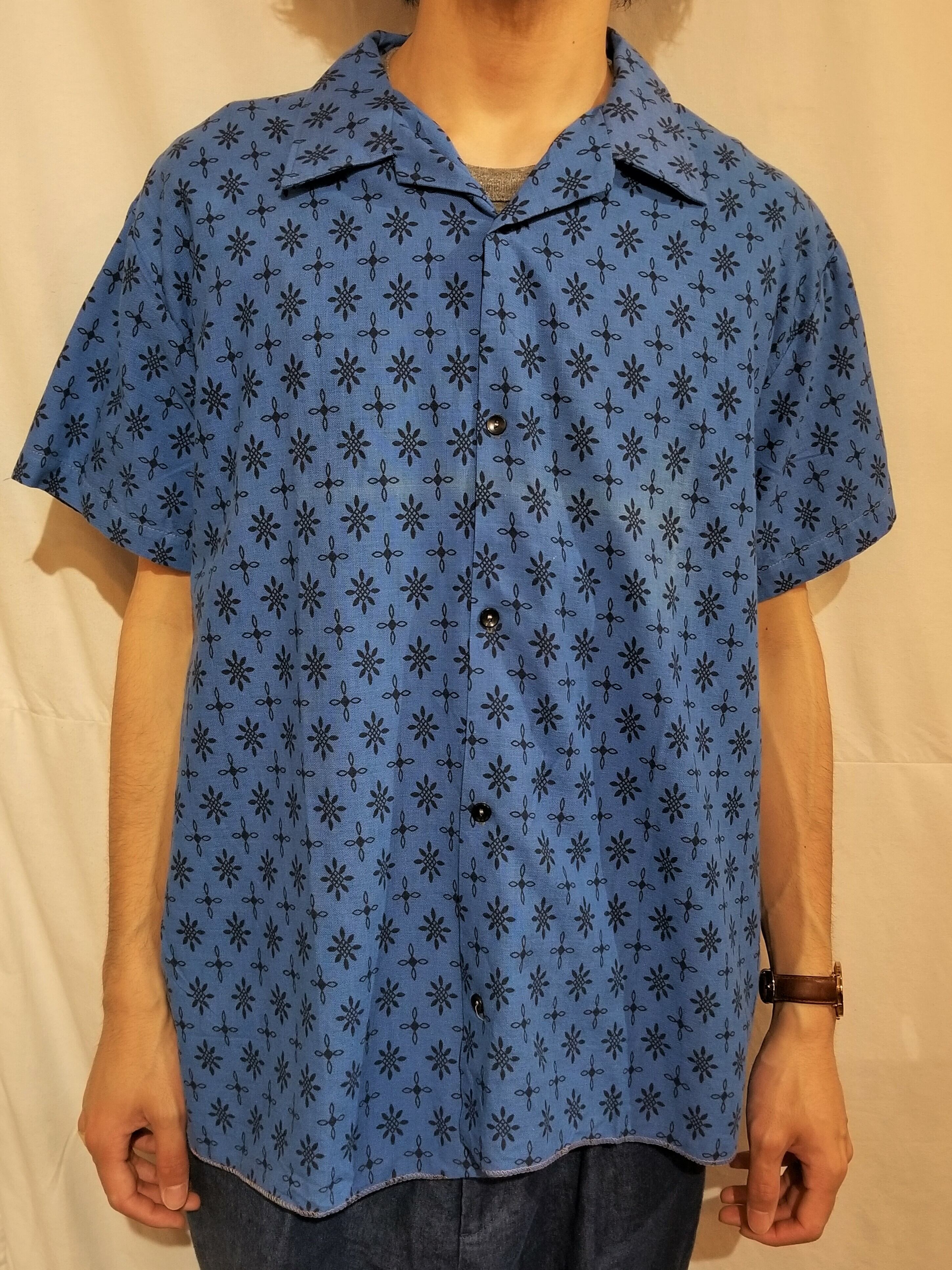 Vintage pattern open collar shirt [G-1217]ヴィンテージ総柄開襟シャツ
