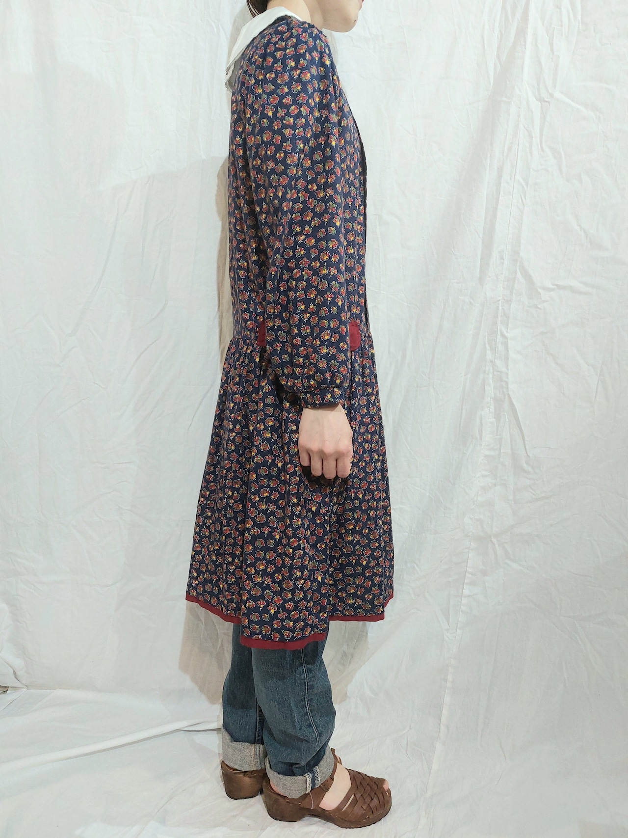 両脇にはリボンのような飾りが付いており、裾は同生地で切り替えてある凝ったデザインが魅力です。