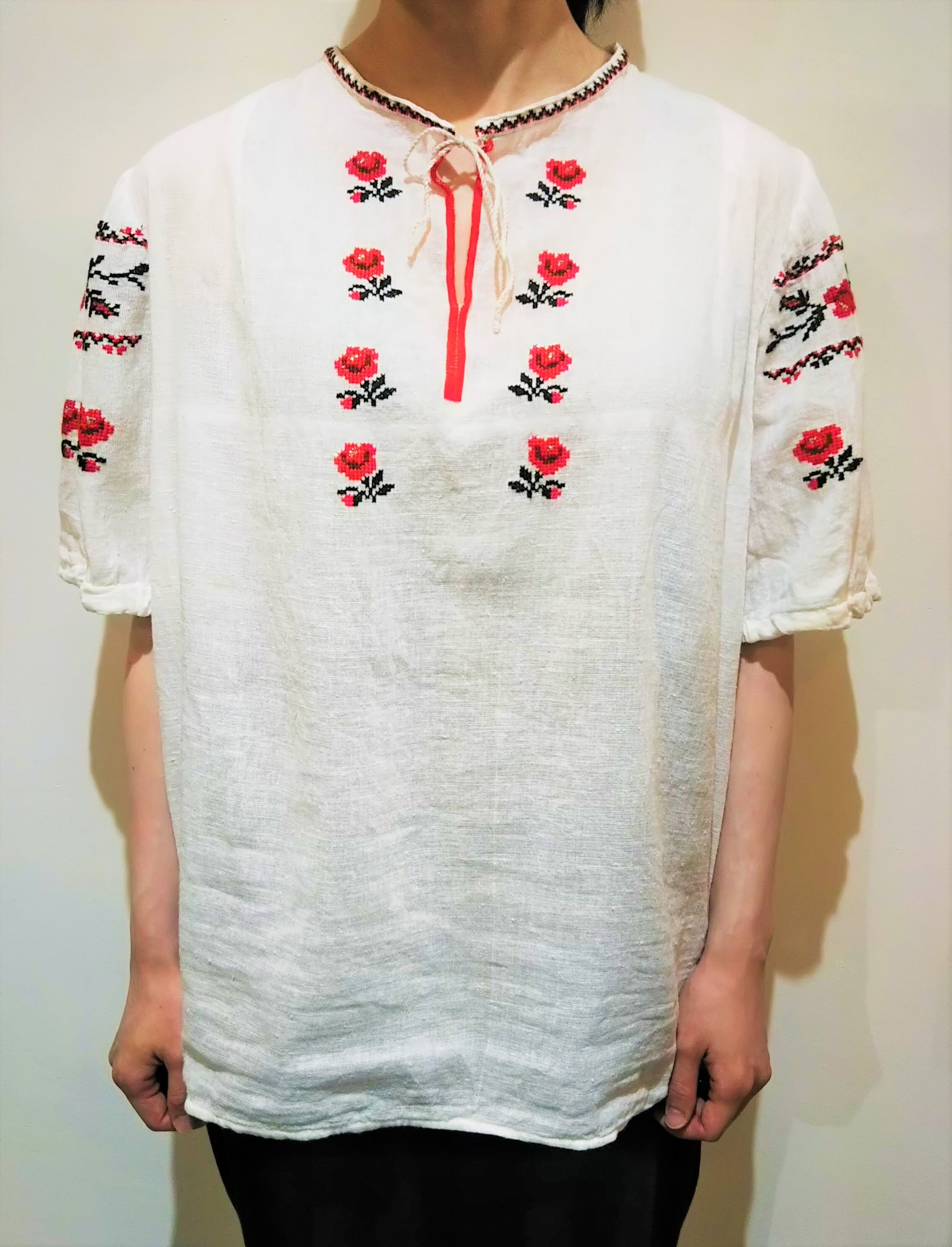 Ukrainian embroidery gauze blouse [U-16]