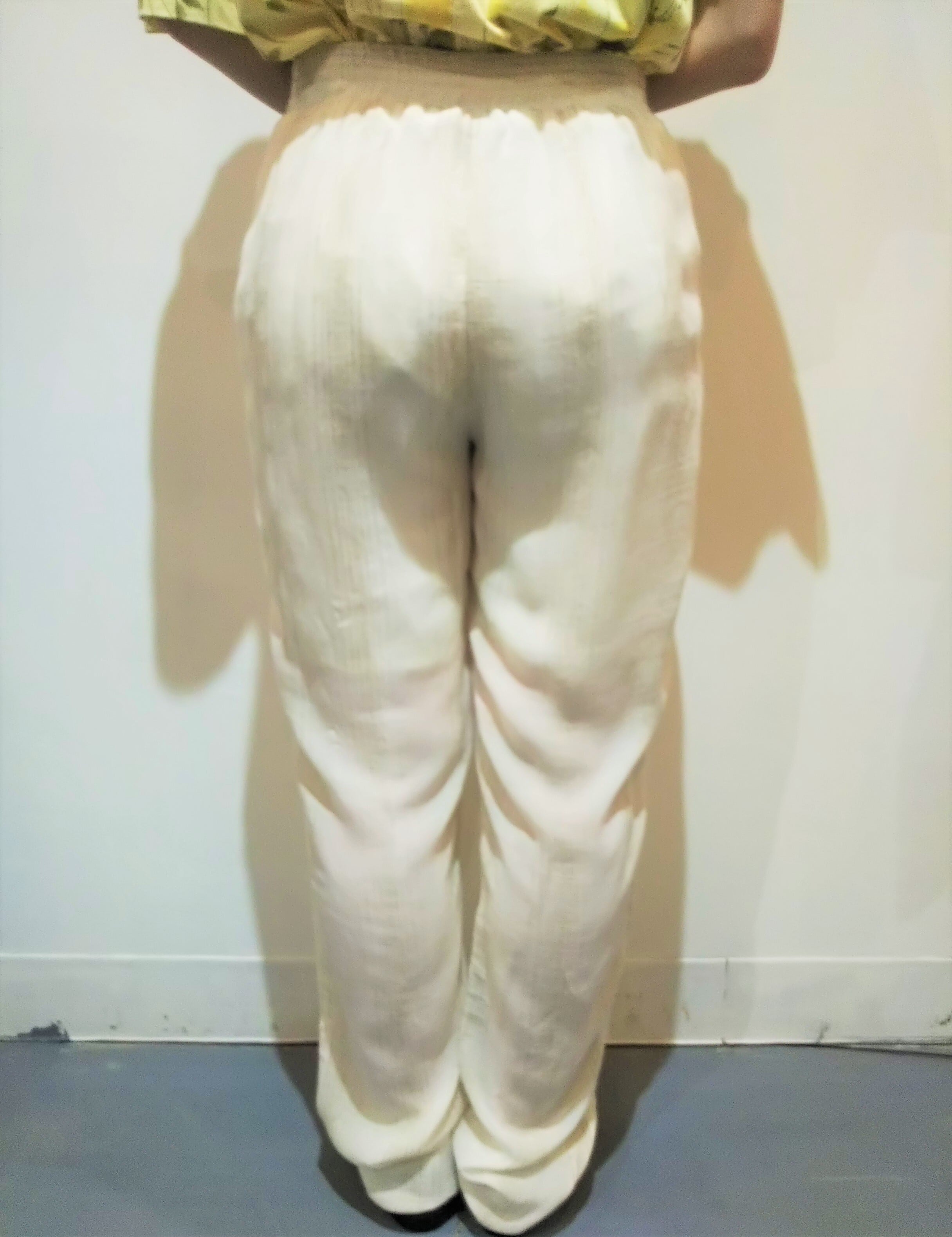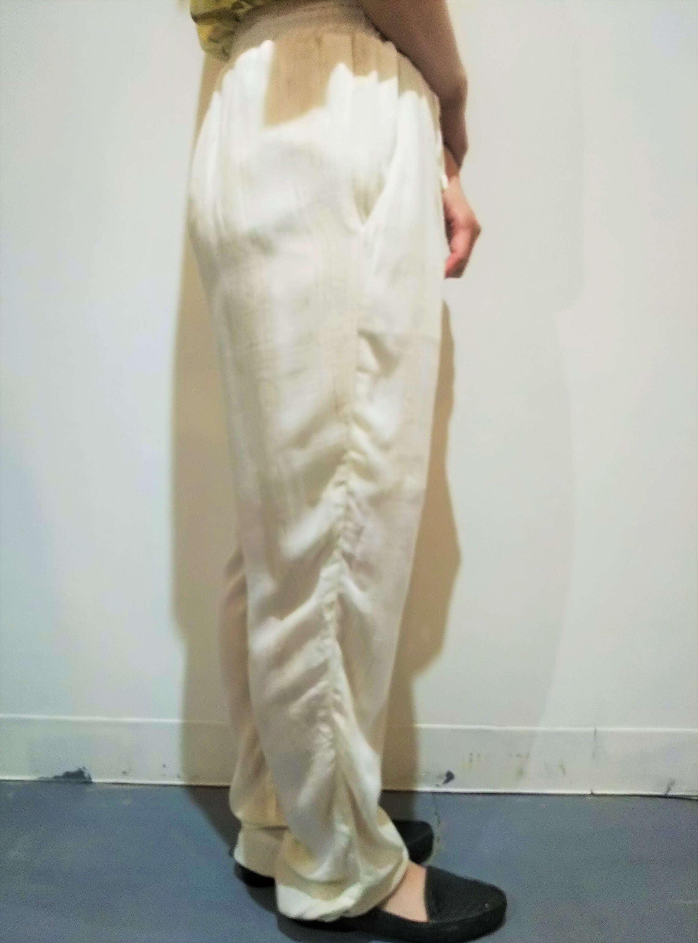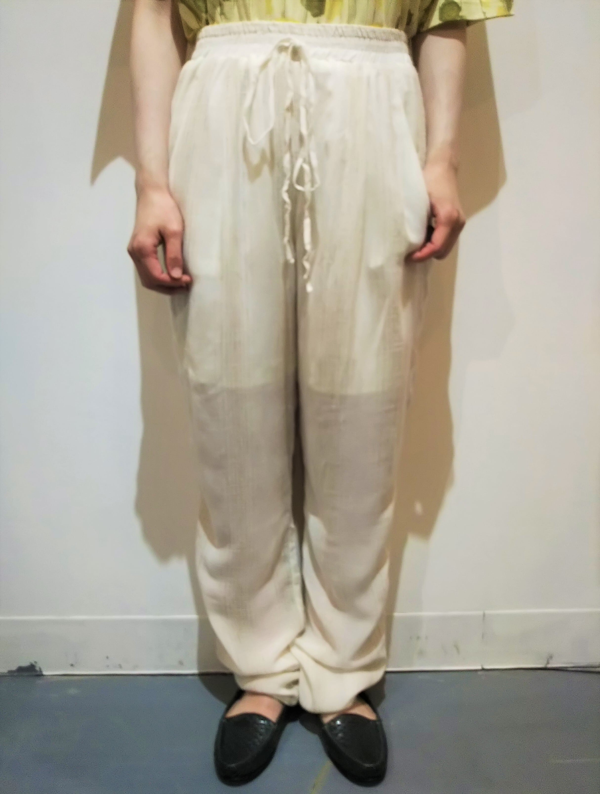 ウエストはゴムで紐は飾りです。