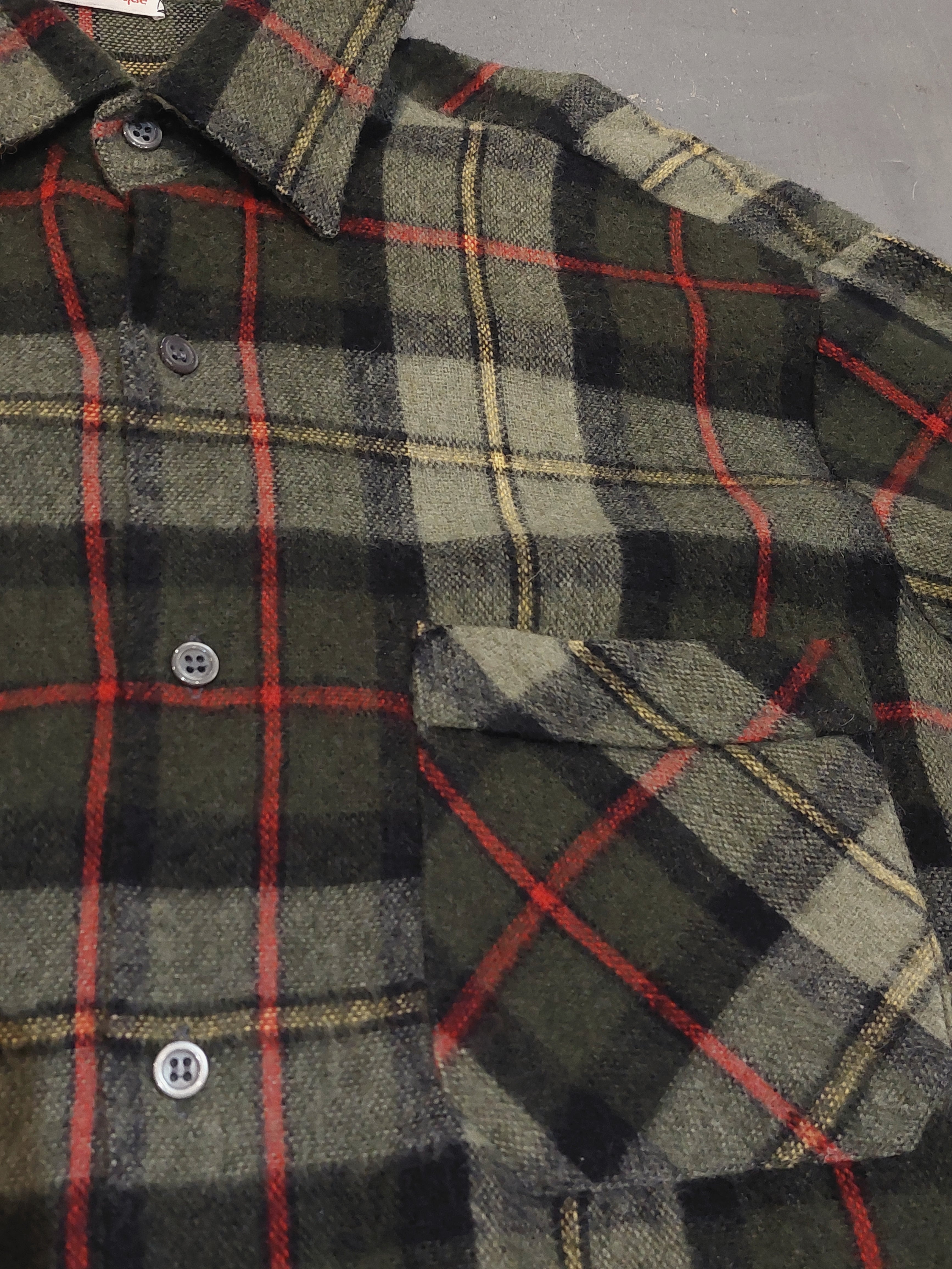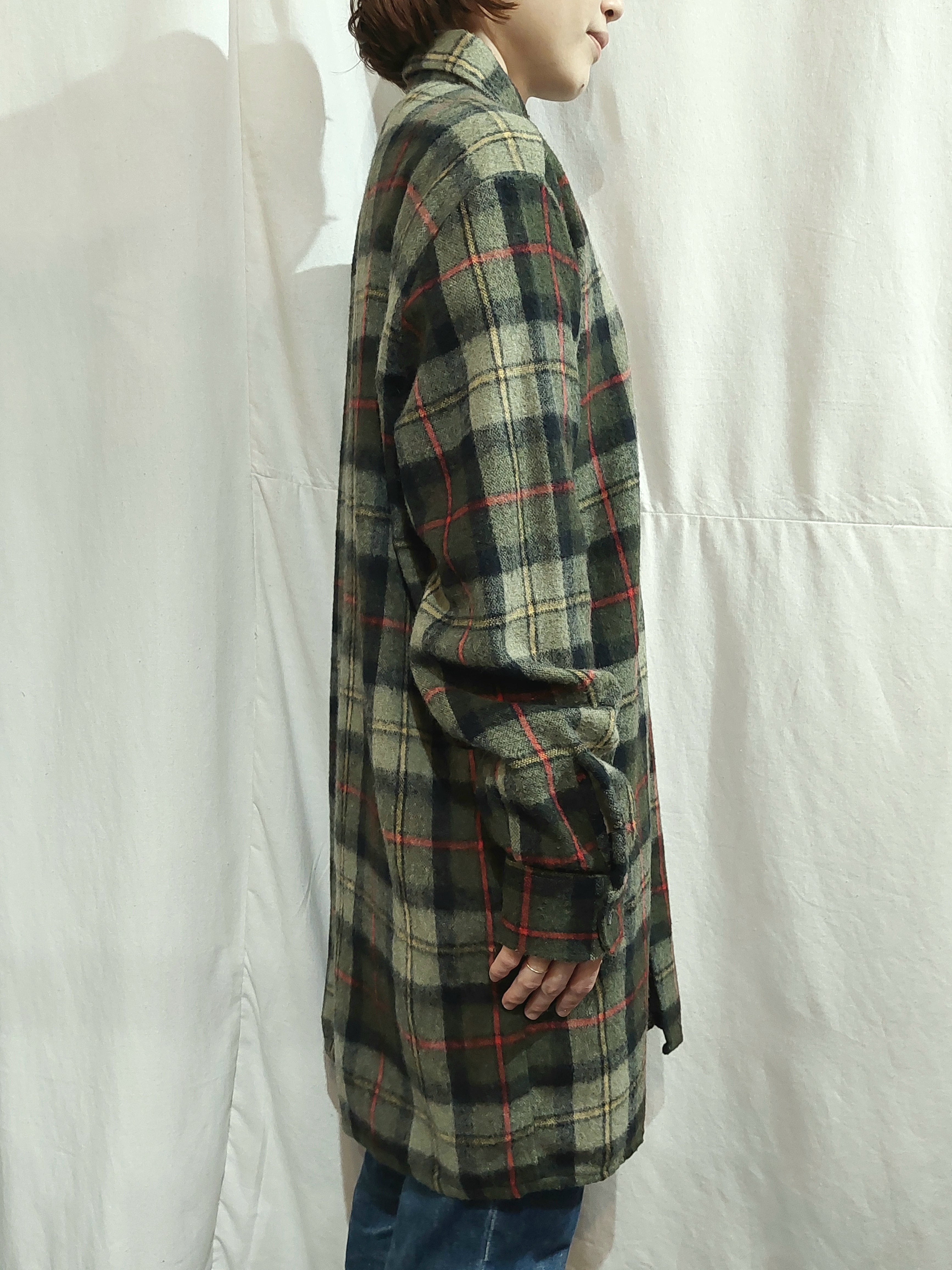 温かみのある起毛素材でグランパシャツのように長めの作りです。