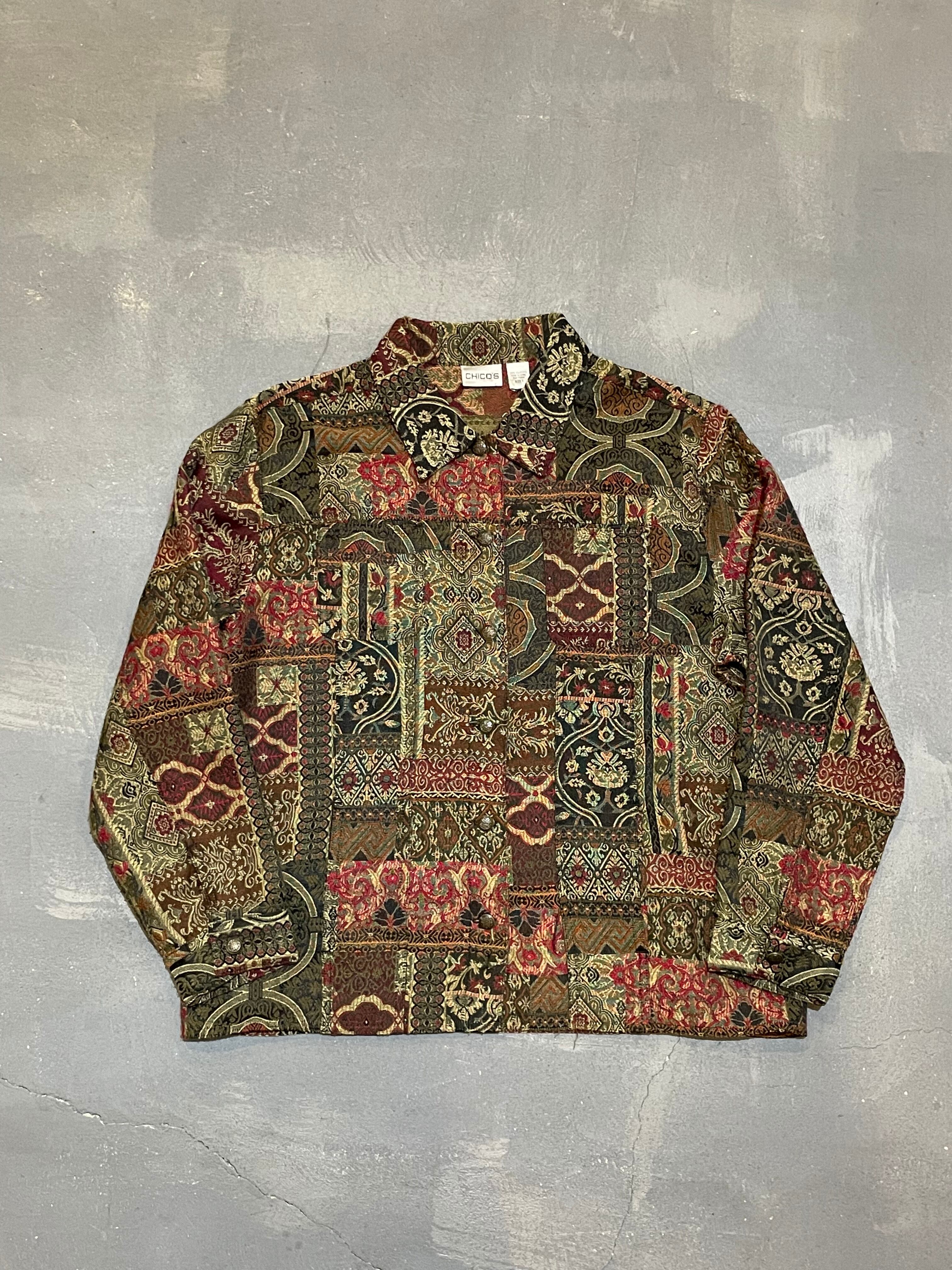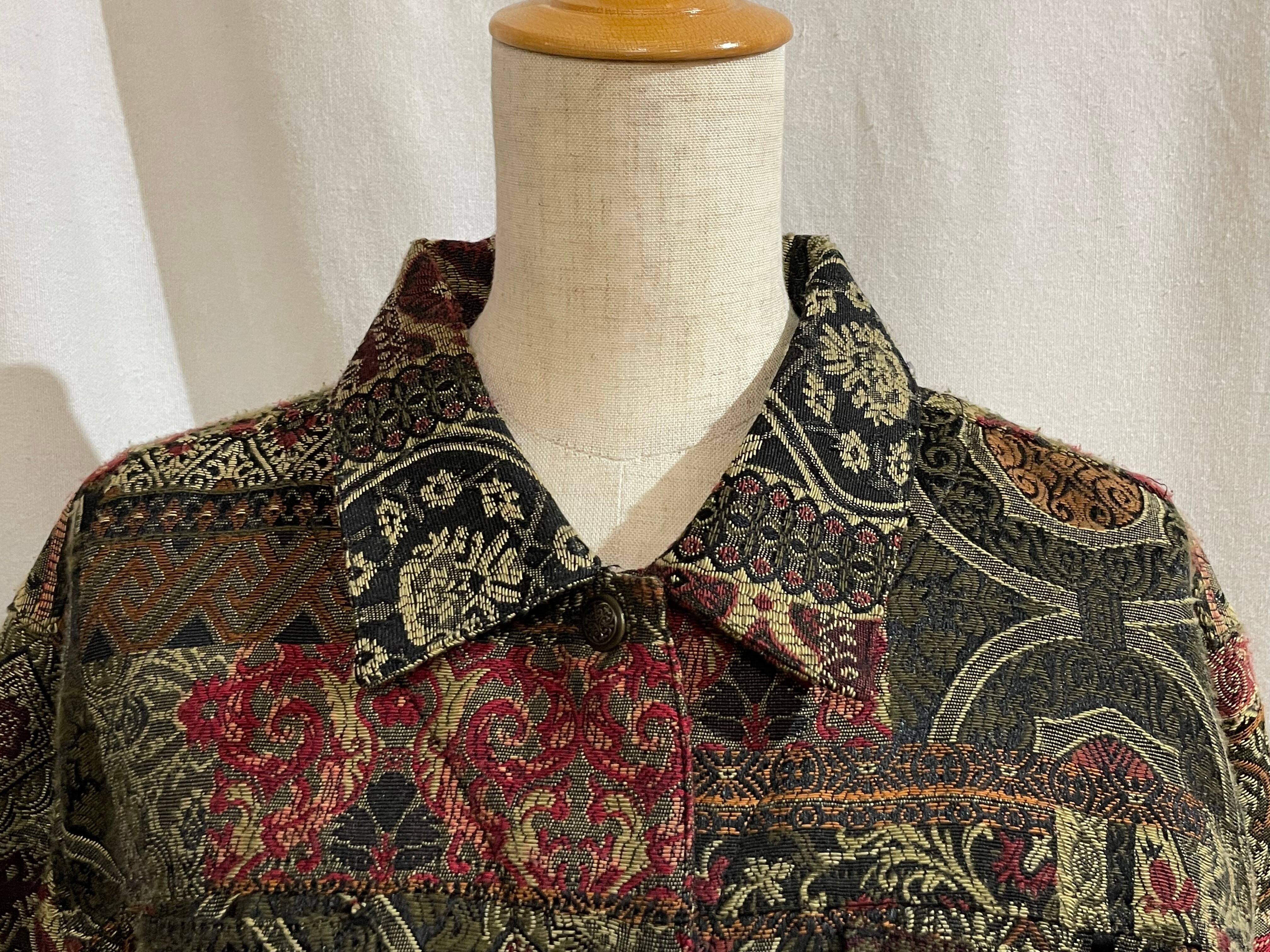 パッチワーク的に様々な柄が合わさった総柄ジャケット