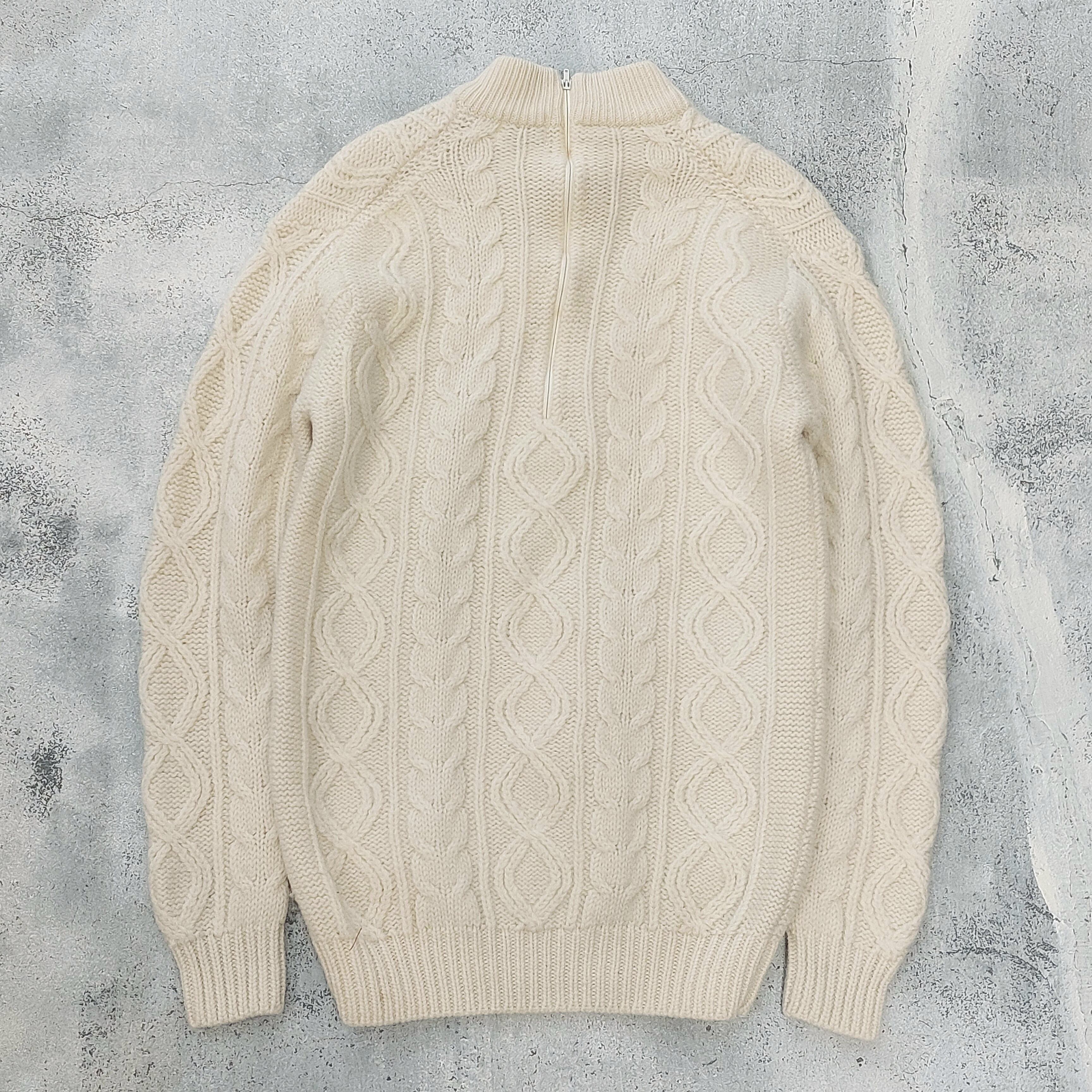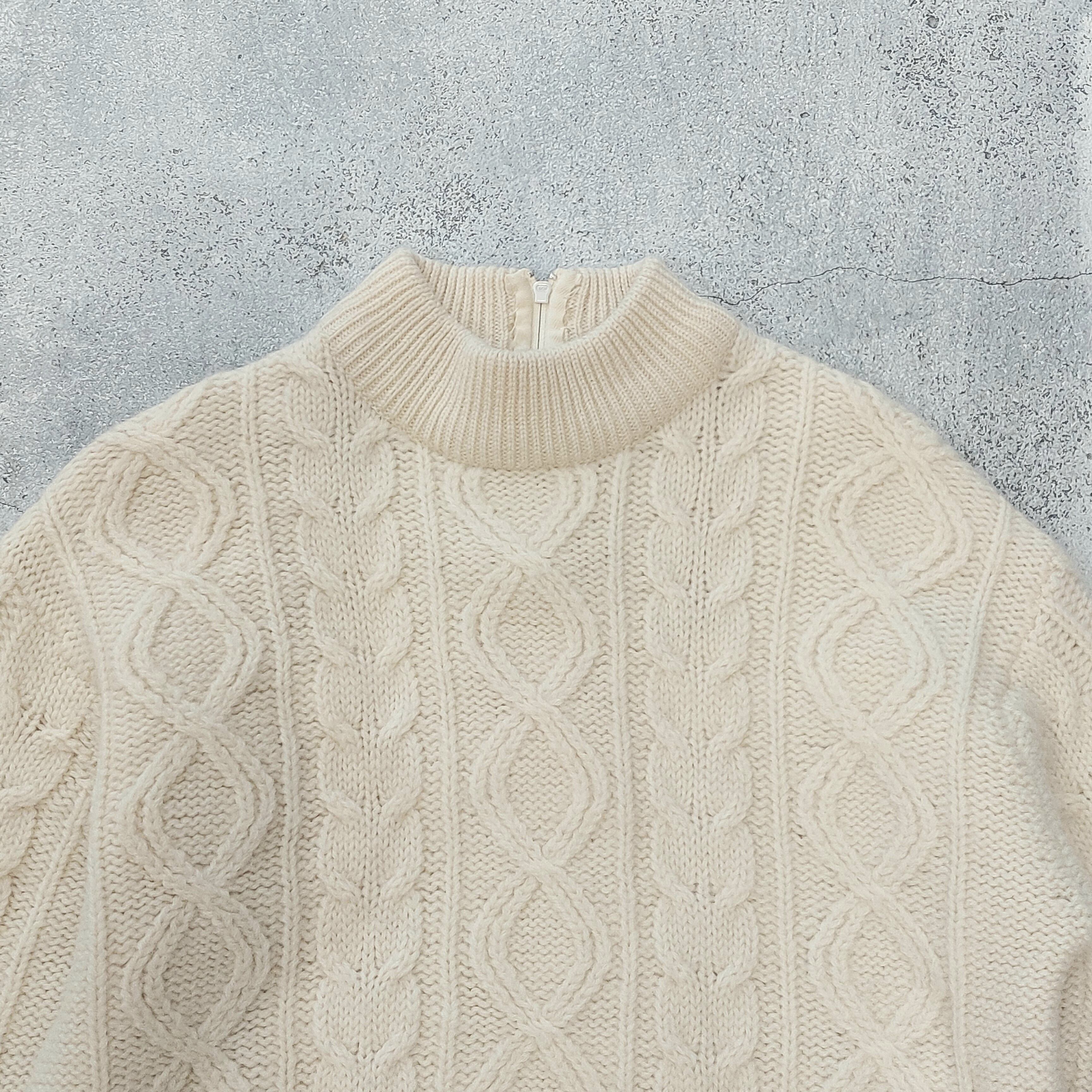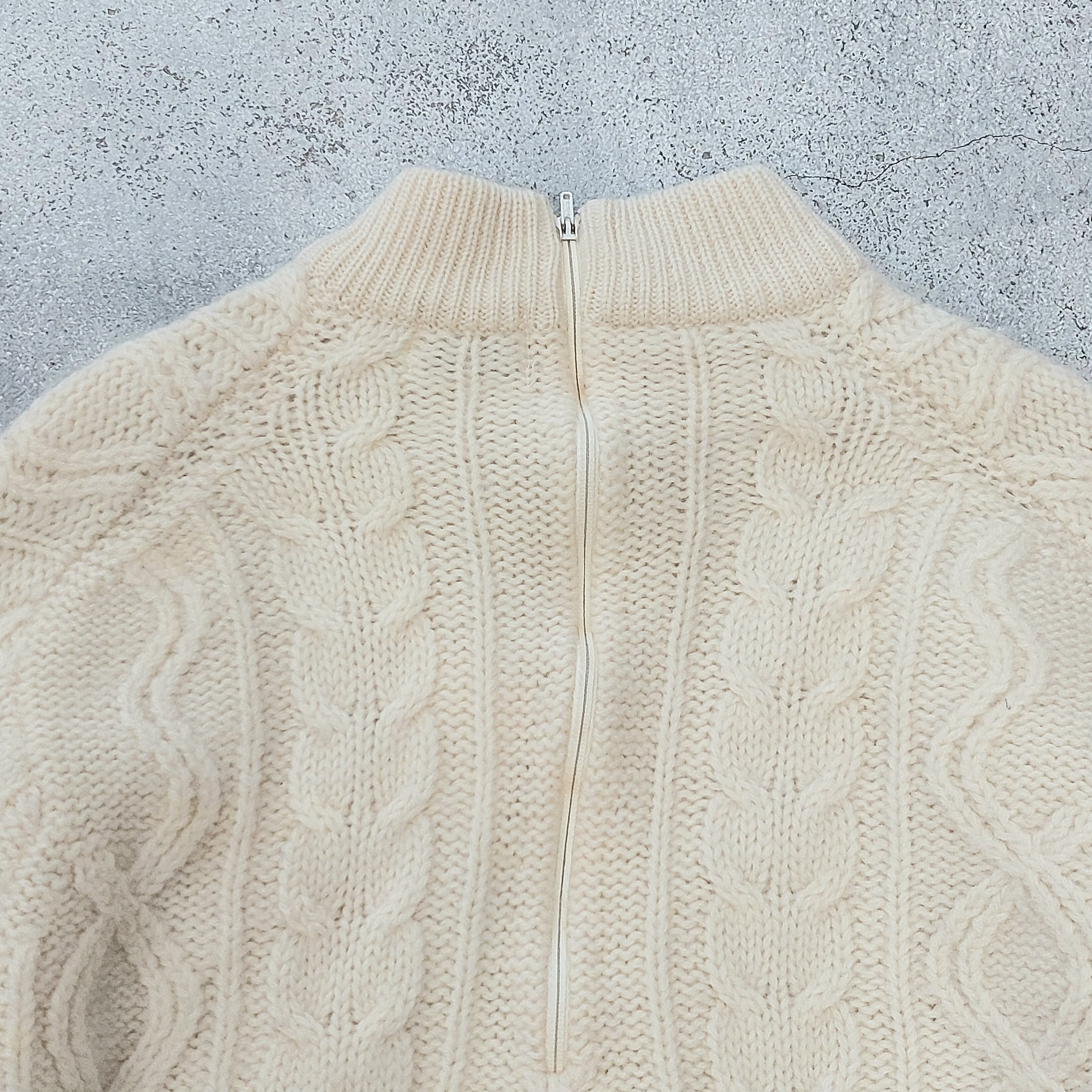 シンプルで使いやすいケーブルニットで、バックジップ付きでインナーを見せても可愛い1枚です。