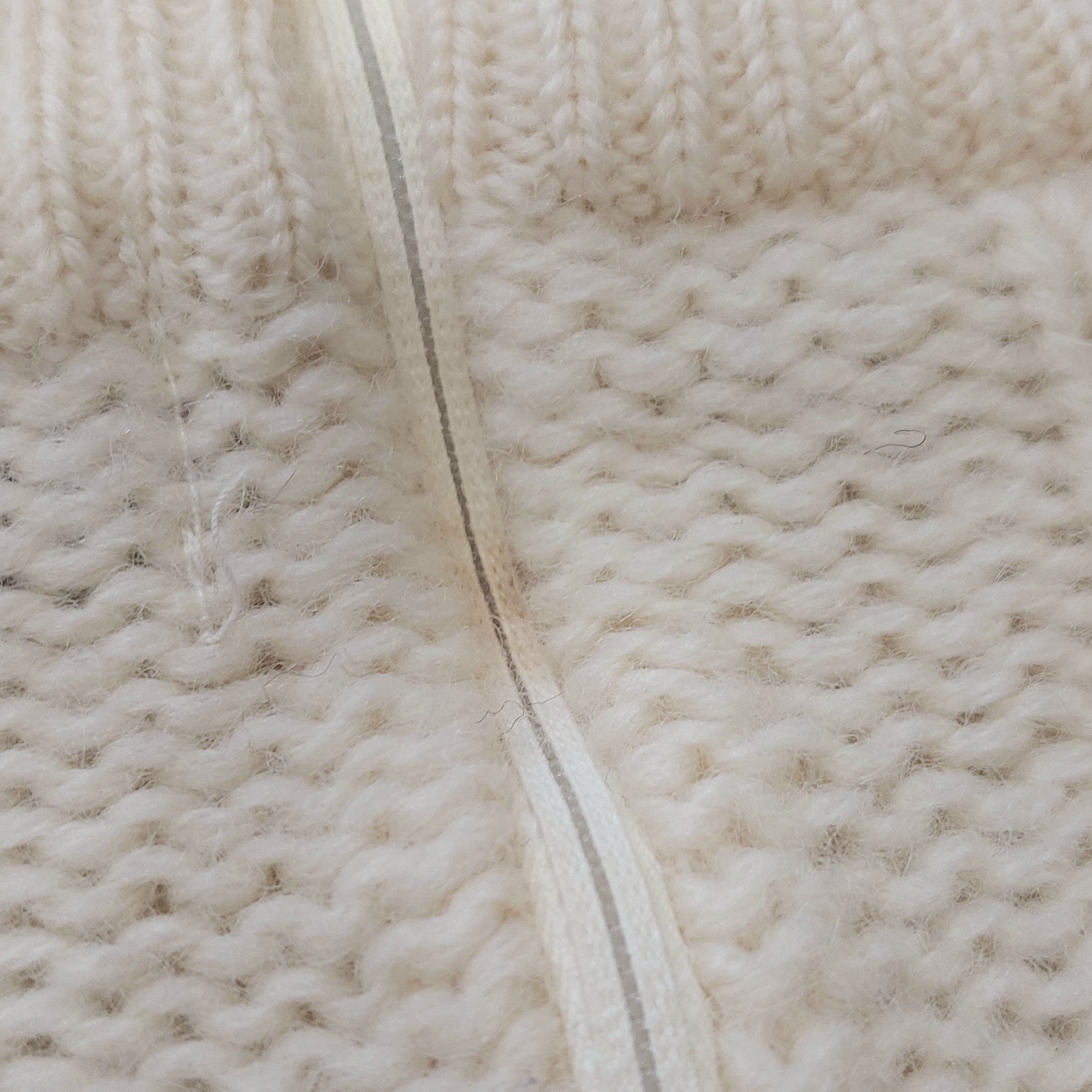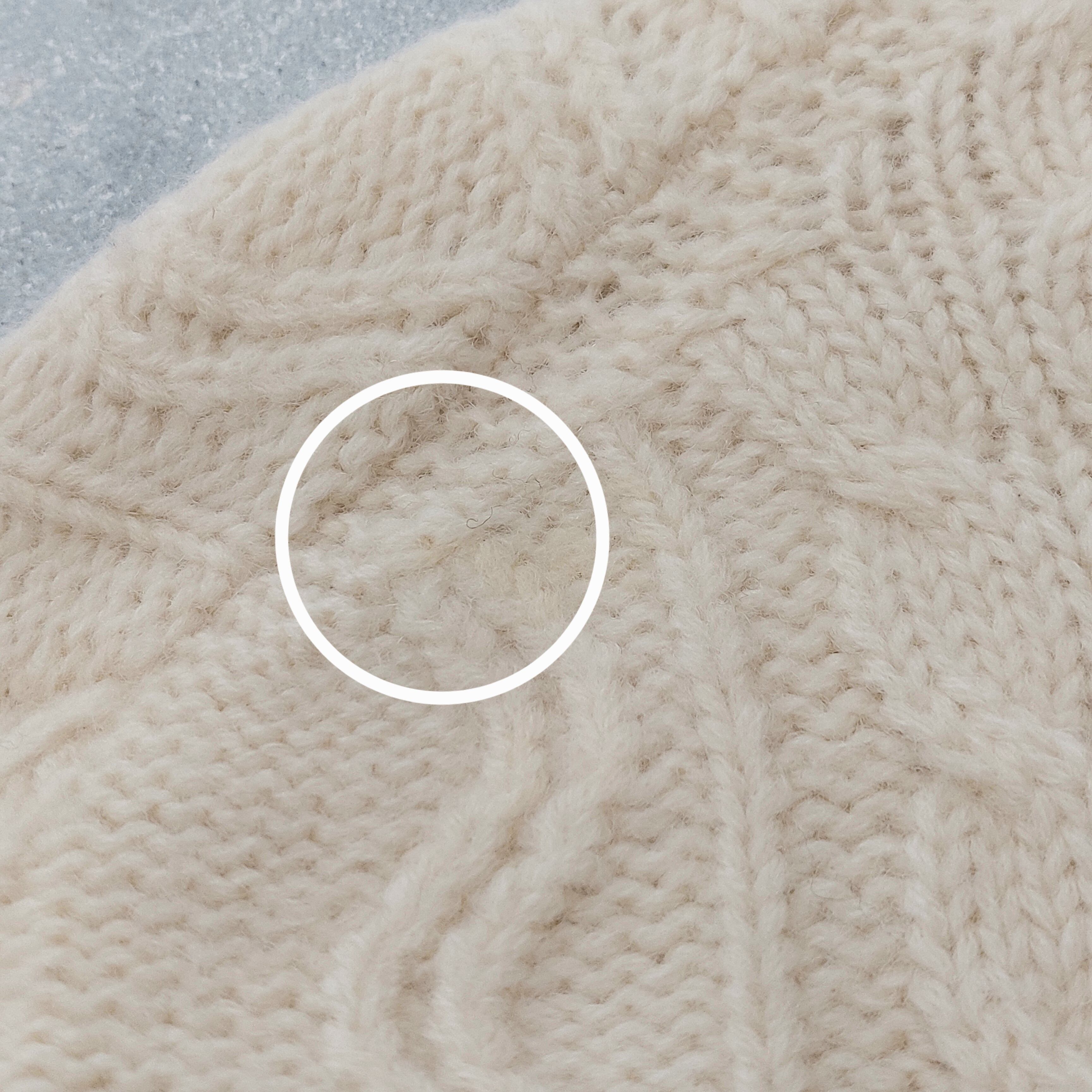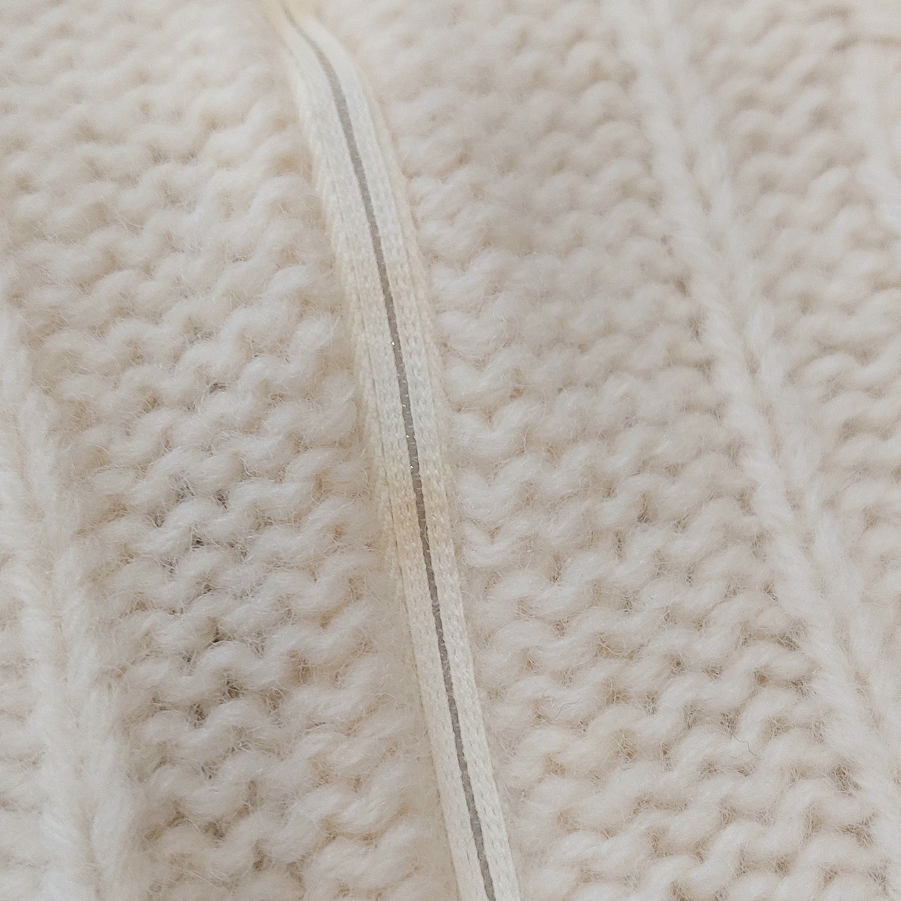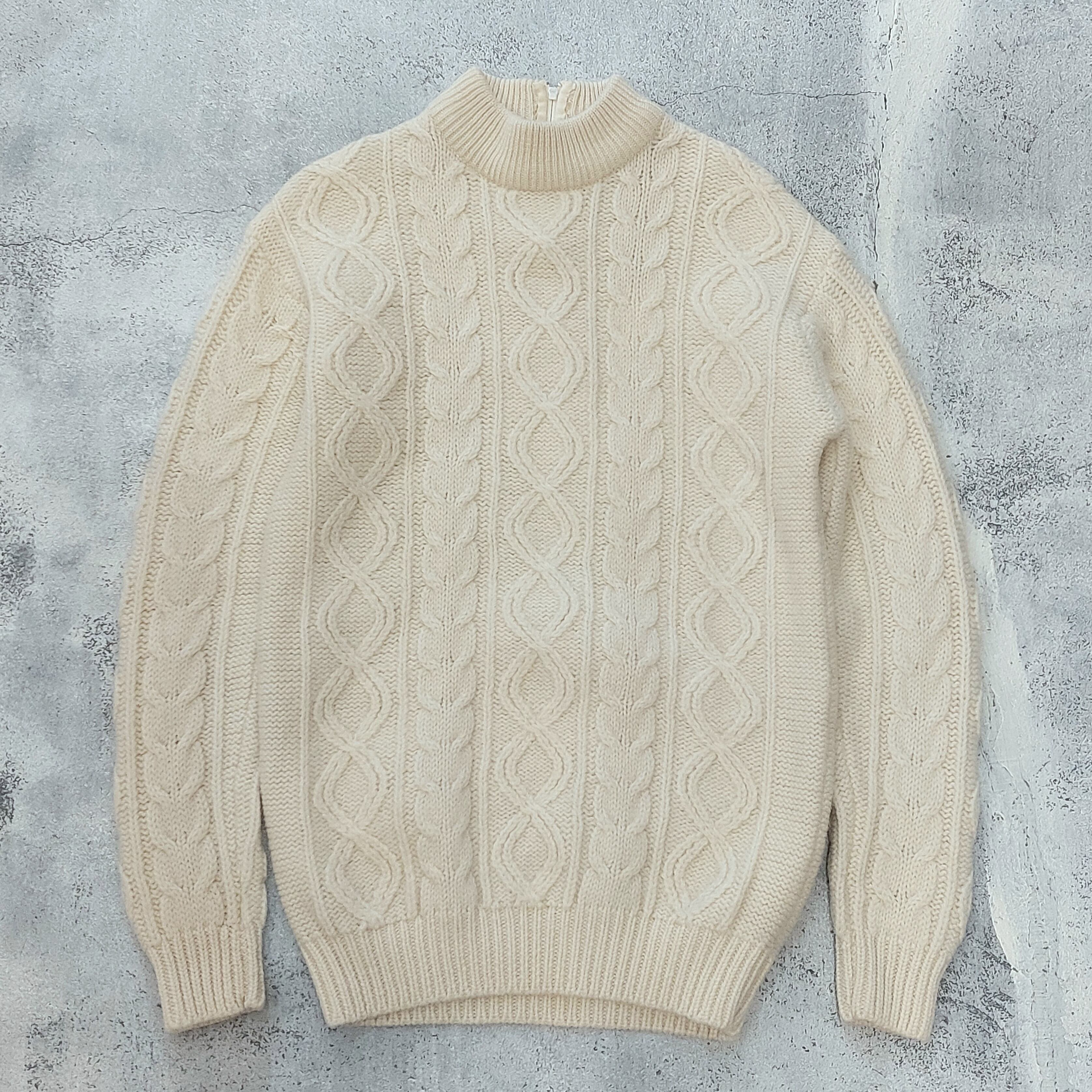 シンプルで使いやすいケーブルニットで、バックジップ付きでインナーを見せても可愛い1枚です。