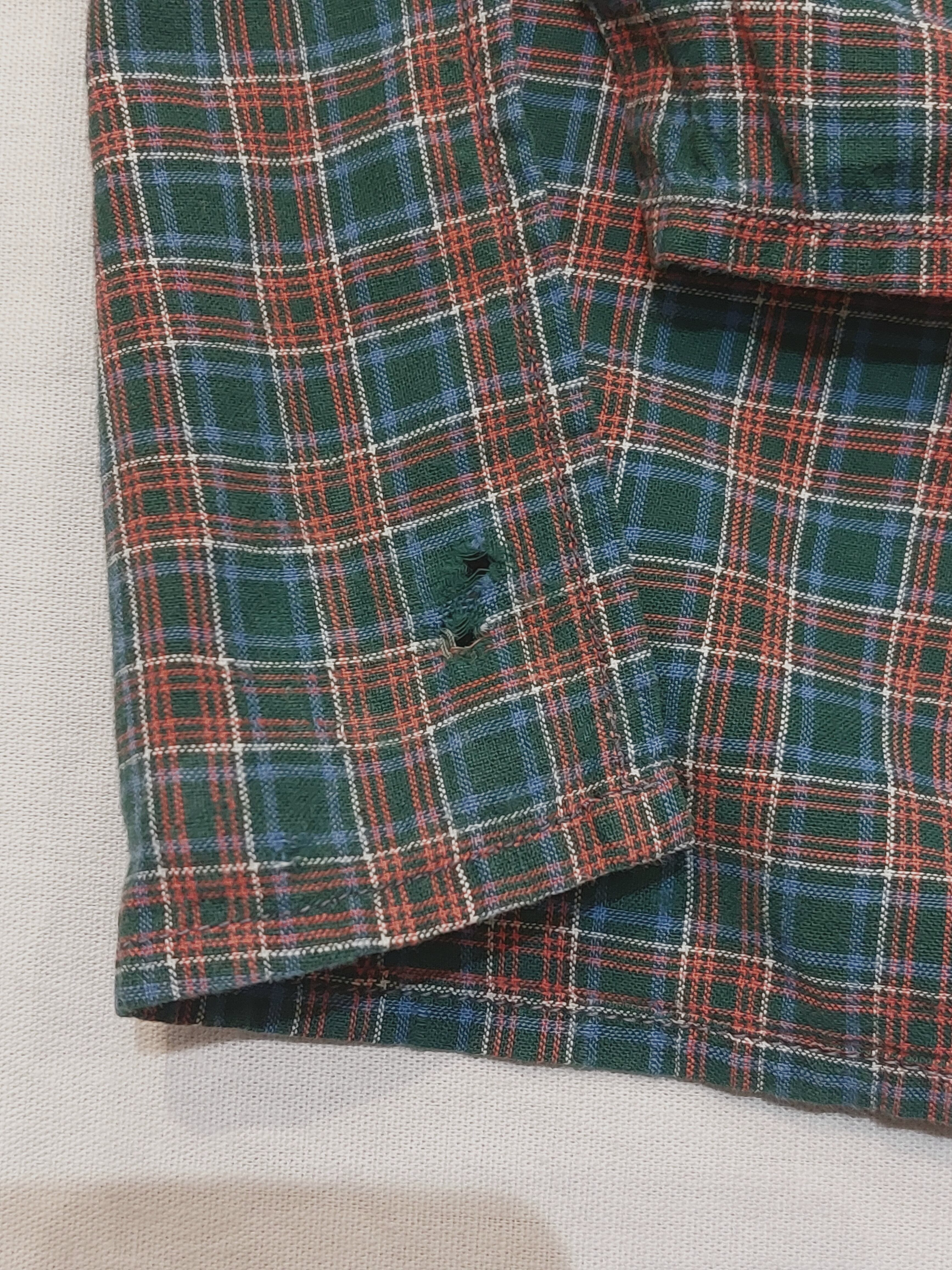 状態:左の襟付け根付近にリペア跡があります。右脇後ろ裾付近に穴があります。