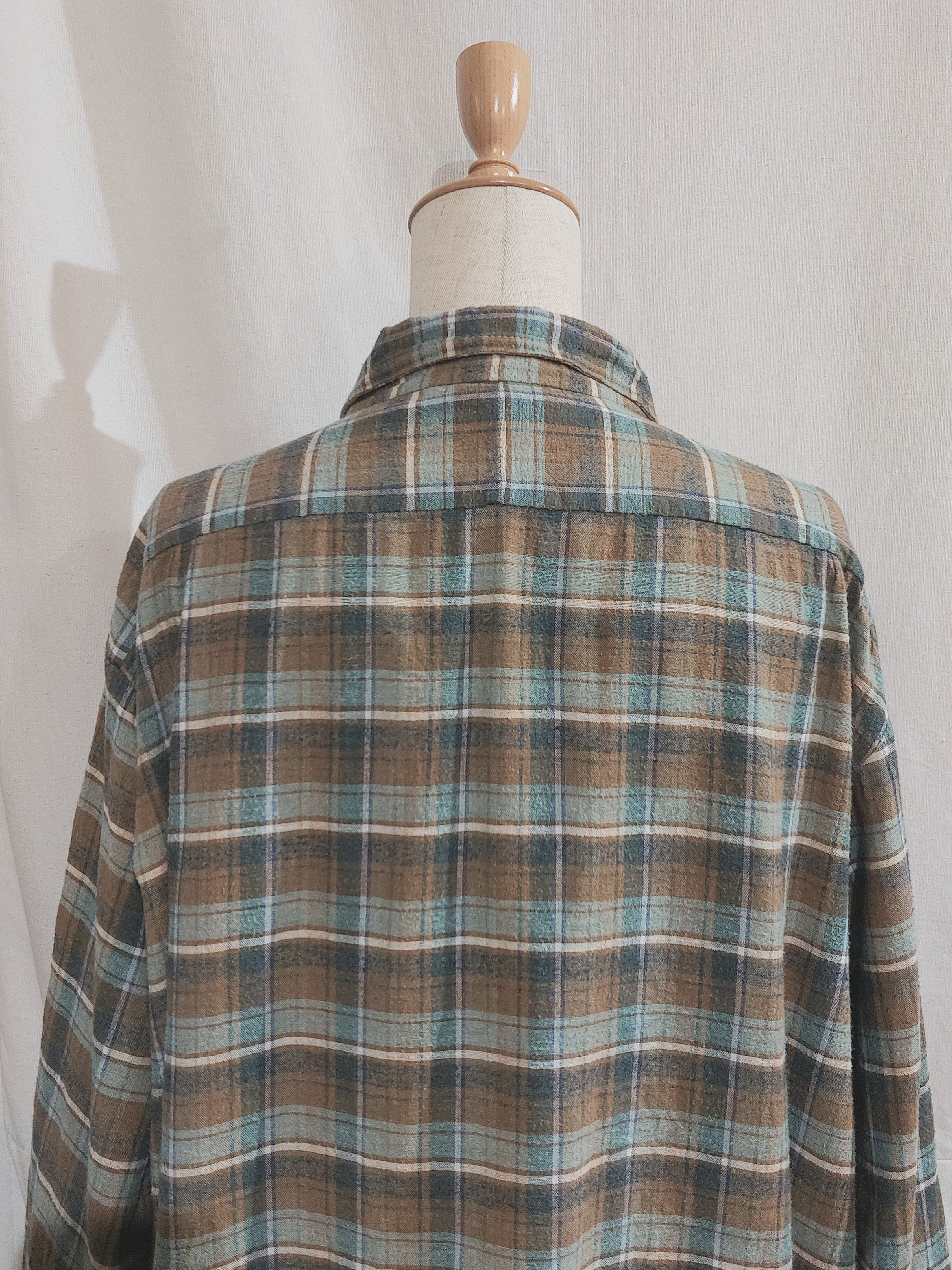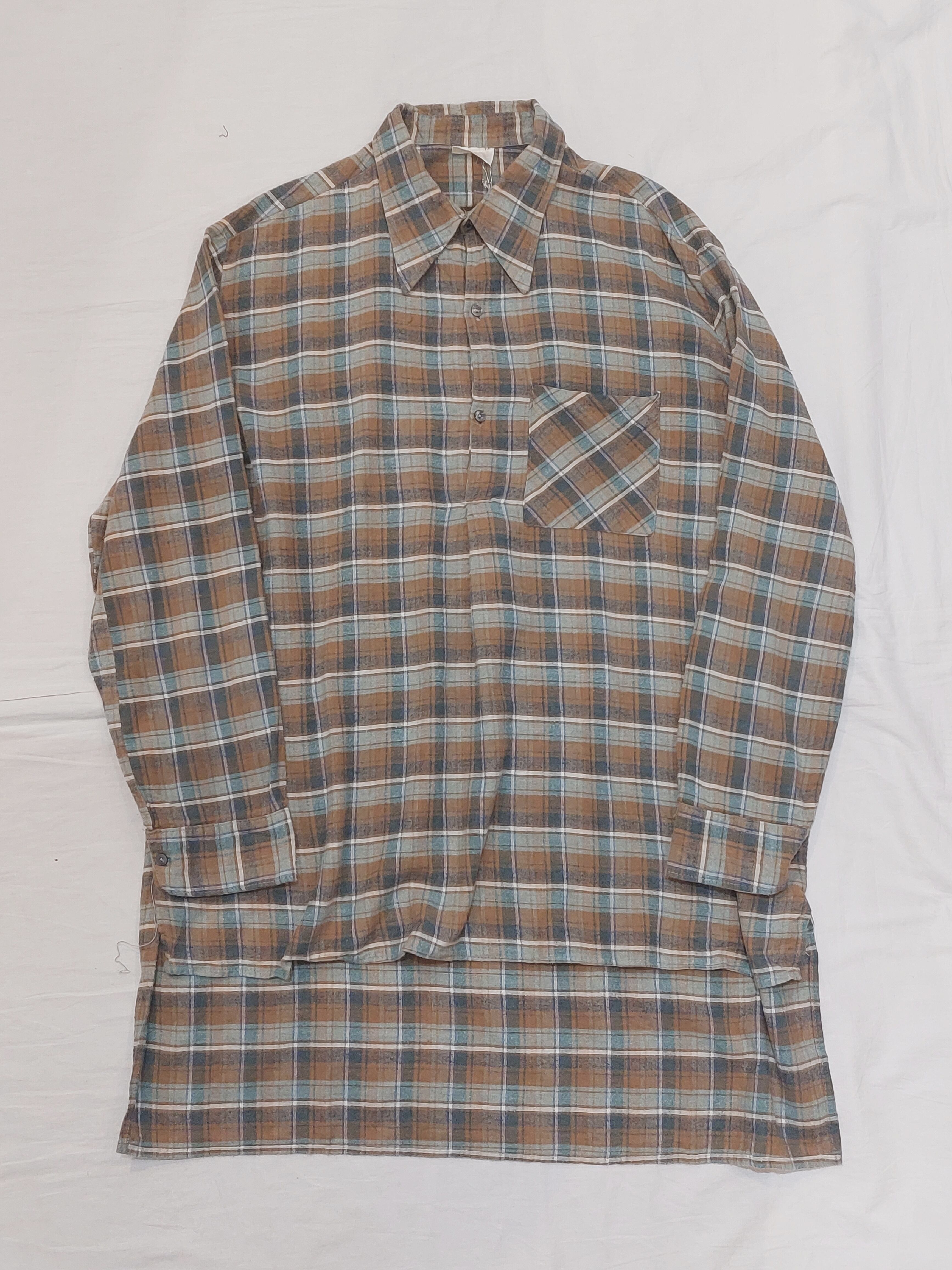 ヴィンテージの淡い色合いのチェックグランパシャツです。