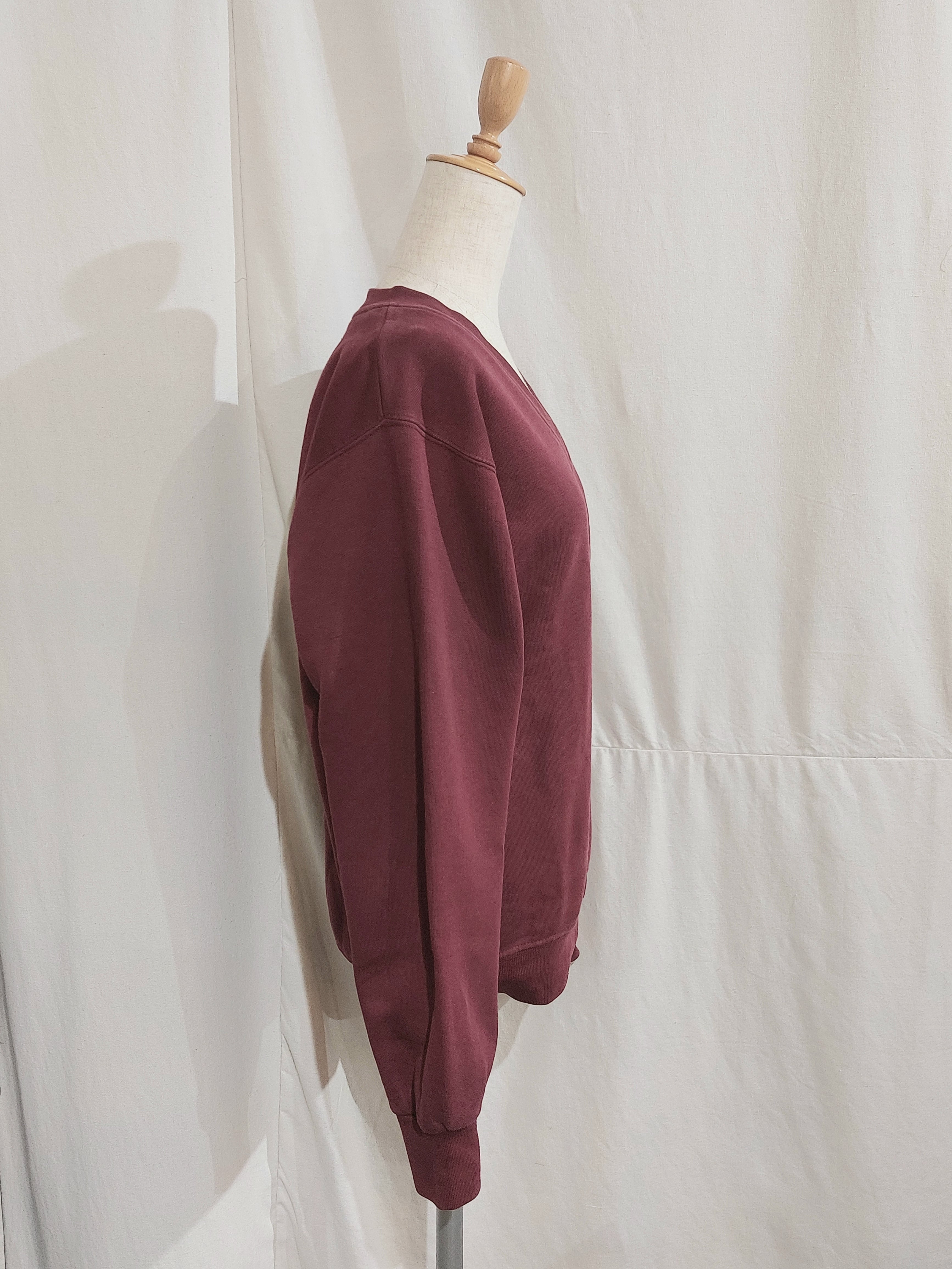 左胸にワンポイント刺繍があしらわれたVネックスウェットです。