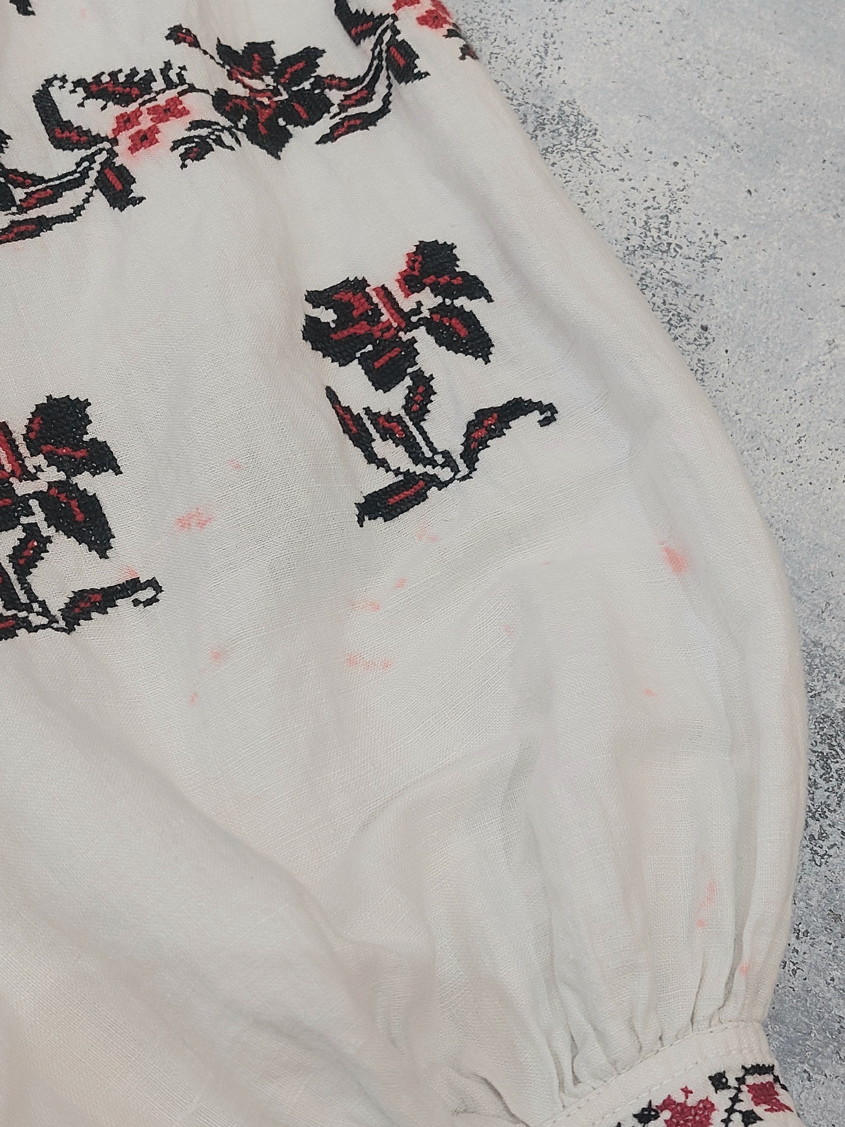 状態:全体的に汚れ、刺繍糸の色落ちがあります。