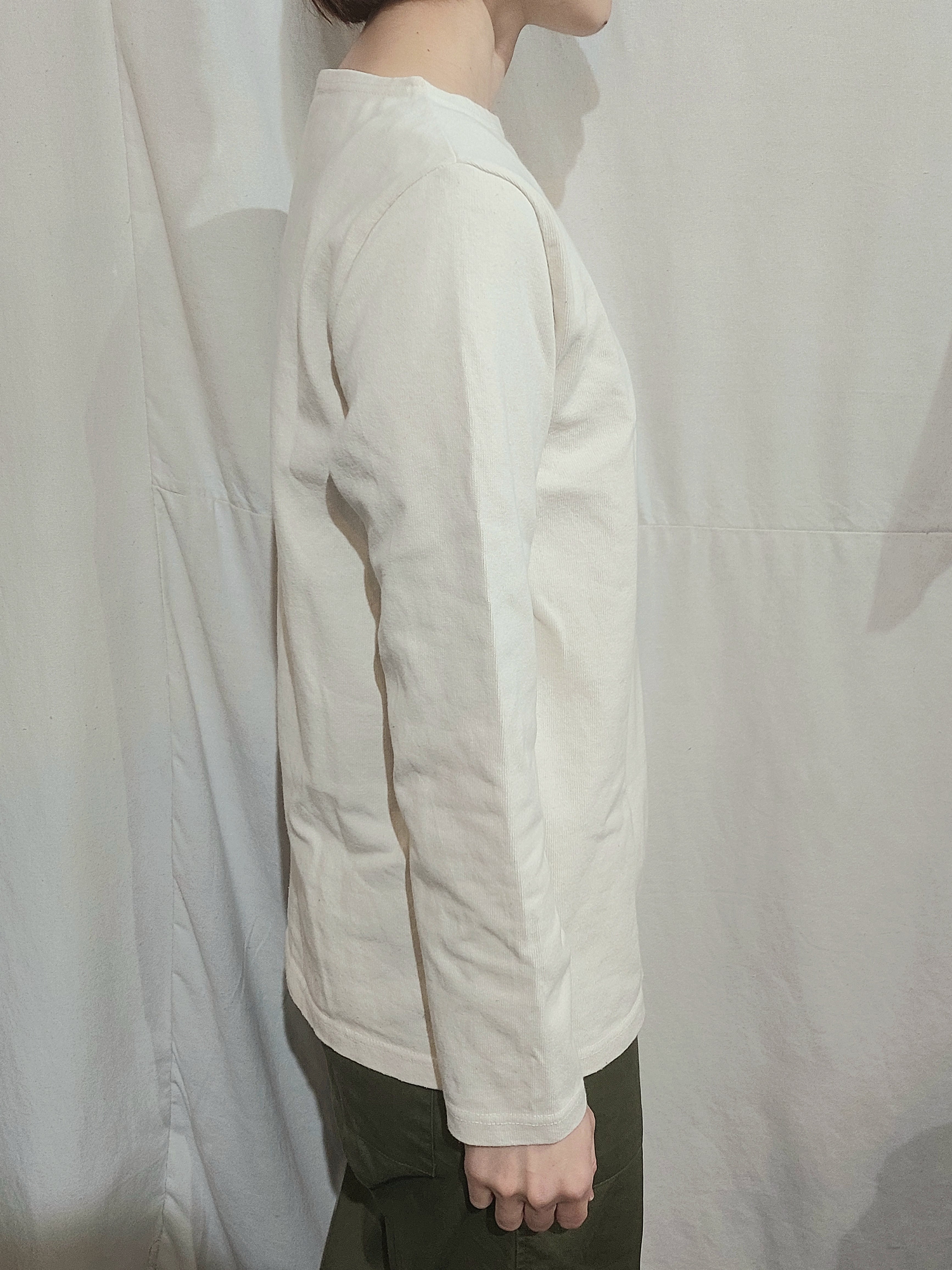 無地のアイボリーでインナーとしても合わせていただきやすいです。