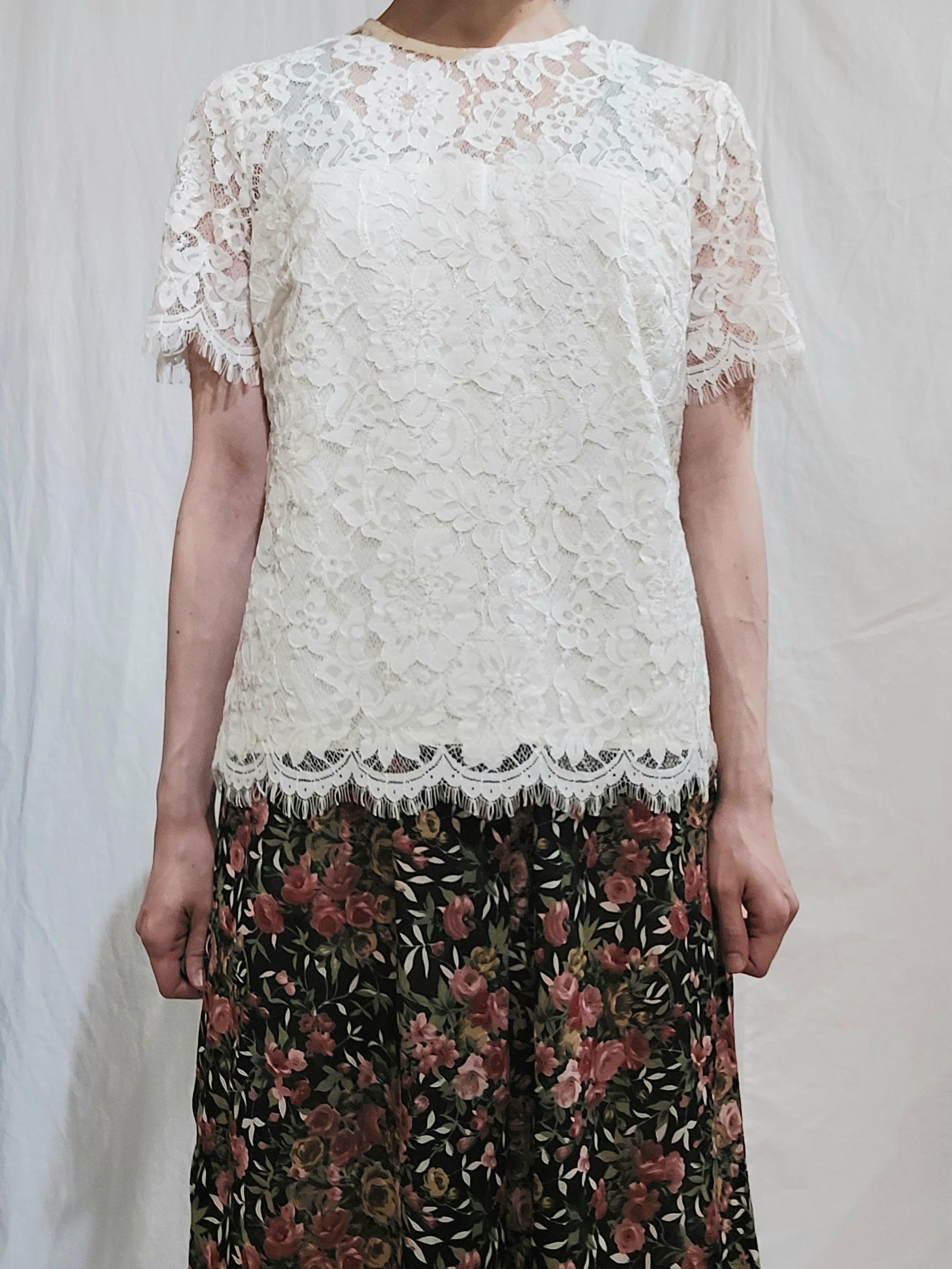 イタリア製NARACAMICIEの総レースプルオーバーブラウスです。