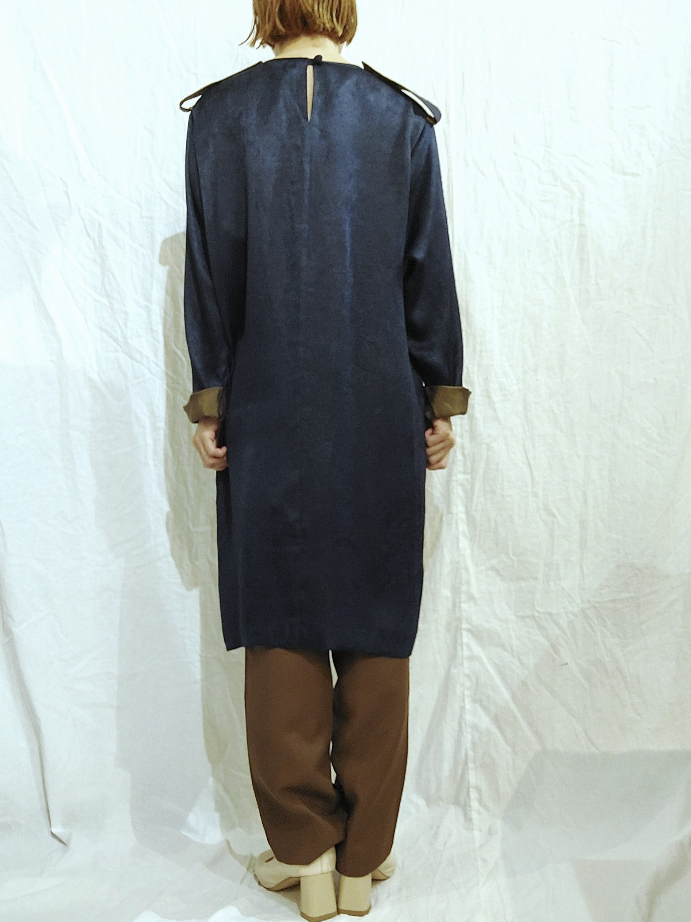 光沢感のある生地感と胸にあしらわれた刺繍が素敵なドレスです。