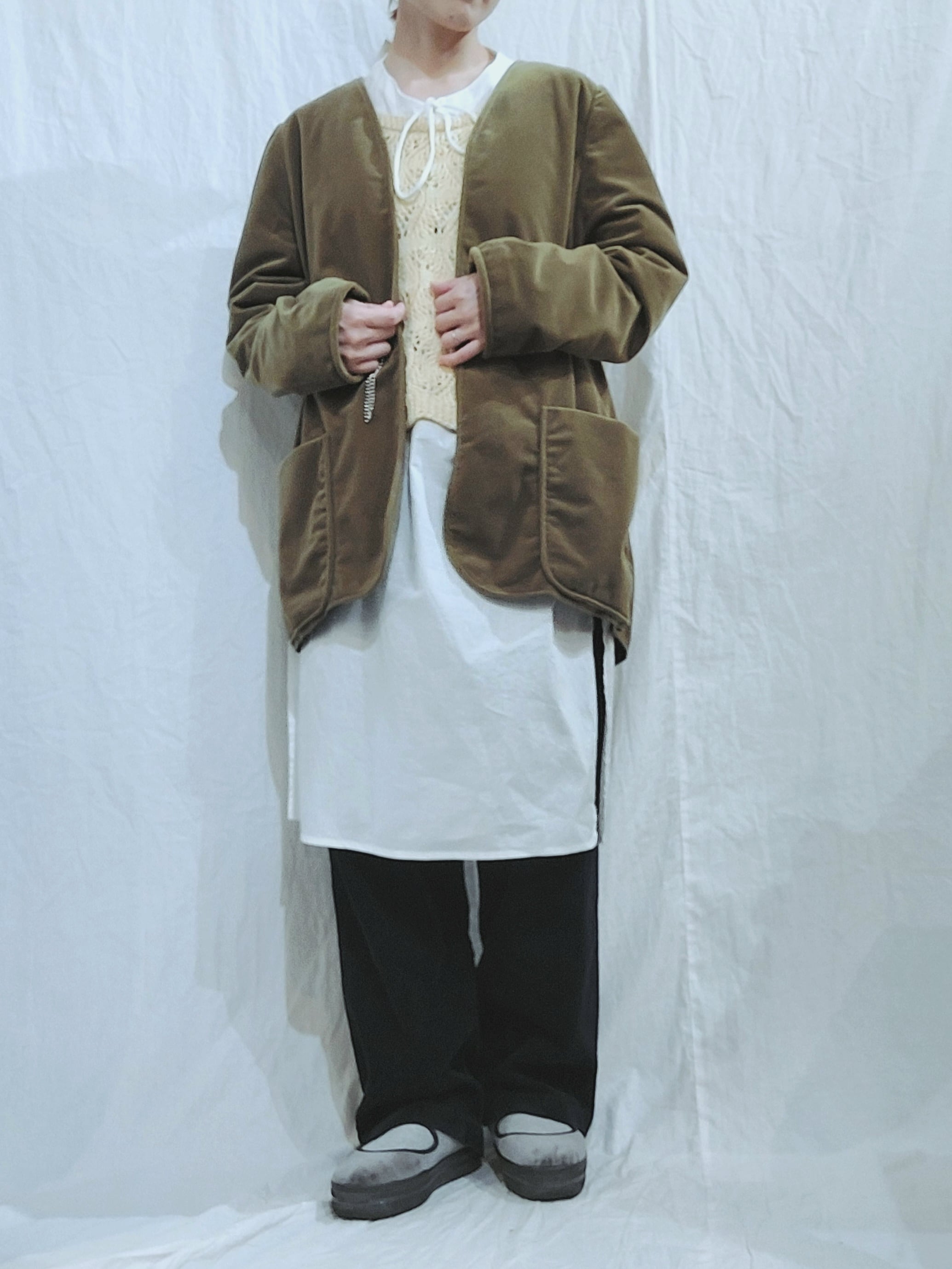 Velour no collar jacket[m-318]ベロア ノーカラージャケット