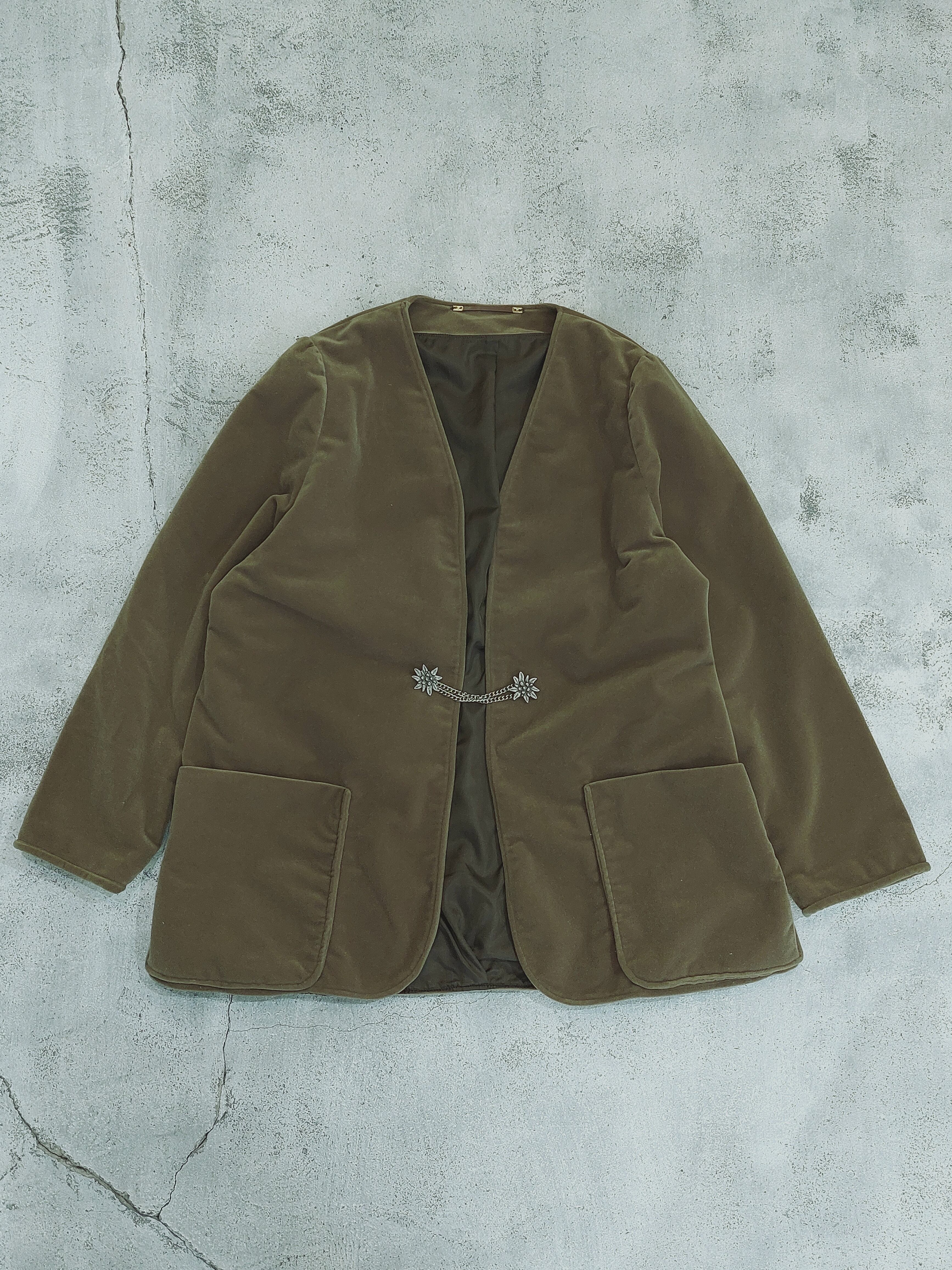 チロルデザインのベロアノーカラージャケットです。