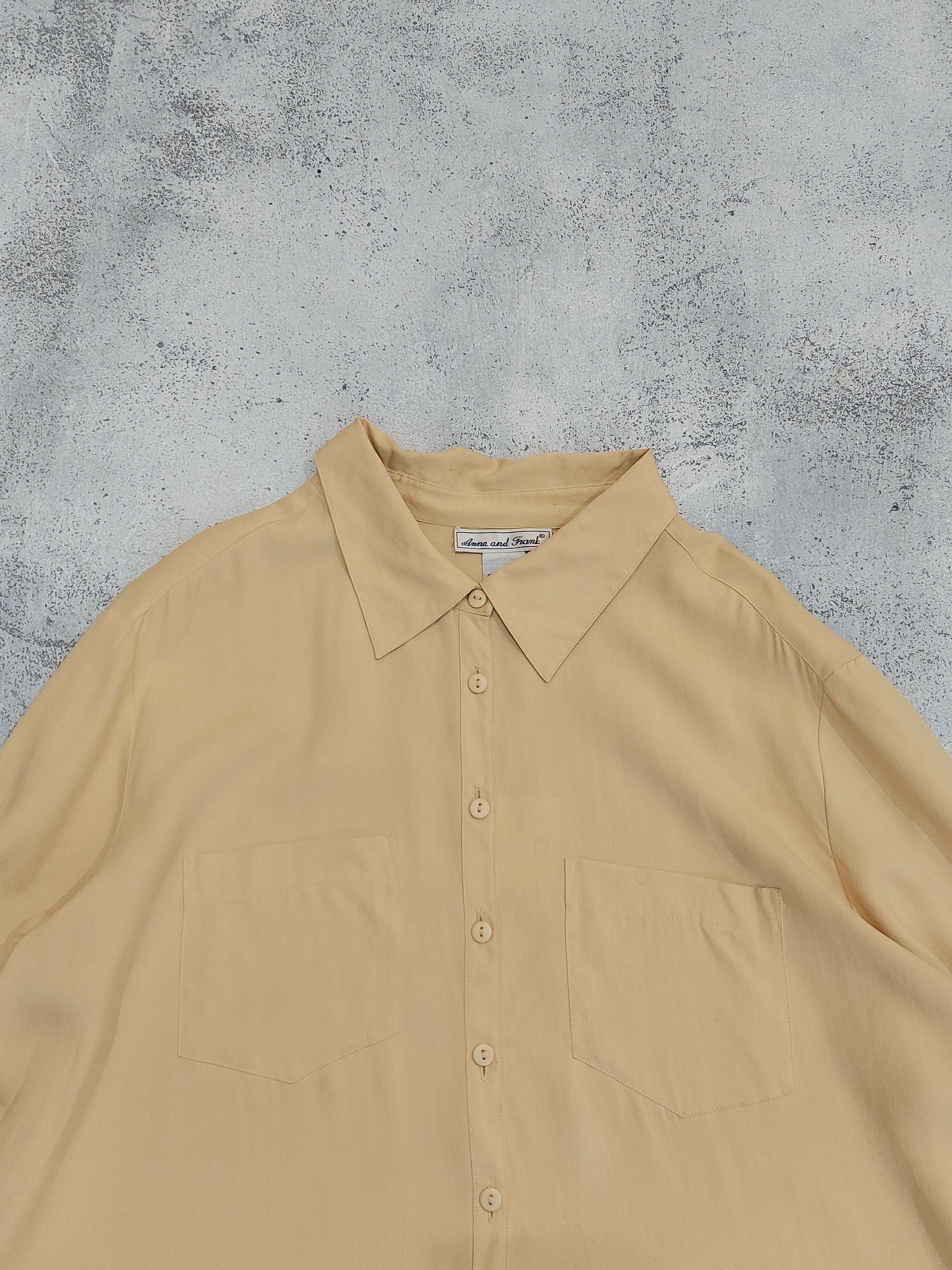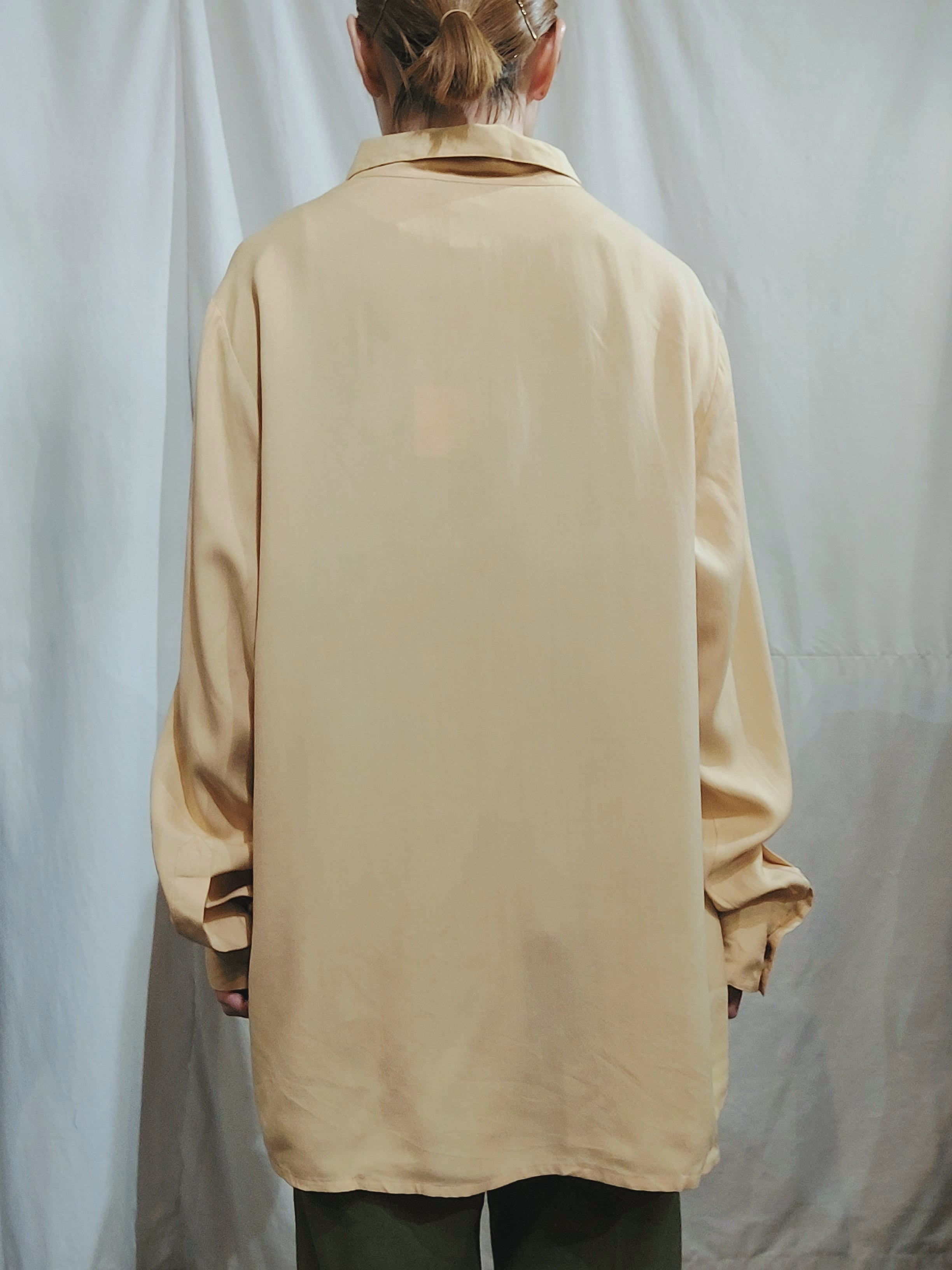 シンプルなデザインで飽きが来ないシルクシャツです。