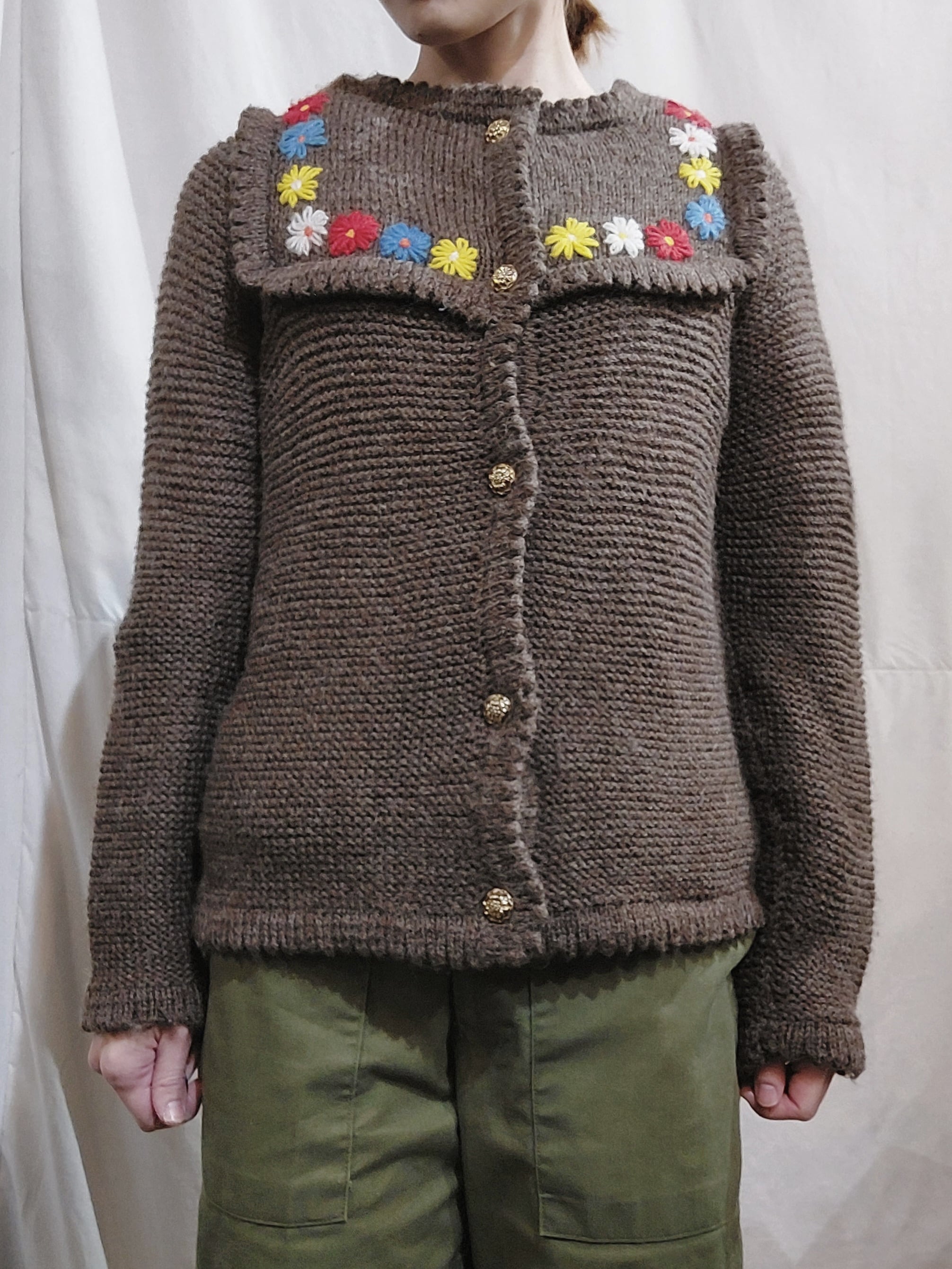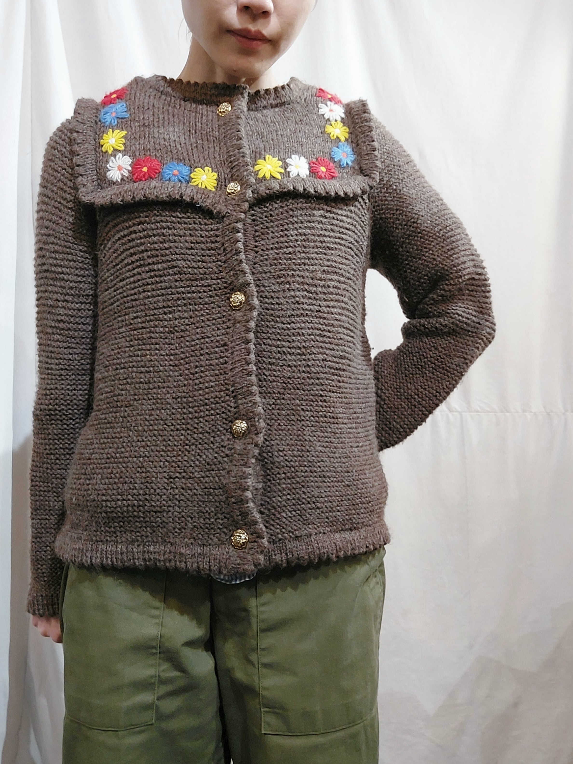 Flower embroidery knit cardigan[k-629]花刺繍ニットカーディガン