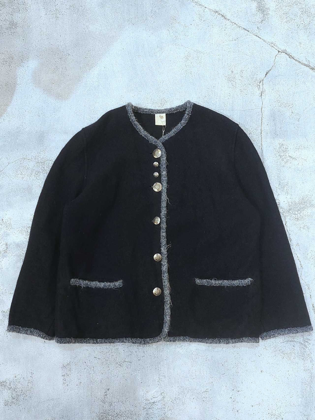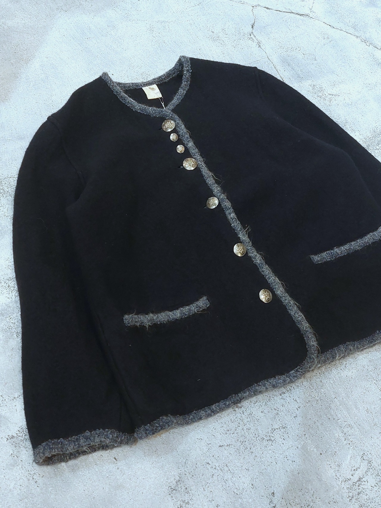 パイピングデザインがアクセントになった、ボイルドウールチロルジャケットです。