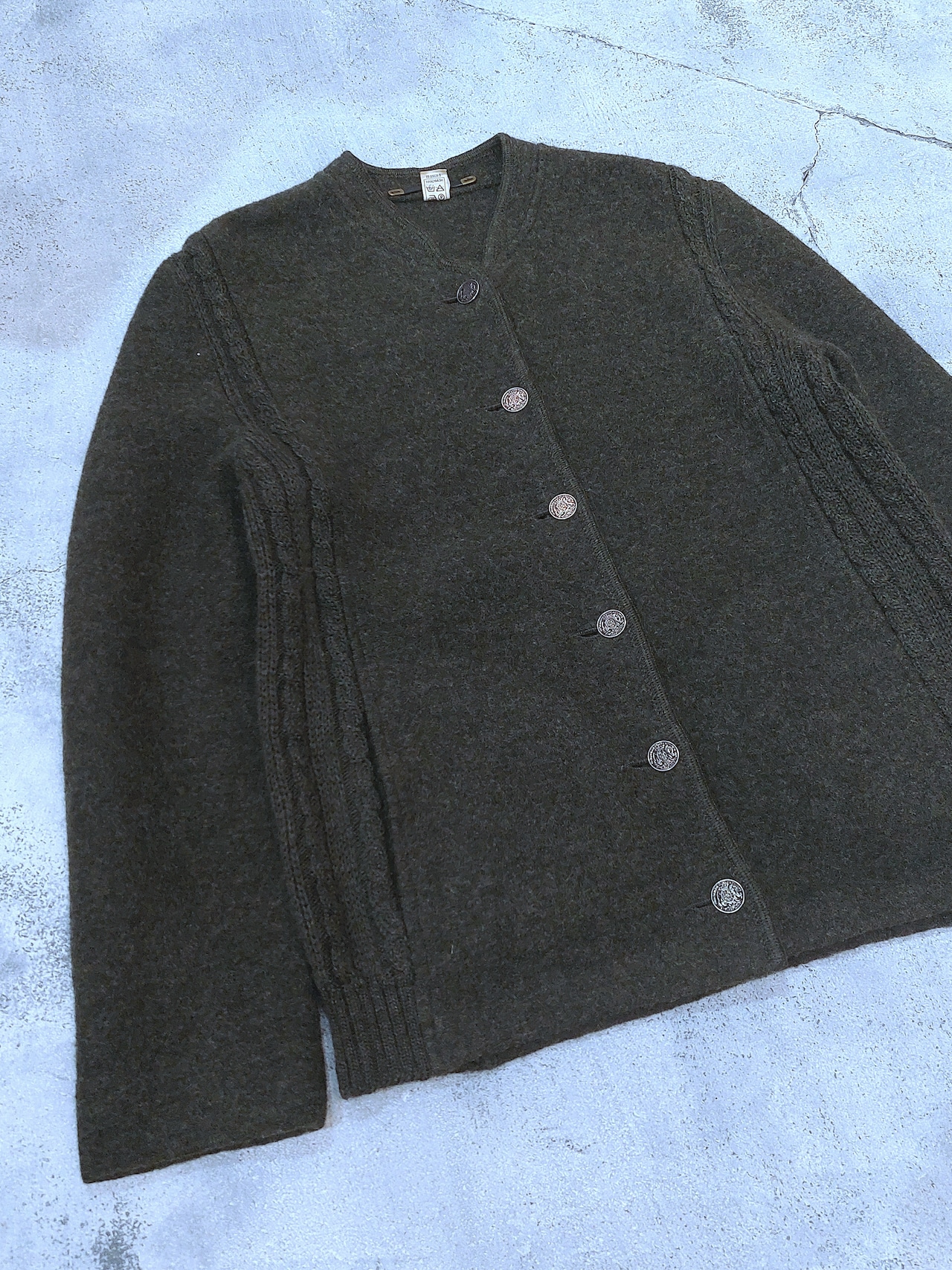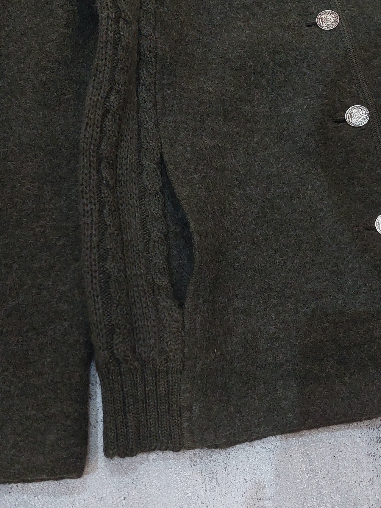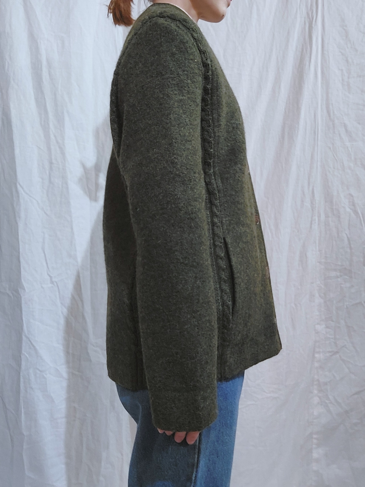 両脇がニット切り替えになったボイルドウールチロルジャケットです。