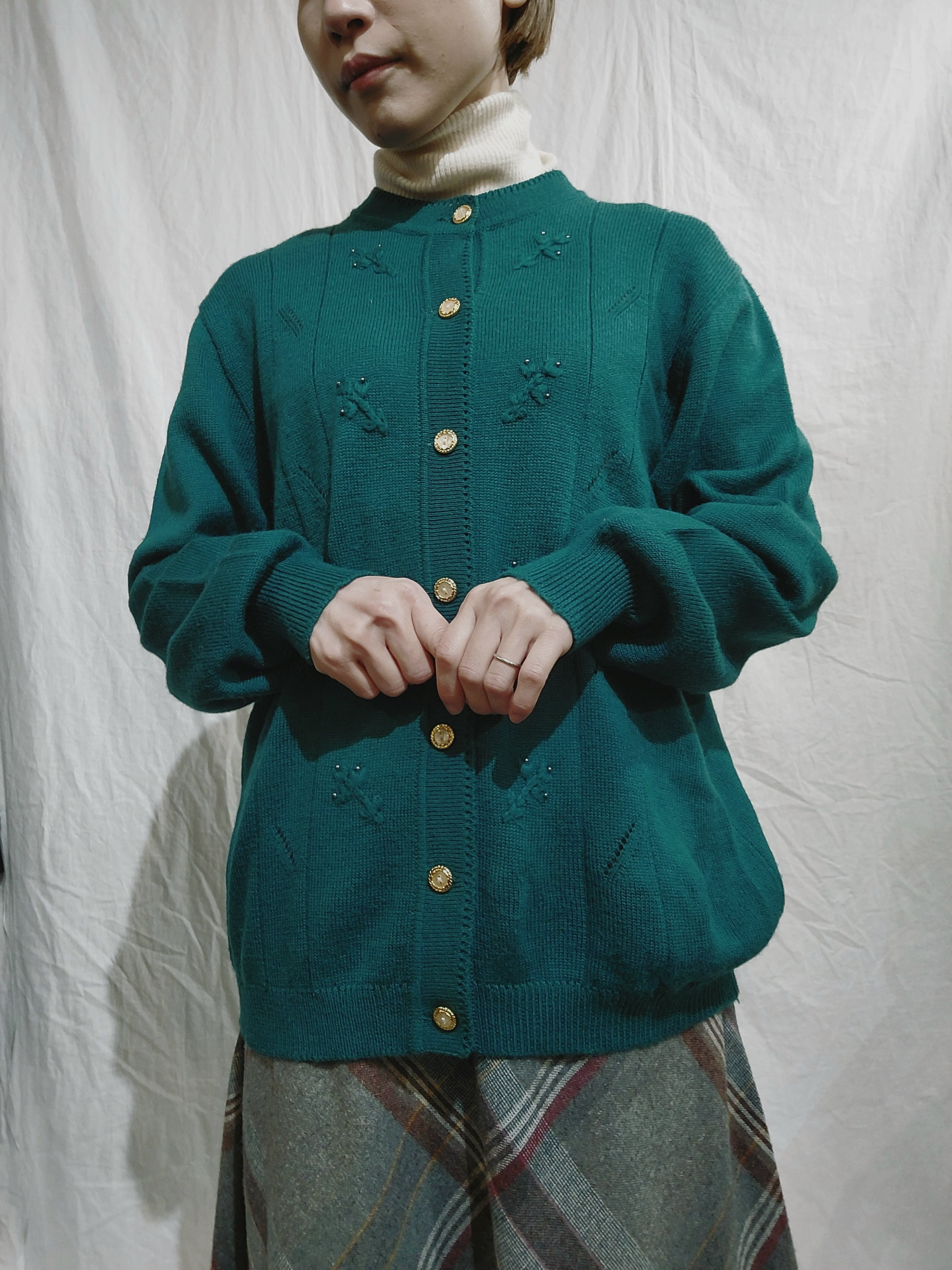 Flower embroidery knit cardigan / Made in Italy[m-805]イタリア製 花刺繍ニットカーディガン