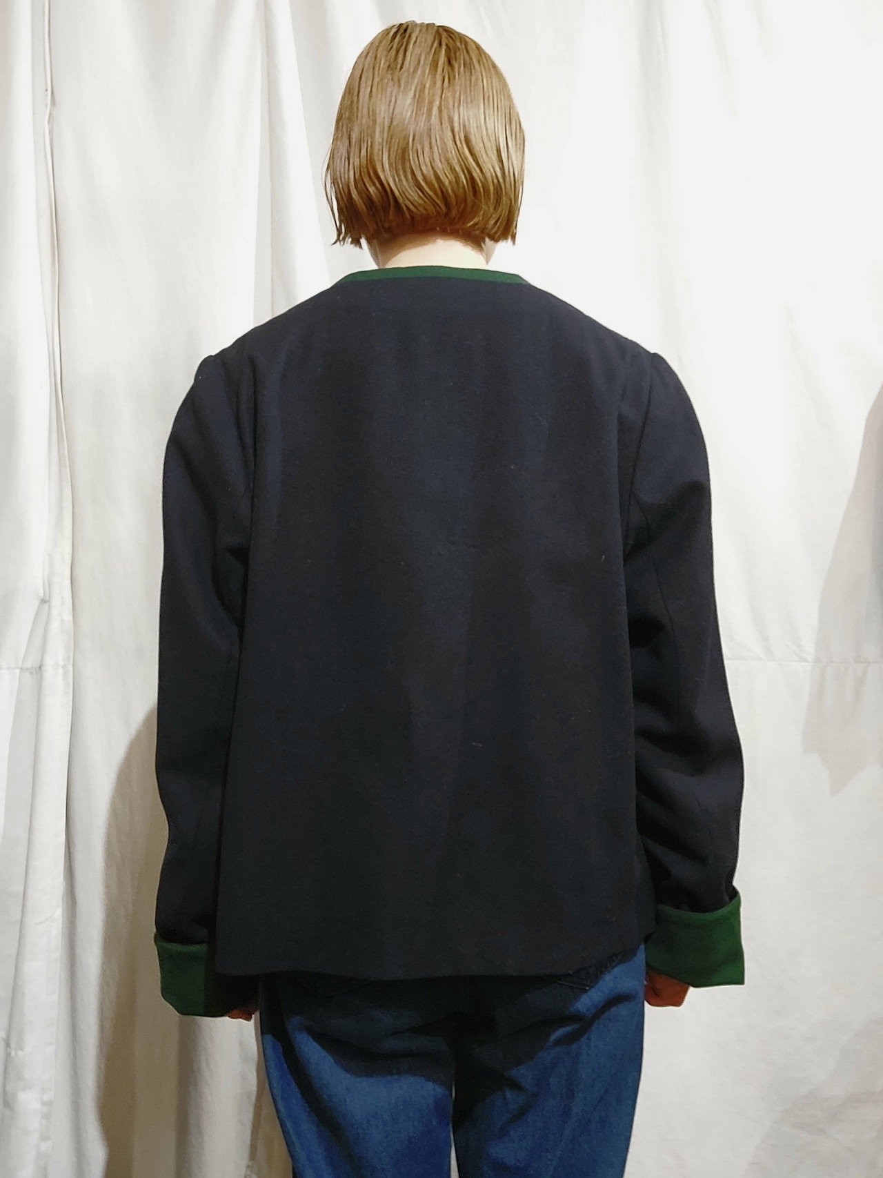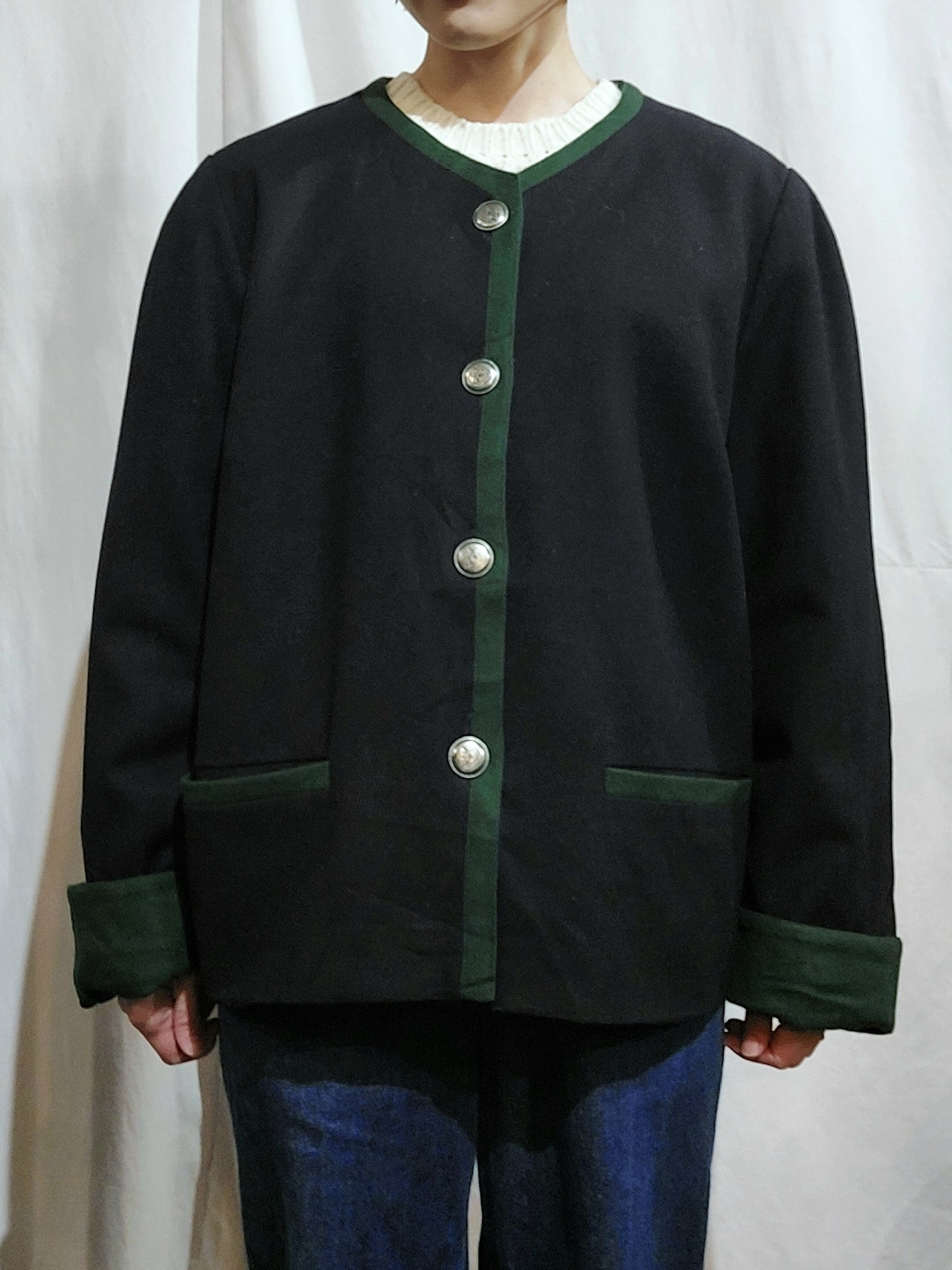 ノーカラーウールチロルジャケットです。