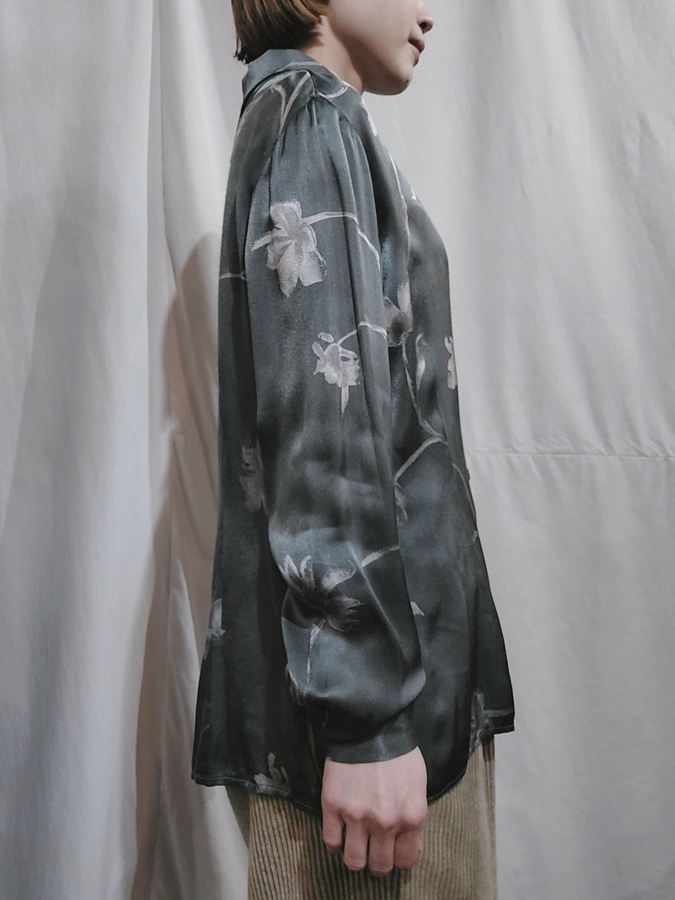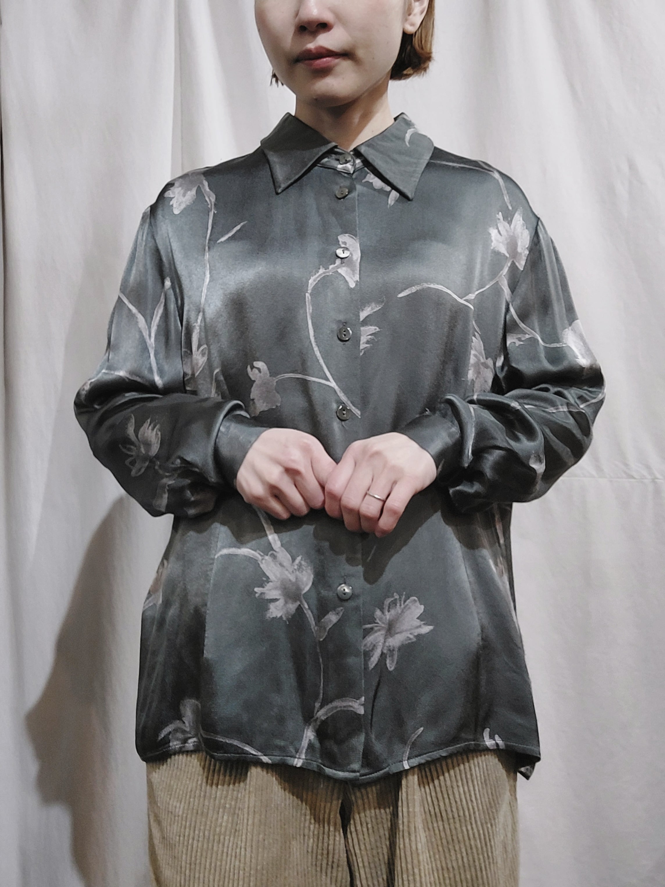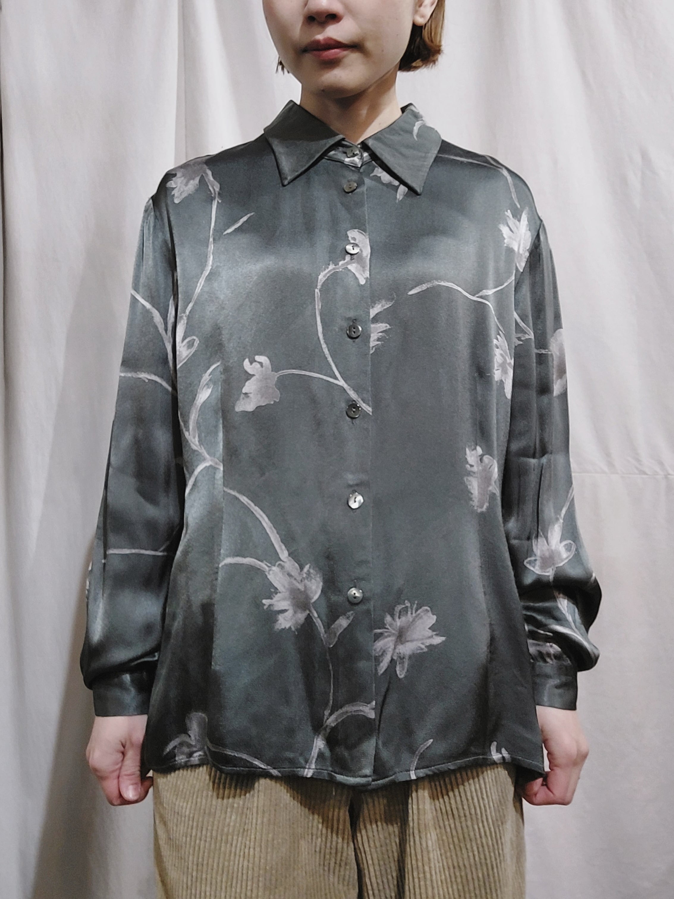 Flower pattern long sleeve blouse / Made in Italy[ir-184]イタリア製 花柄長袖ブラウス