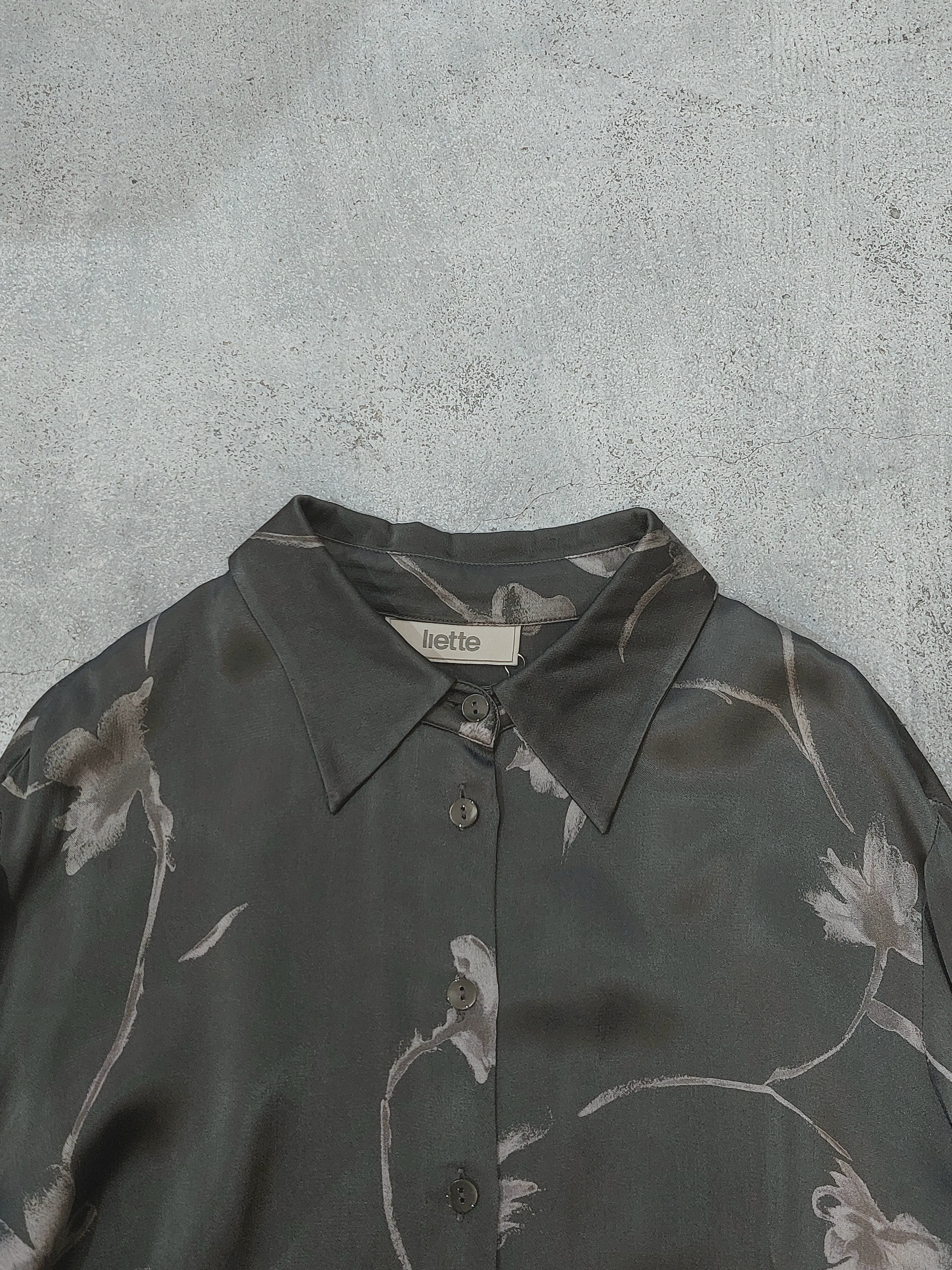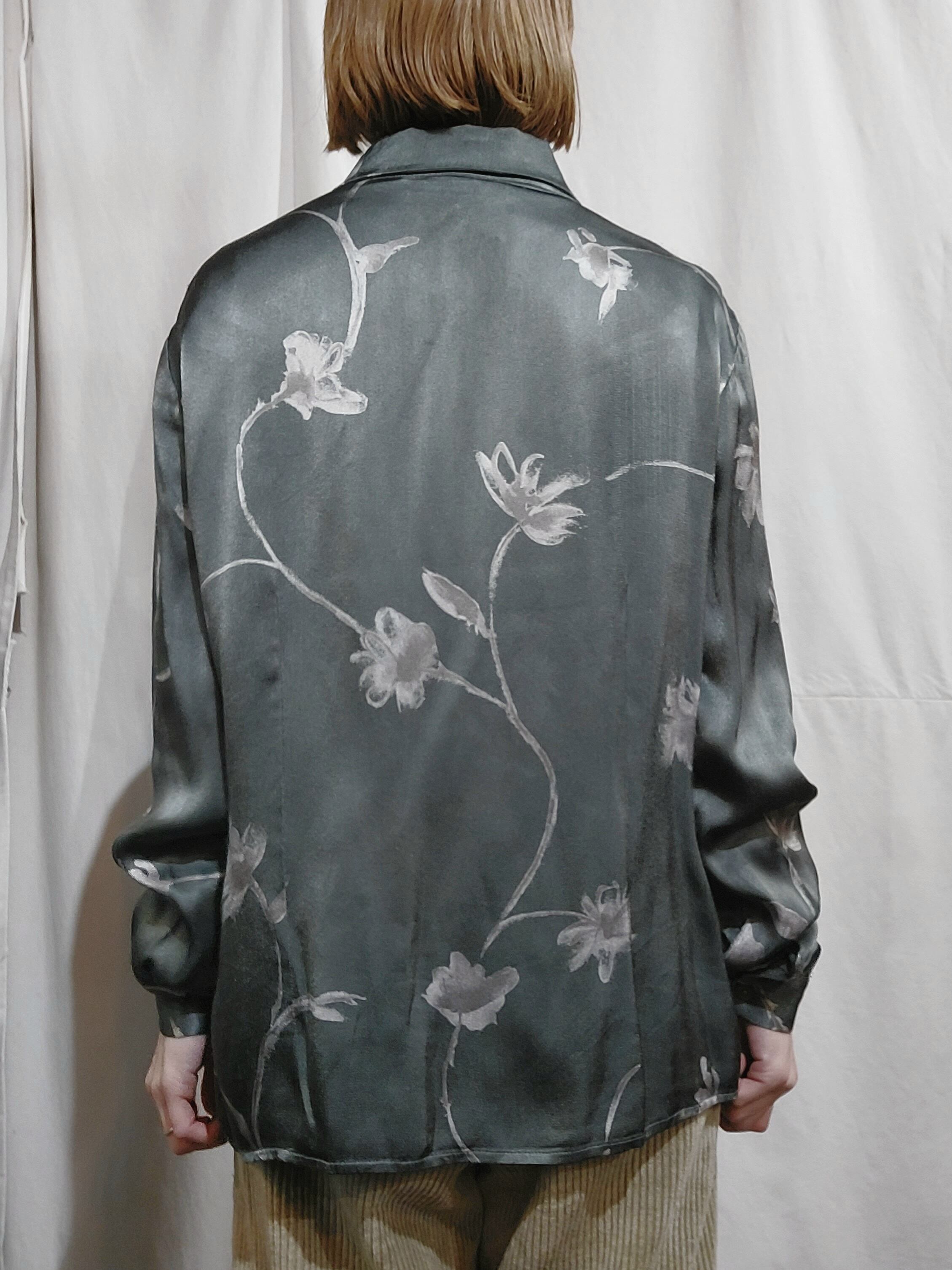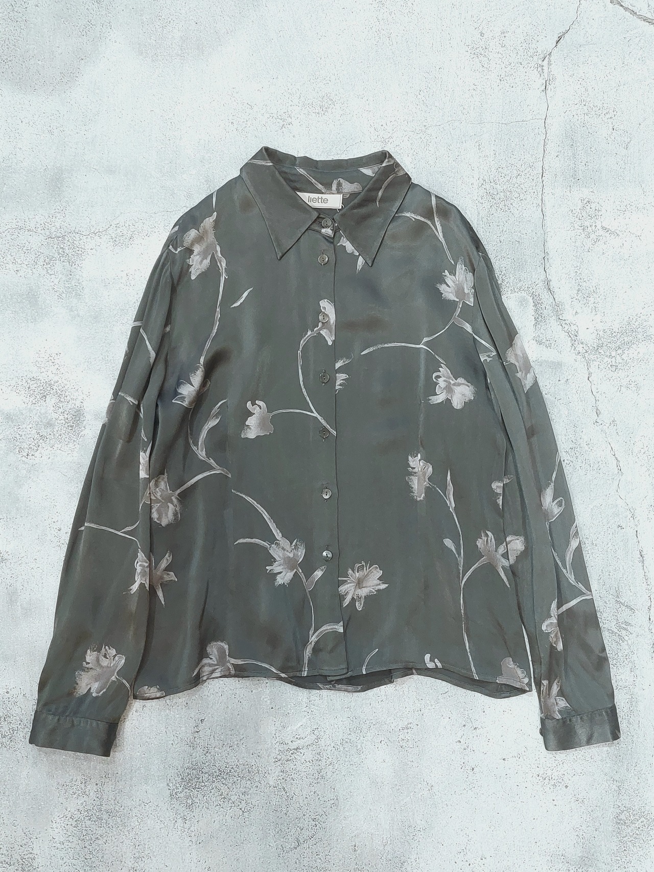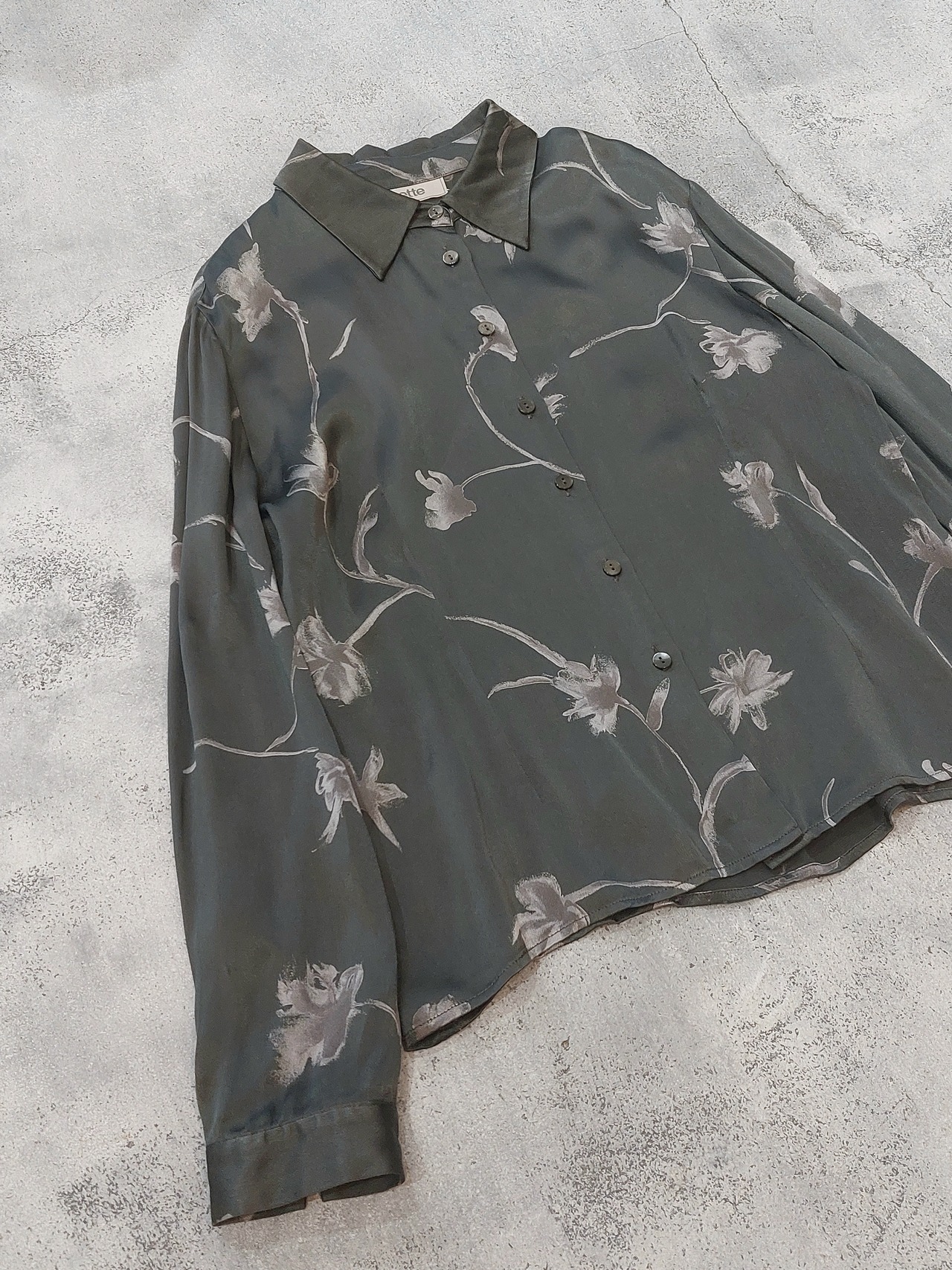 Flower pattern long sleeve blouse / Made in Italy[ir-184]イタリア製 花柄長袖ブラウス