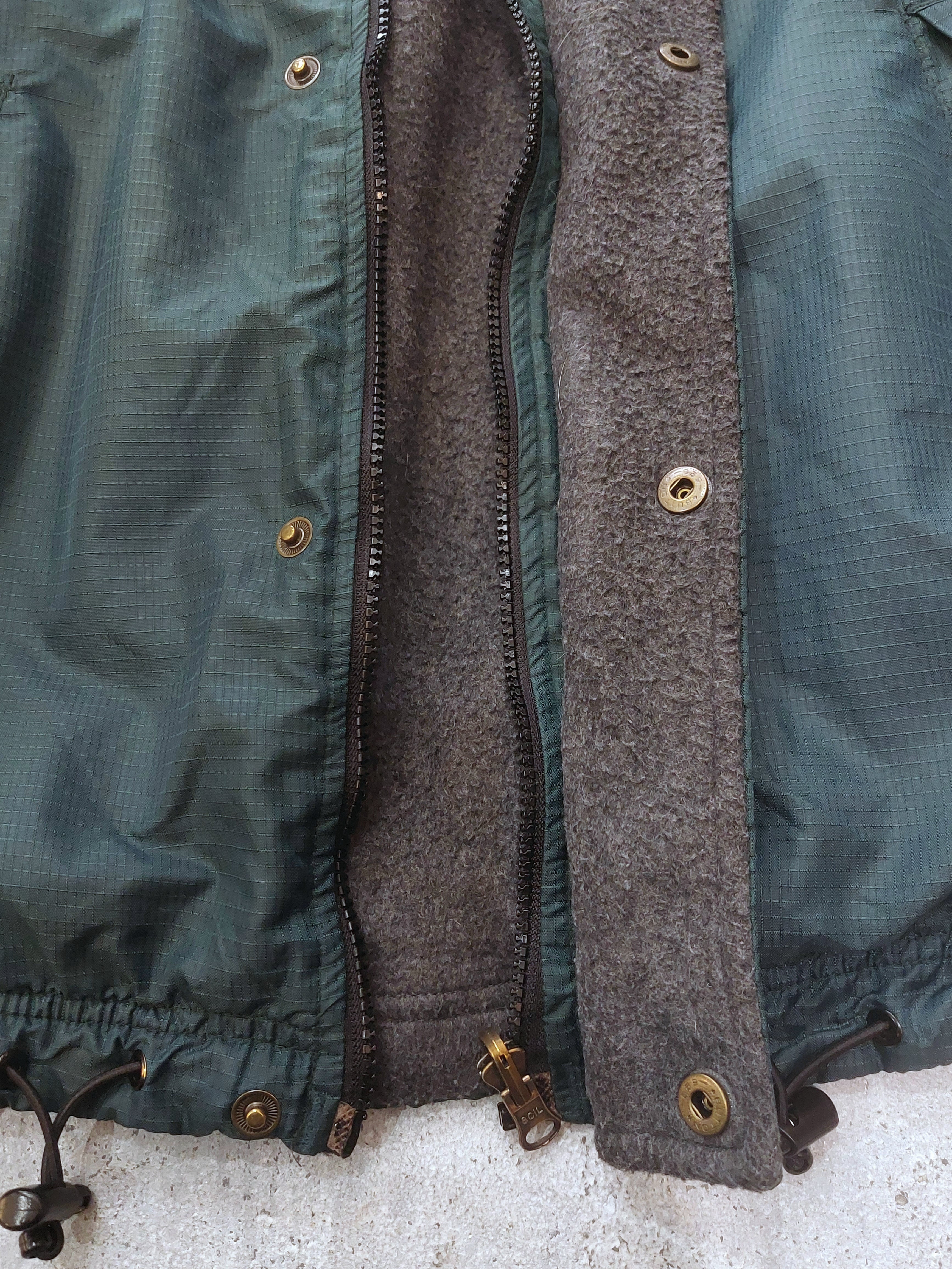 状態:ナイロン地の右肩縫い目がほつれています。一ヶ所汚れがあります。フリース地には全体的に使用感と毛羽立ちがあります。