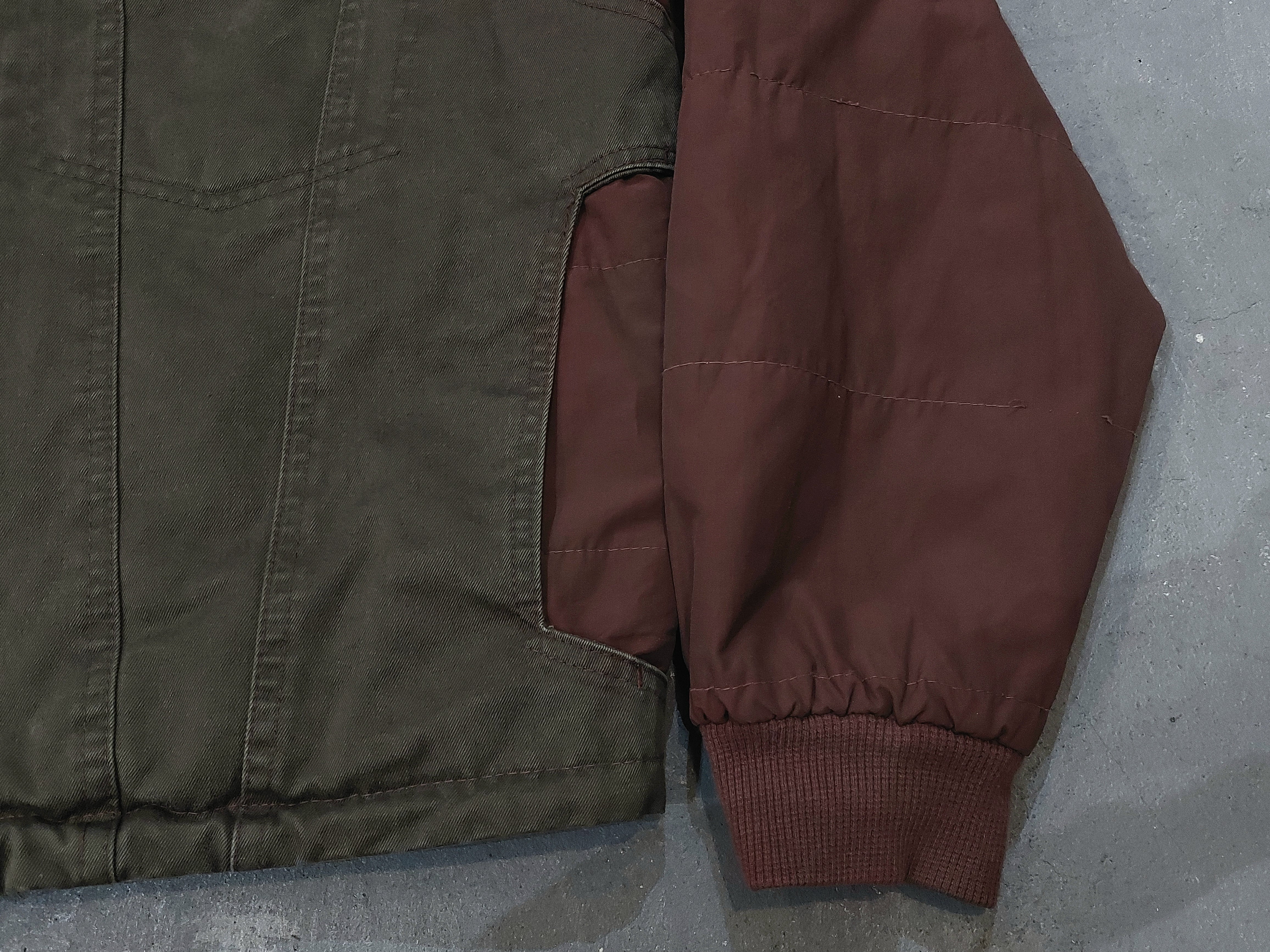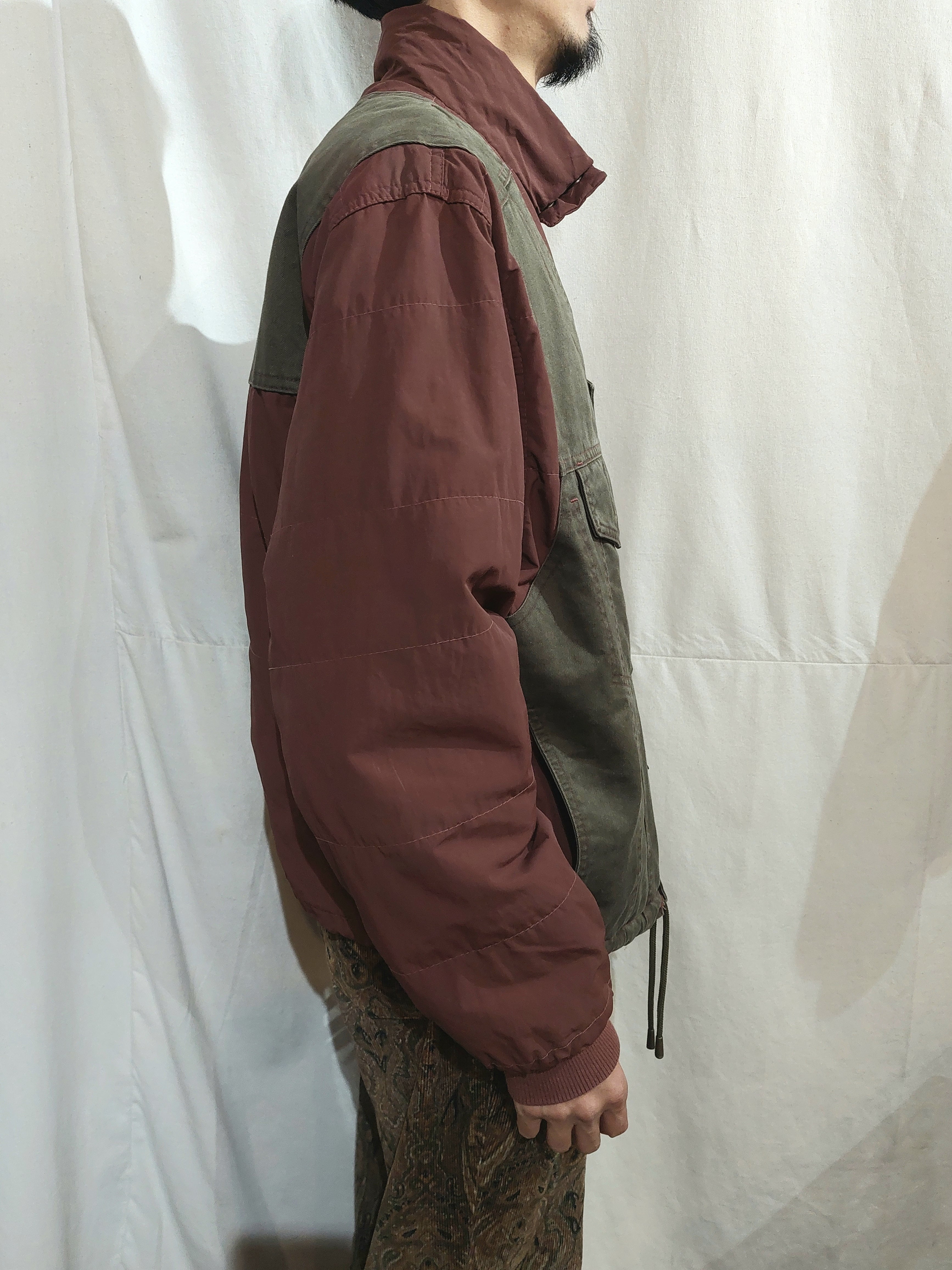 素材:カーキ部分-Cotton エンジ部分-Cotton 55% Nylon 45% 裏地、中綿-Polyester